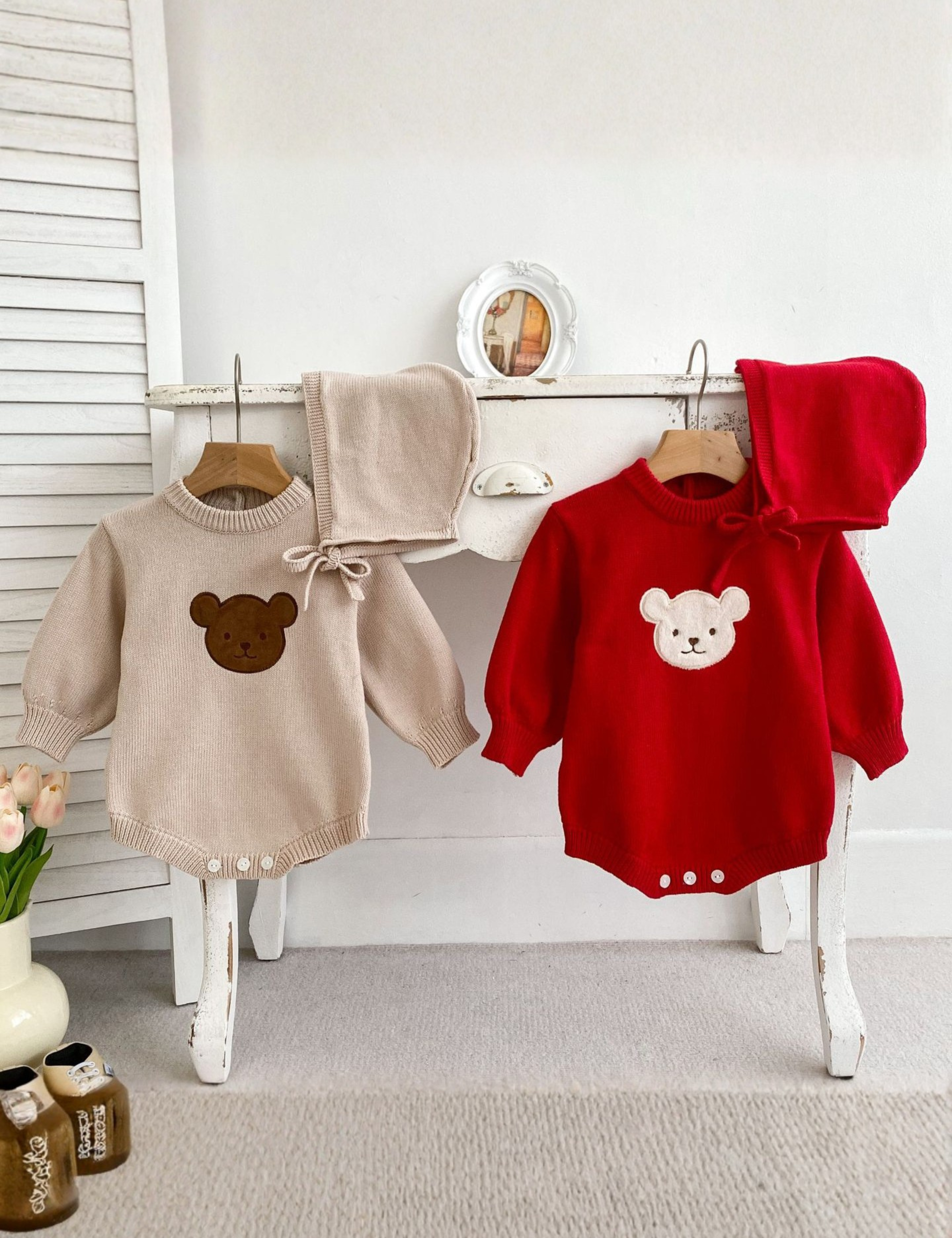 Available in cream, pink, stone, light blue, and white — it coordinates with our bear beanies, bear knee socks, and bear accessories perfectly, making it the centrepiece of a complete Cozy Crew Club outfit at any age from newborn through to nine months. It is, genuinely, impossible to put on a baby without taking at least three photographs. 🐻✨