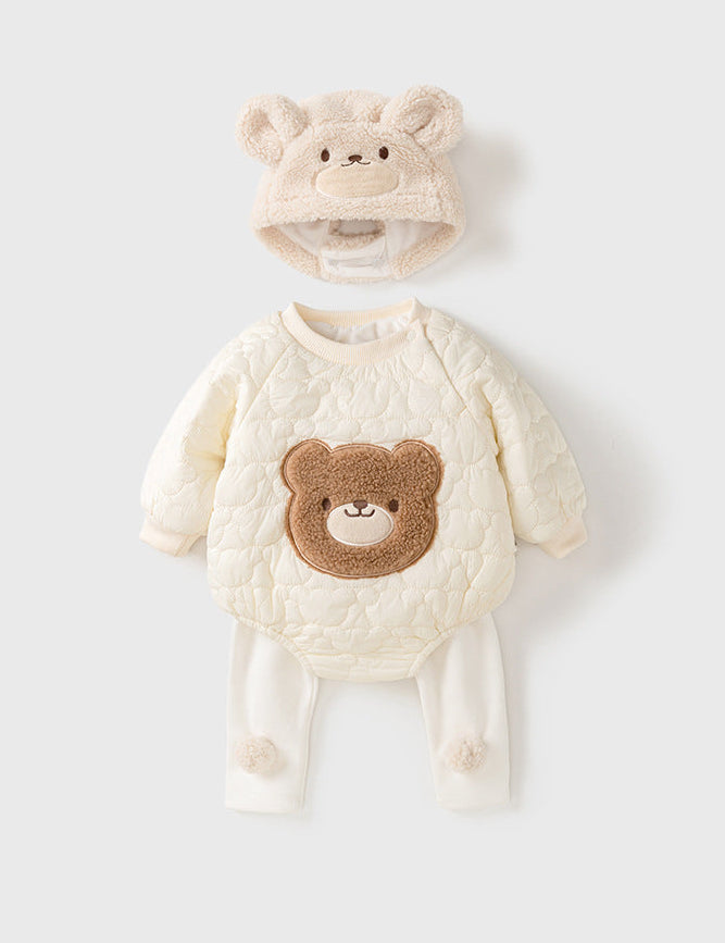 The Cozy Crew Club bear identity runs through every product in our collection — from the bear ear beanies that frame little faces perfectly on cold mornings, to the bear face tracksuits that make every park trip the most photographed outing of the week, to the boucle teddy rompers that are softer than anything else your baby has ever worn, to the bear gift boxes that arrive looking like the most considered present anyone has ever given.