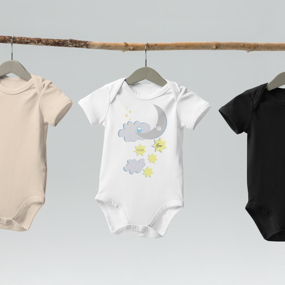 Celebrate the marvel of new beginnings with the Cozy Crew Club's "Dreamy Night Sky" personalized bodysuit – where every detail is crafted with love, reflecting the preciousness of your little star.