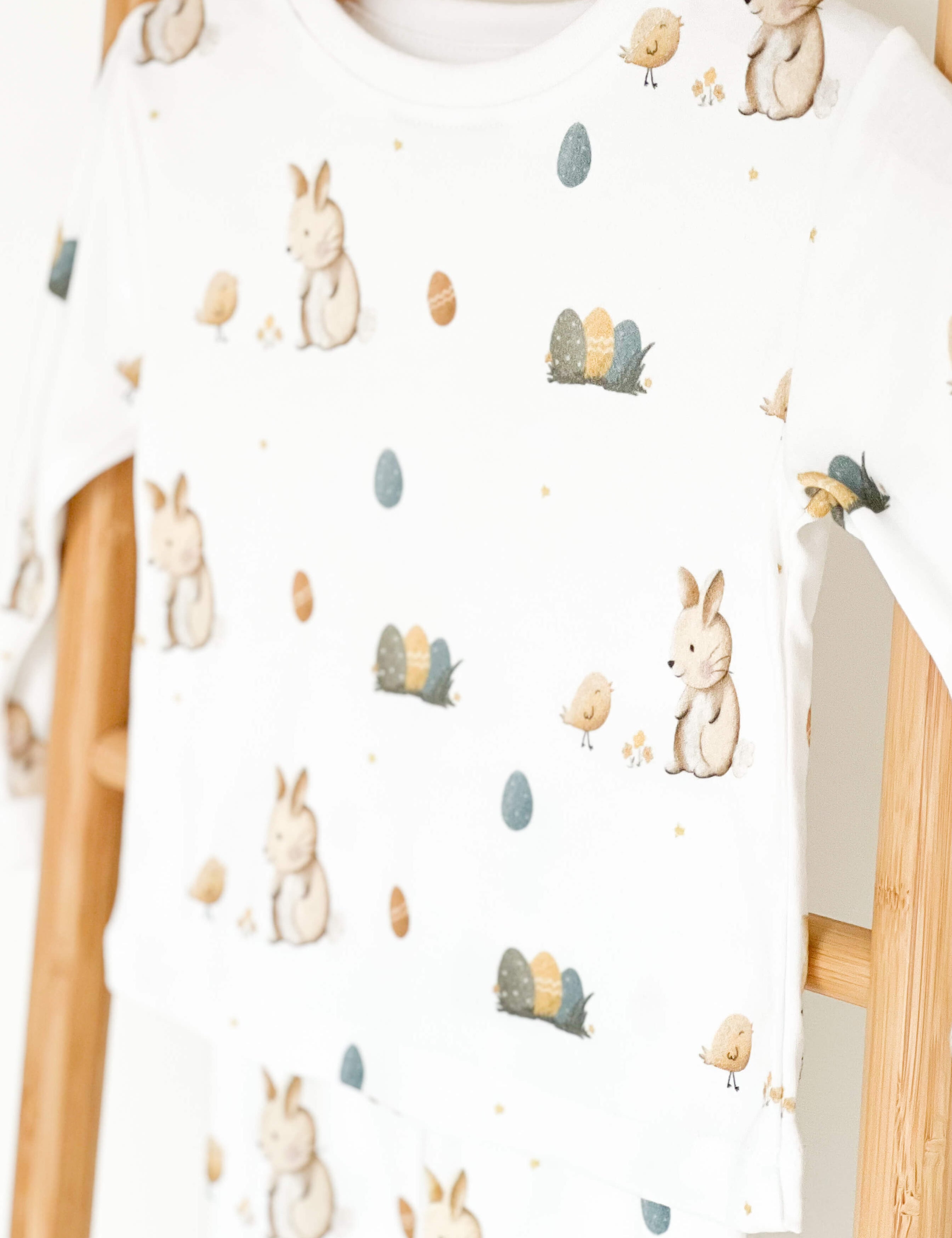 For bedtime, our bamboo and organic cotton two-piece pyjama sets — in bear, dreamy bear, cherry, love heart, and Easter bunny designs — bring the same fabric quality and character to the night-time routine that makes children actually want to get ready for bed. And our Mini Croissant Club and Rosy Ribbon pyjamas complete the matching mum and child picture for every family moment worth dressing for.
