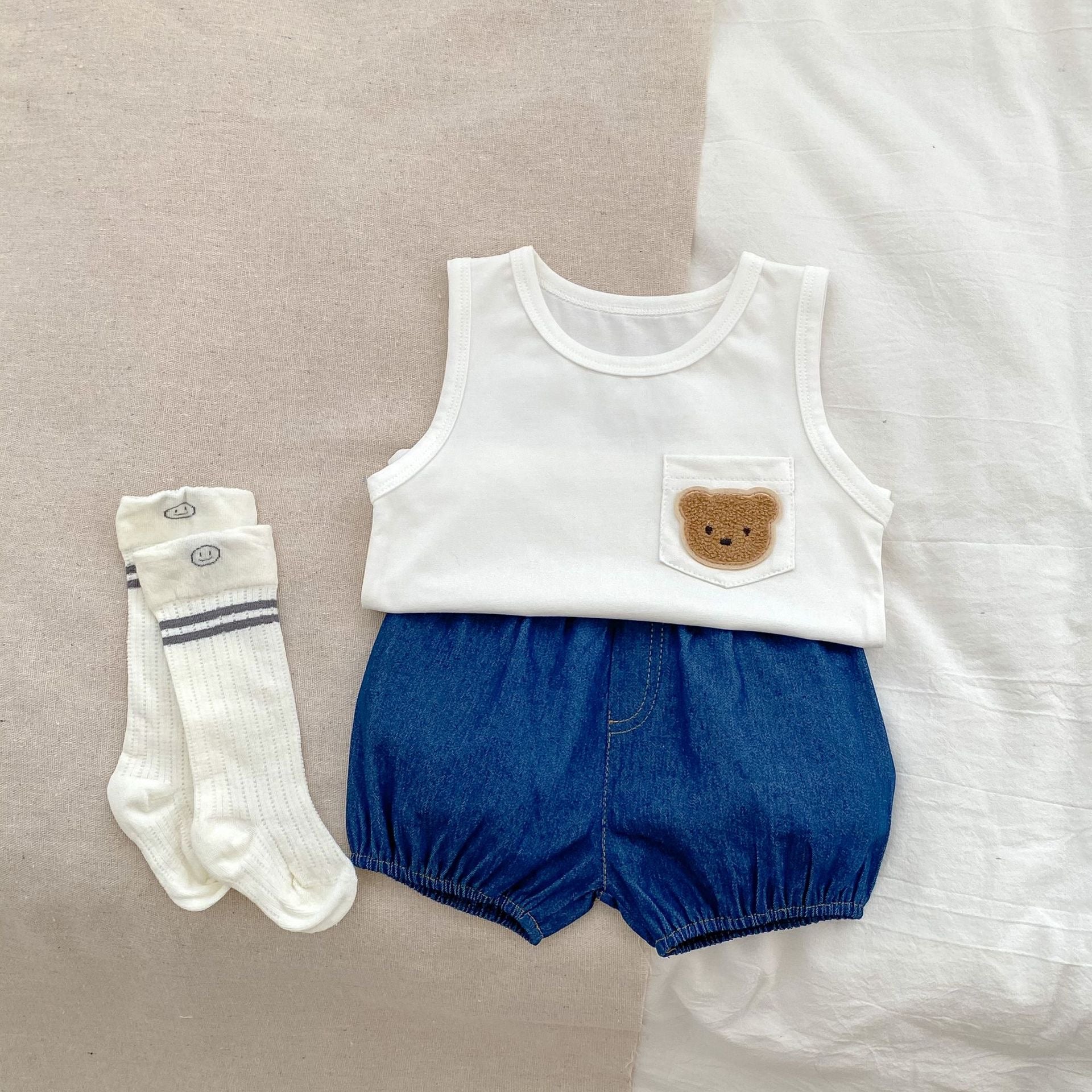 Introducing our adorable Baby Bear Patched Tops With Denim Shorts Sets, the ultimate ensemble for your little ones to frolic in style and comfort! Crafted with love and care, these sets are designed to keep your baby cozy and chic during those warm summer days.