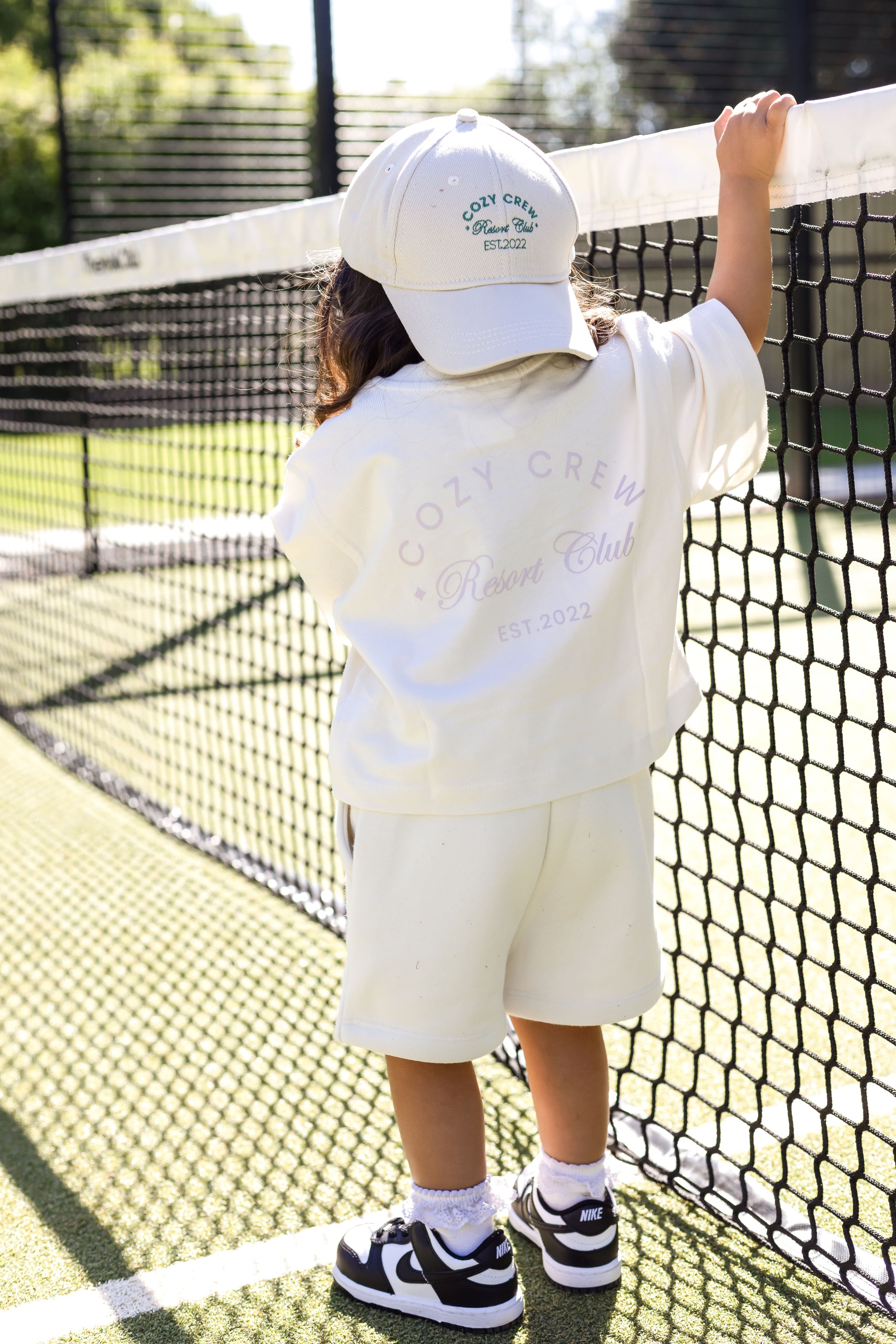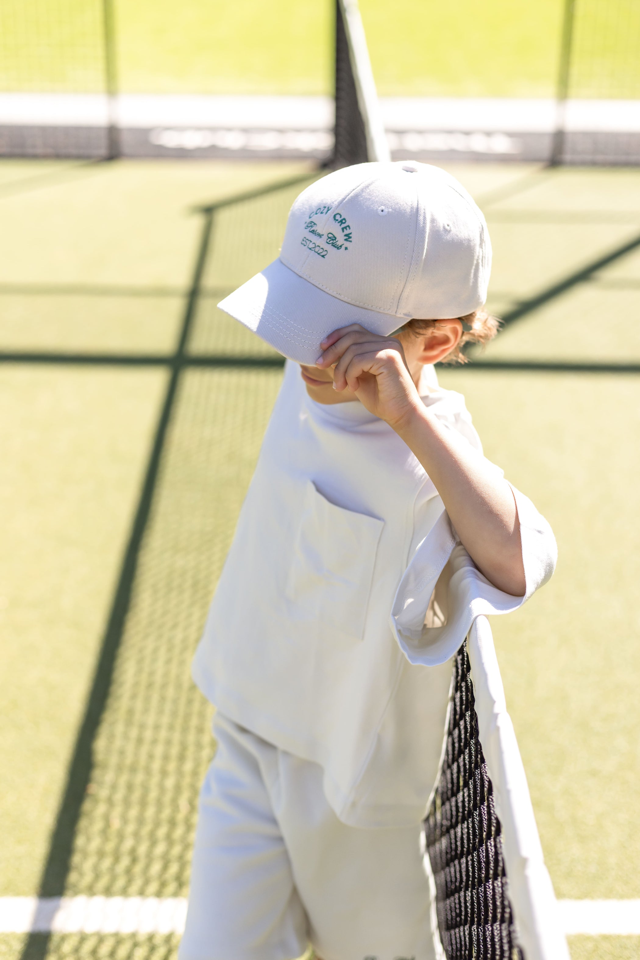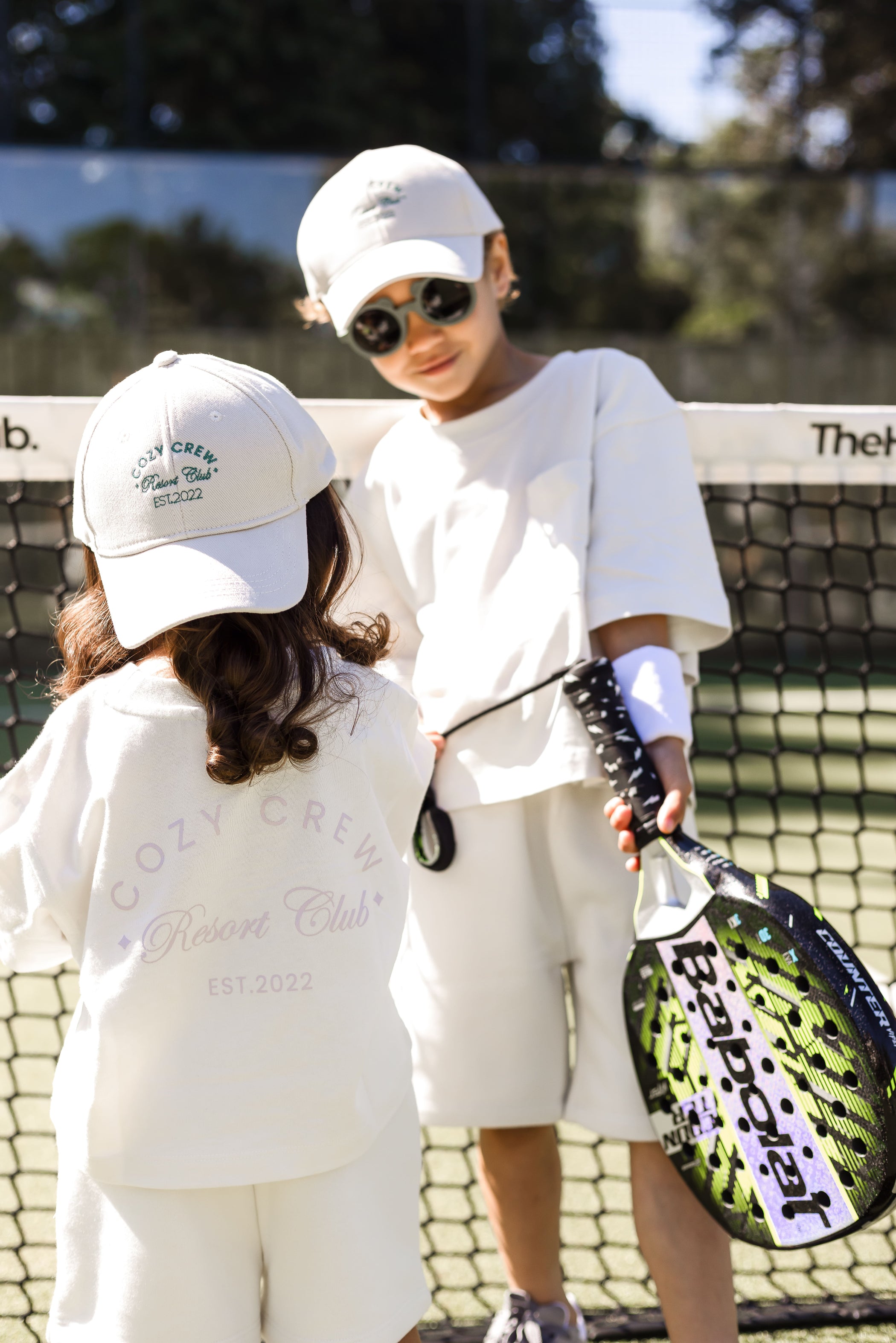 Serve looks from 6 months to 6 years in our Cozy Crew Resort Club Cap — the perfect finishing touch to your little one’s courtside look. Crafted from 100% breathable cotton and finished in a timeless ash grey, this mini cap brings resort chic to the playground.