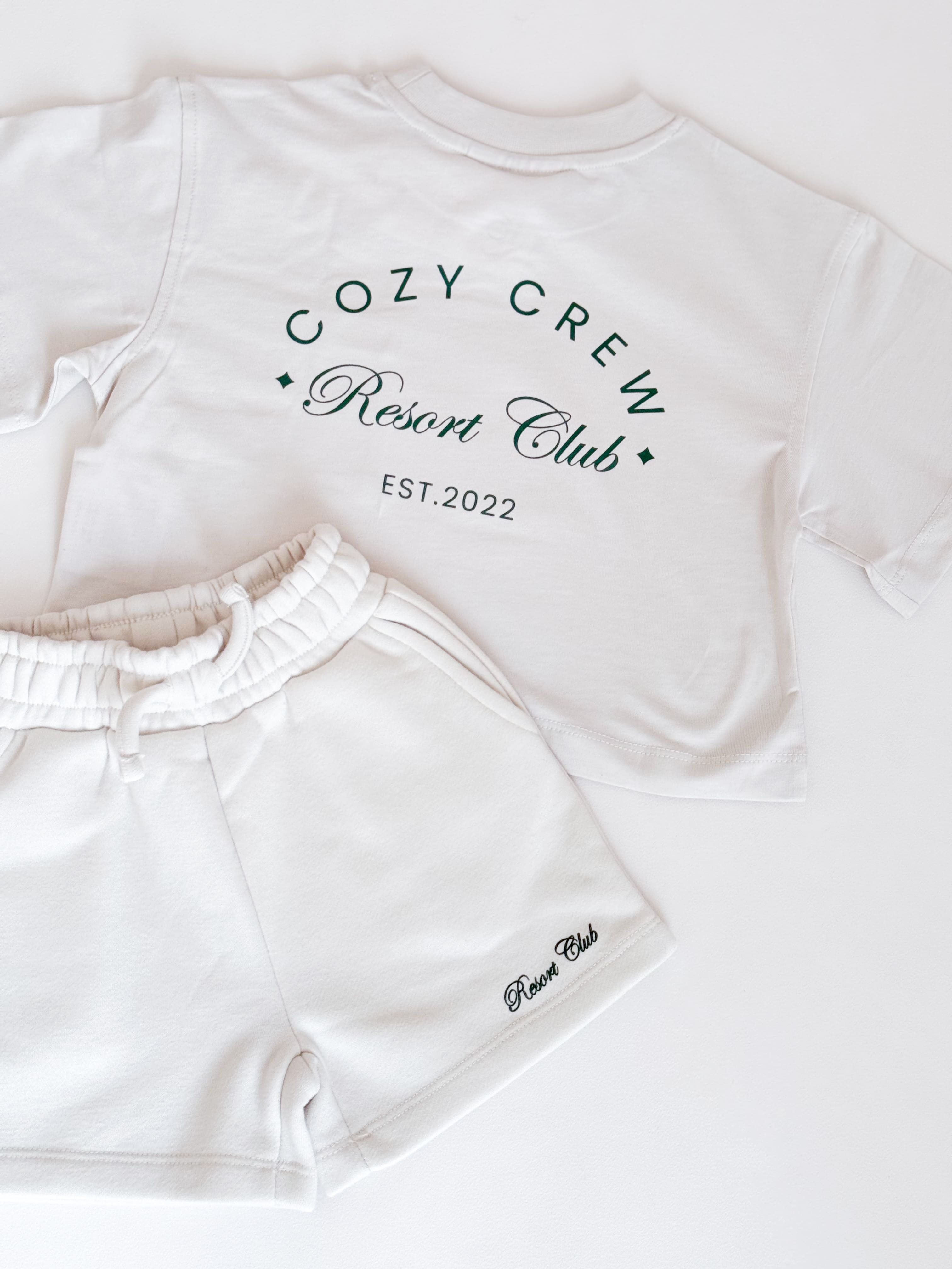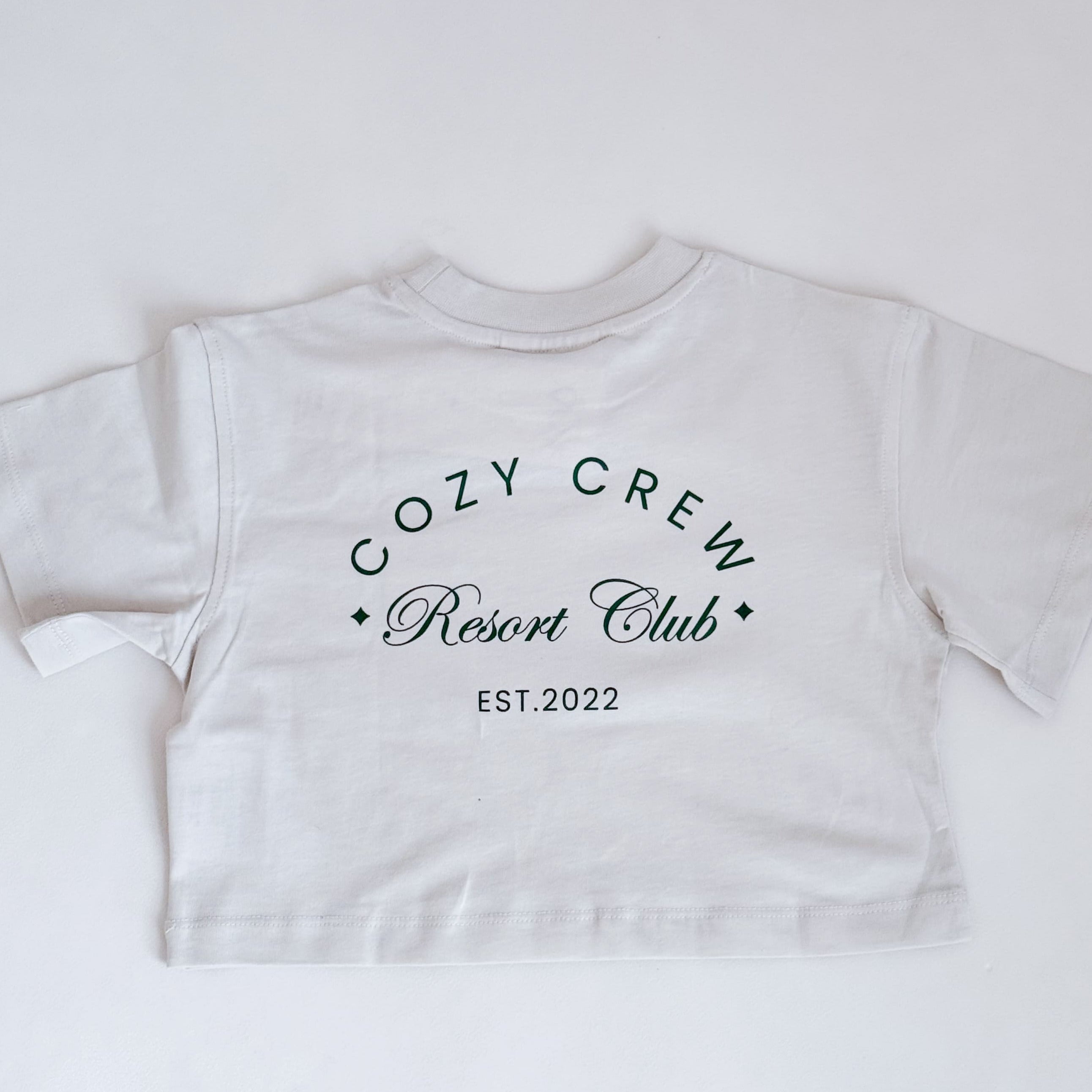 A chest pocket adds a laid-back touch, while the bold Cozy Crew Club Resort Club print on the back makes a statement from behind. Pair it with our Resort Club Shorts for a look that says “tiny but trendy.”