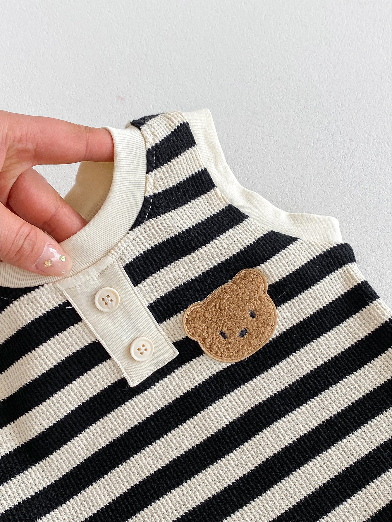 Embrace the playful spirit of summer with our charming Little Bear Head design. Adorning both the crewneck sleeveless top and the shorts, this delightful motif adds a touch of whimsy to your baby's outfit, ensuring they stand out wherever they go.