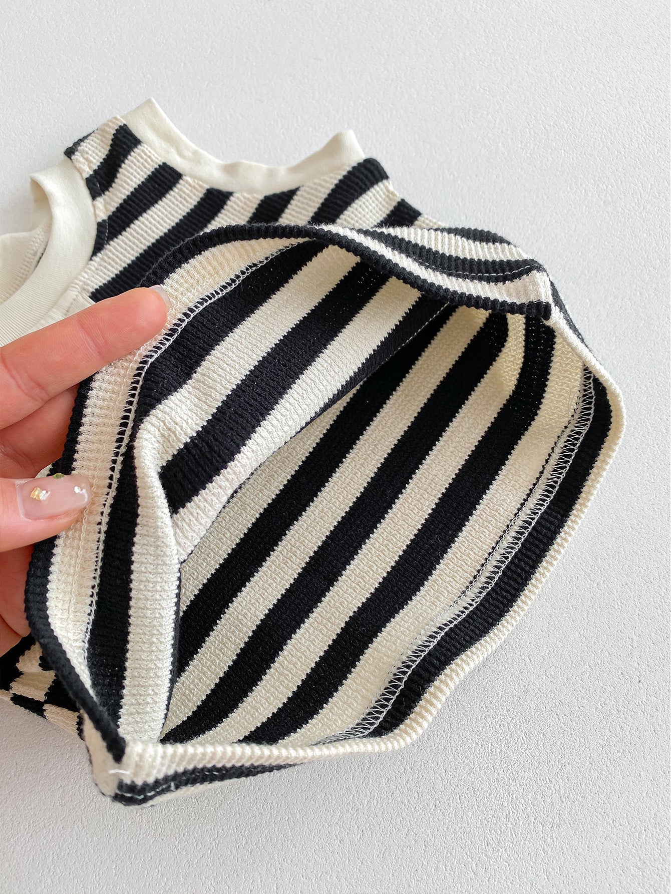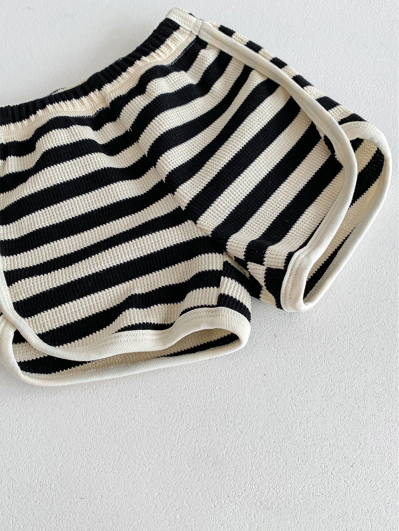 Complete the look with our matching stripe shorts, featuring a comfortable elastic waistband for a snug yet gentle fit. The cheerful stripe pattern adds a playful touch to your baby's ensemble, making it a versatile choice for any summer occasion.