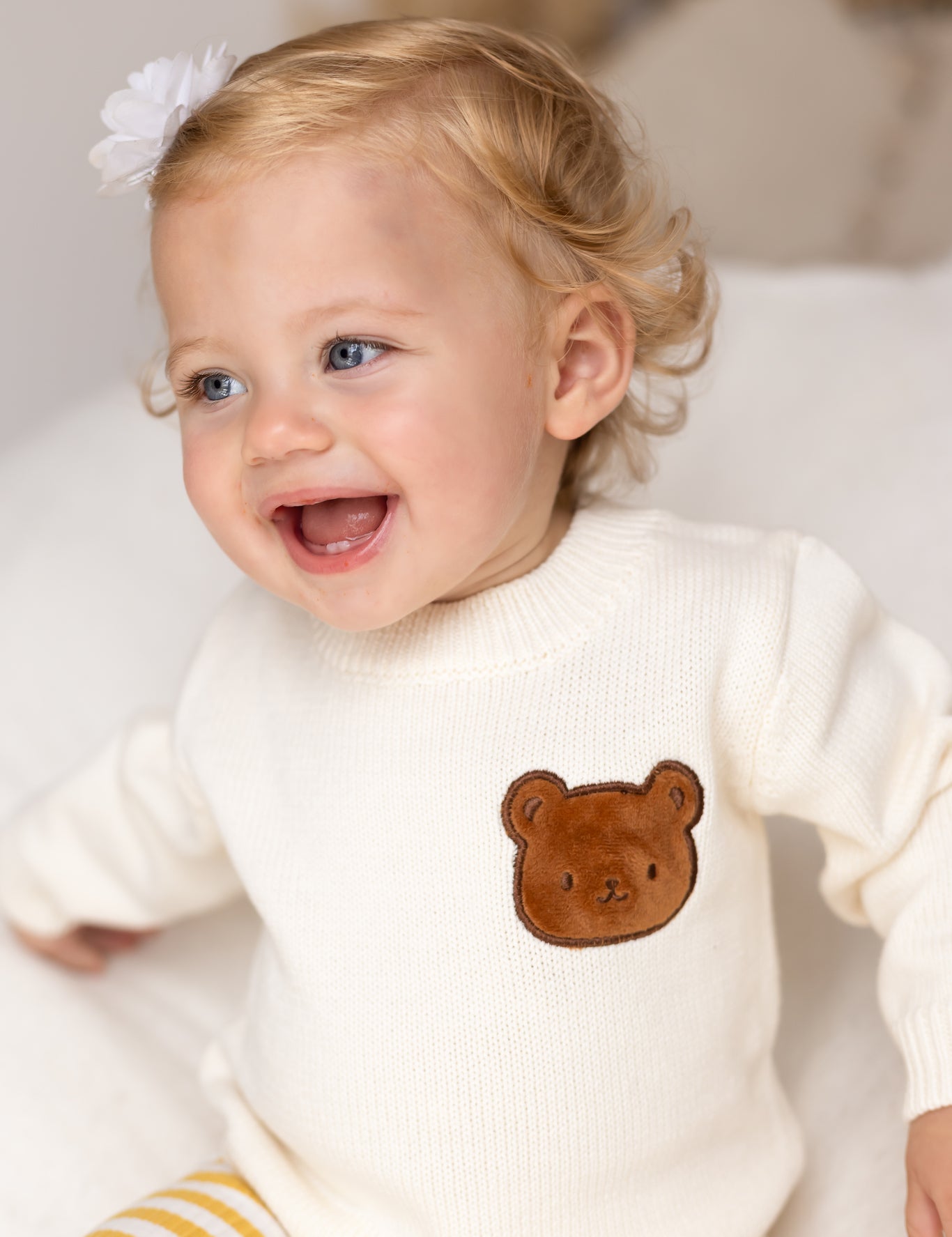 Each jumper features beautiful appliqué detailing that sets every Cozy Crew Club piece apart from generic knitwear — bringing personality and charm to a classic silhouette without compromising the softness or safety of the fabric. Available in unisex designs that work beautifully for any baby, and personalised with your baby's name for the most thoughtful gift imaginable. Pair with our knit bottoms for a coordinated set, or layer over a bodysuit and joggers for an effortlessly put-together everyday look.