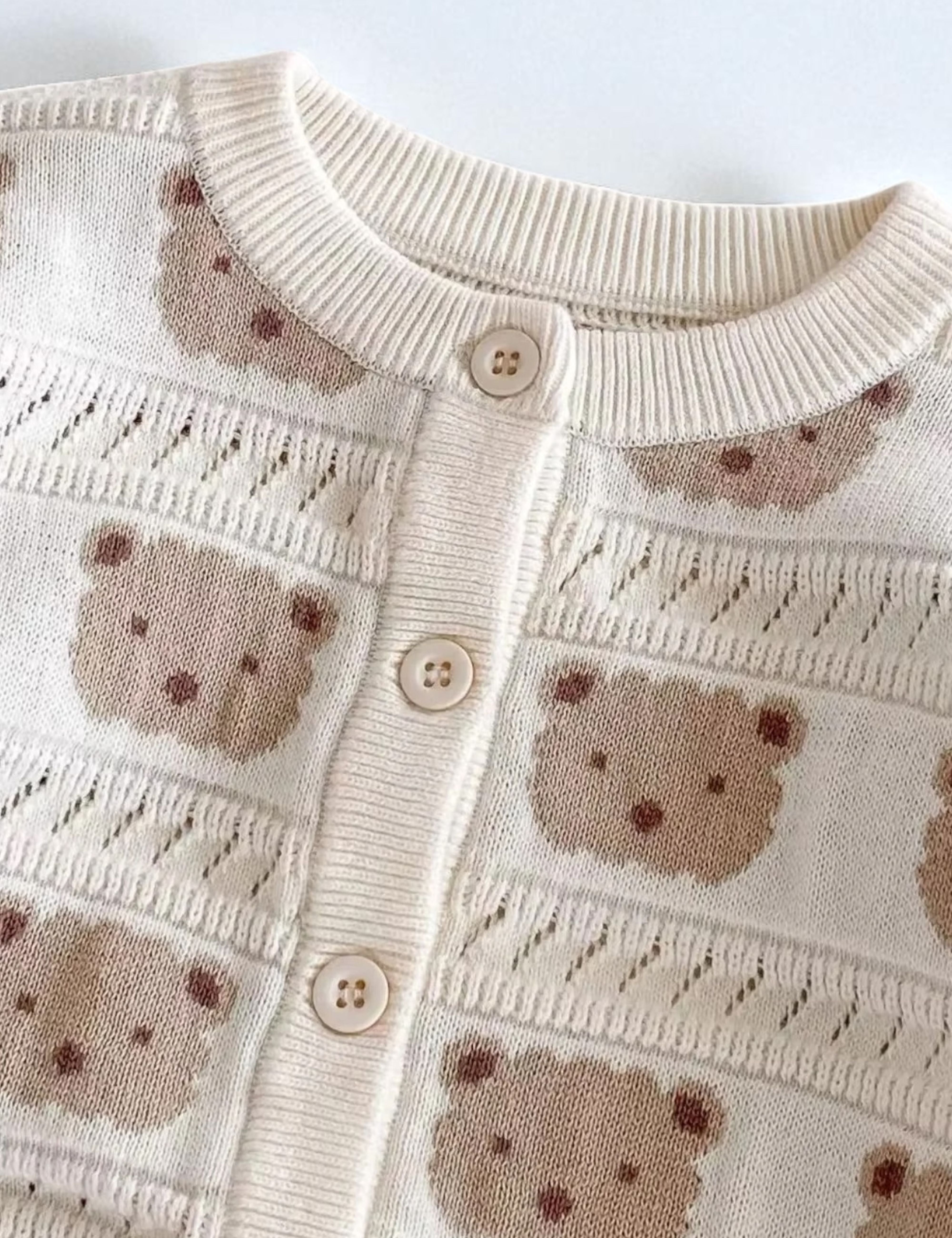 A baby knit cardigan opens at the front — typically with buttons, snaps, or a simple wrap fastening — making it the most versatile layering piece in the wardrobe. You can put it on and take it off without going over your baby's head, adjust warmth instantly without fully undressing them, and layer it over virtually any outfit from a bodysuit to a romper to a sleepsuit without any fuss. The cardigan is the piece that goes everywhere and works with everything.