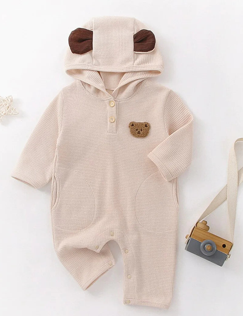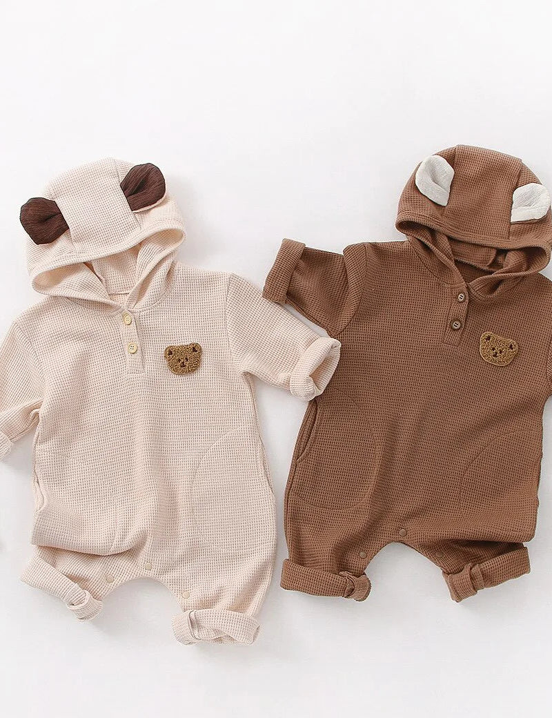 Knitted Bear Hooded Playsuits — Cosy Character From Head to Toe