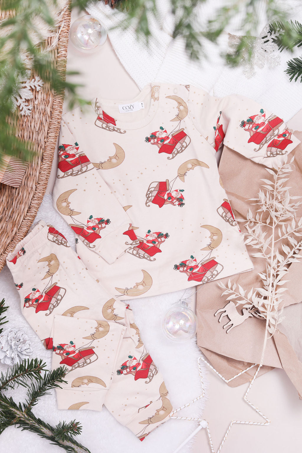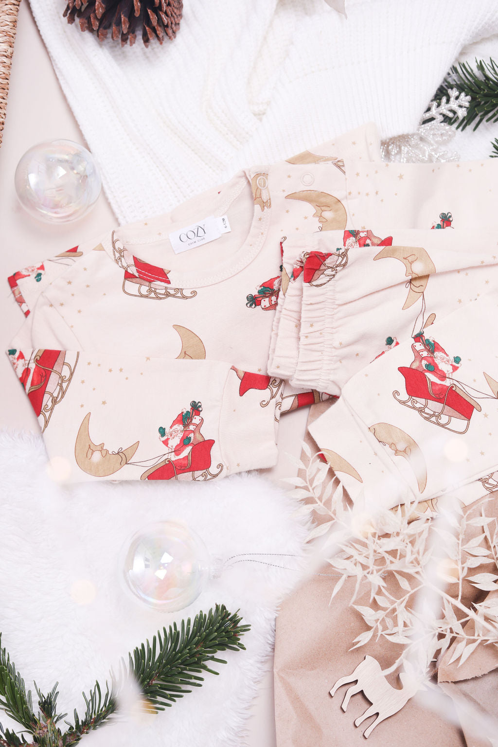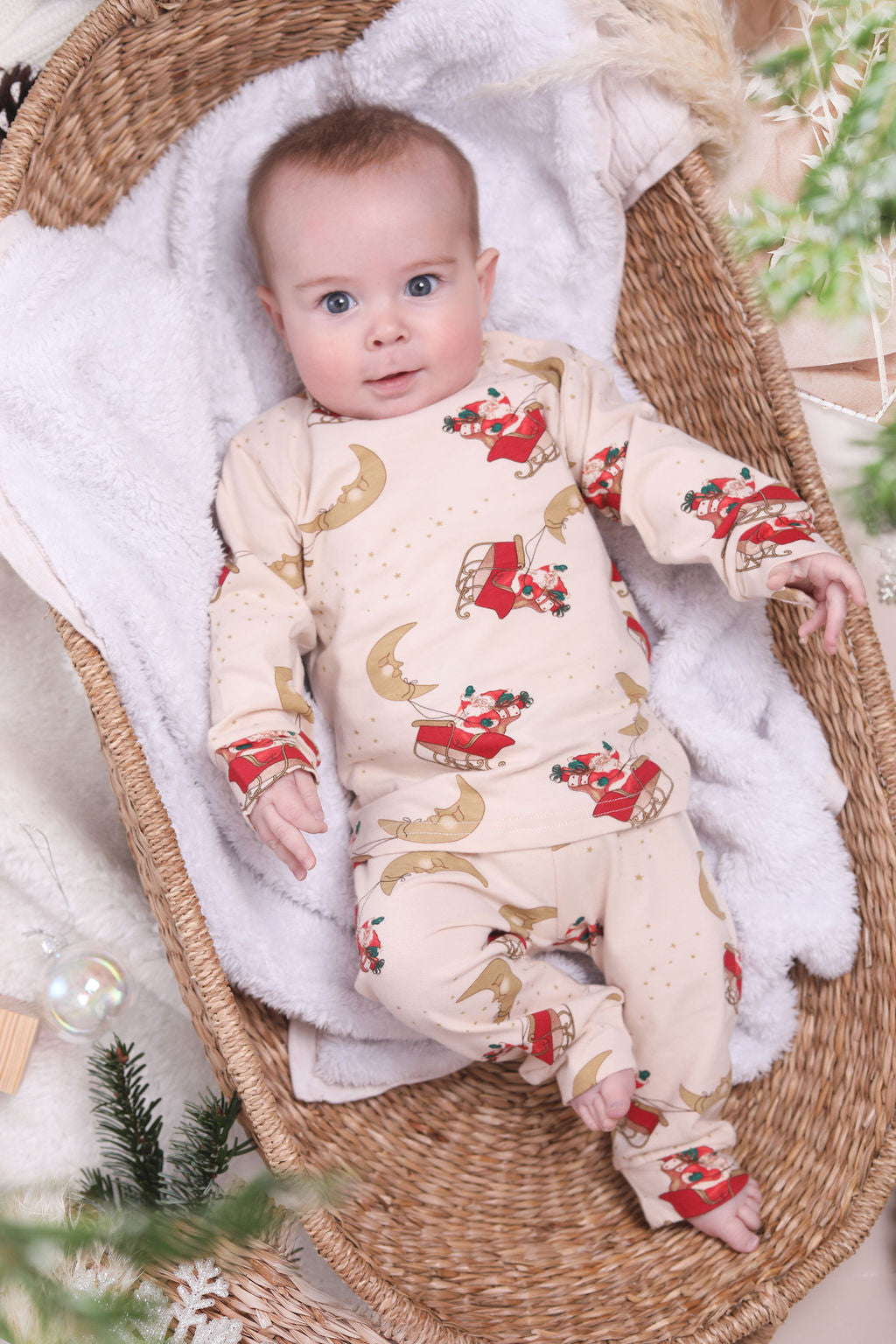 Introducing The Pure Christmas Wishes Pyjamas, the perfect way for your baby or toddler to cozy up this Christmas. Pre-Order for delivery in early December, our beautiful pyjamas are made from 100% cotton with a soft and luxurious fabric, being the perfect addition to any household this Christmas. With a full length design, they'll keep your little one warm all night long. Featuring a cute Santa and Moon design, these pyjamas are sure to make them look stylish and comfortable at the same time. So why wait? Add The Pure Christmas Wishes Pyjamas to your cart today and get them ready for Christmas.