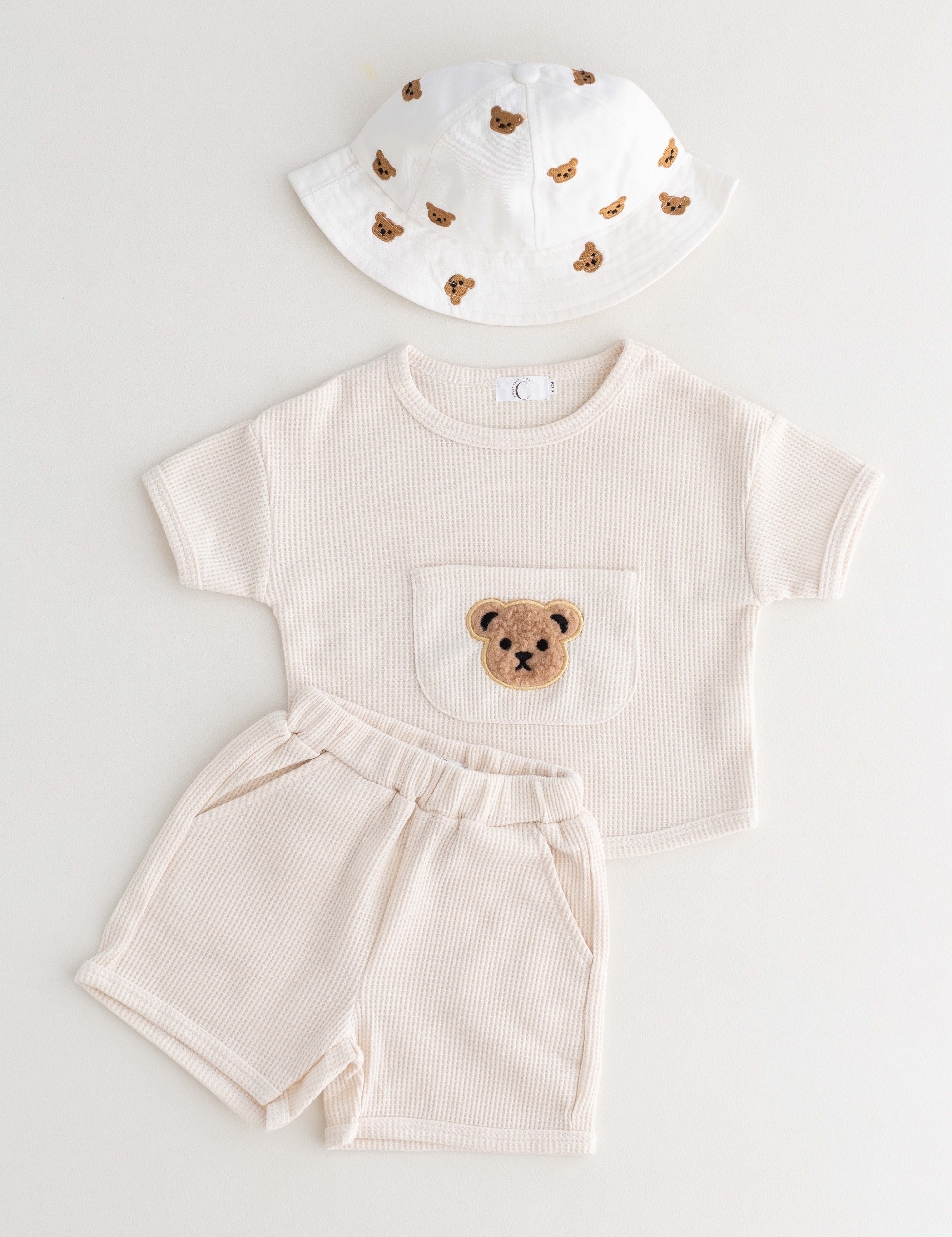 Everything bear. Every piece we make that carries the signature Cozy Crew Club bear identity — from the bear ear tracksuits that stop people in their tracks on every school run, to the boucle teddy rompers that are softer than anything else your baby has ever worn, to the bear knitted hooded playsuits that photograph beautifully in every light — is here in one place.