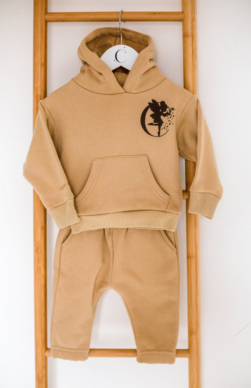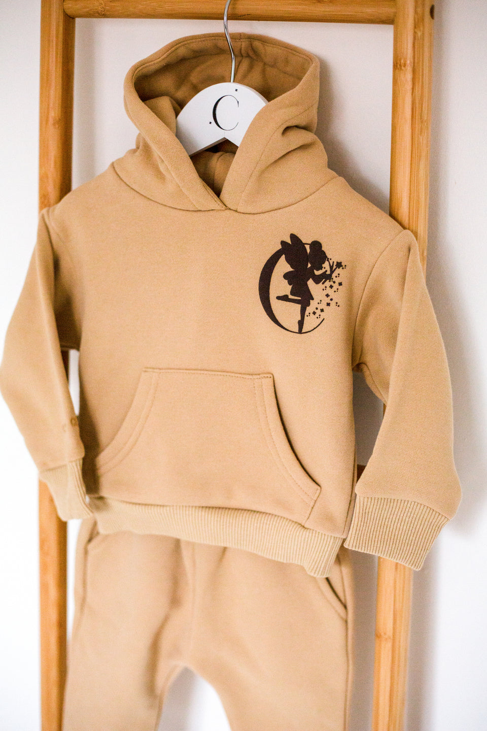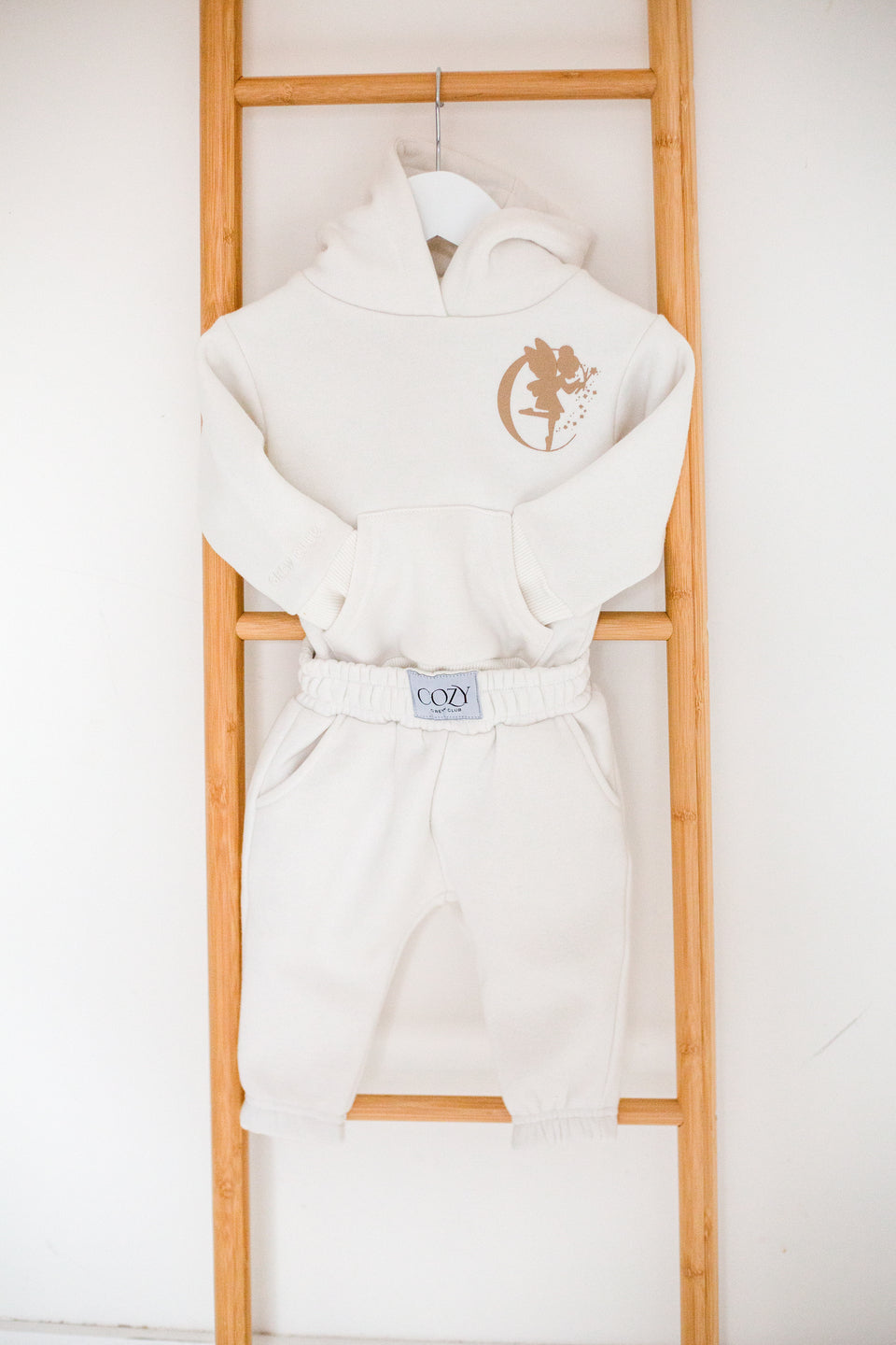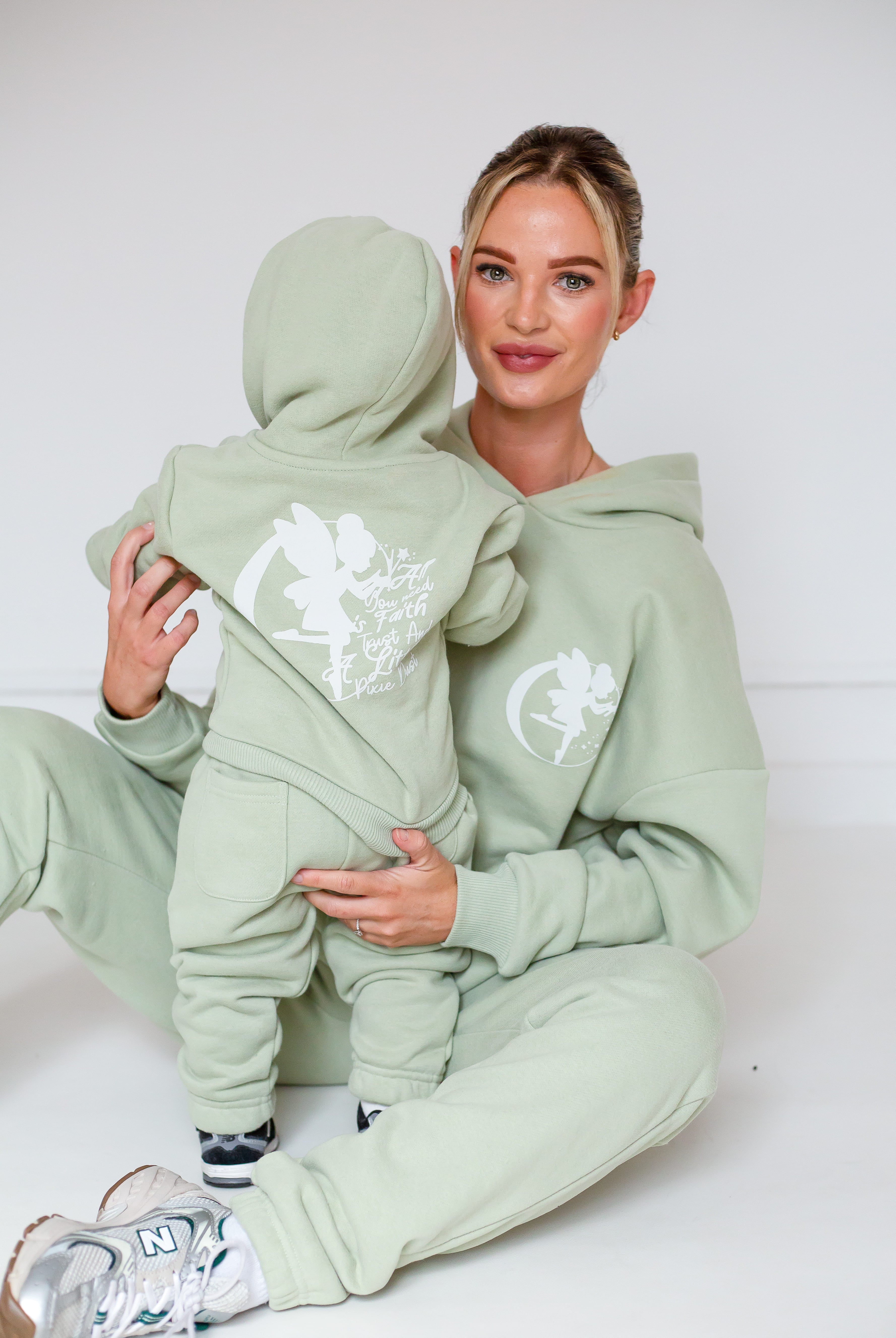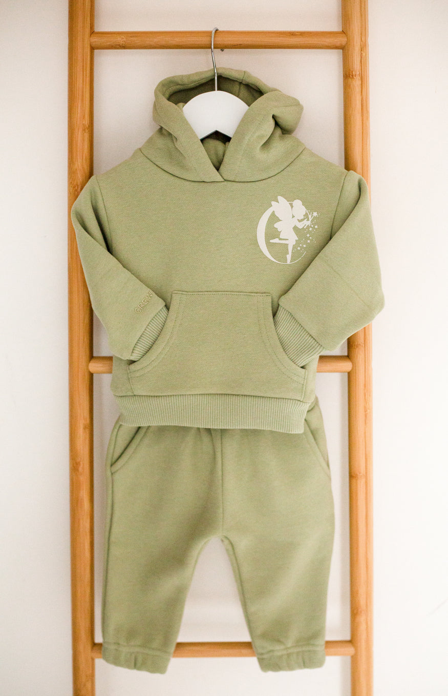 Wrap your little one in cozy magic with our Tinkerbell Tracksuit, available in Biscuit, Sage, and Off-White. This adorable set features a soft oversized hoodie with a playful Tinkerbell puff print on the chest, and the words "All you need is faith, trust, and a little pixie dust" in puff print on the back. Complete with matching sweatpants, this tracksuit is the perfect combination of comfort and style for your child.