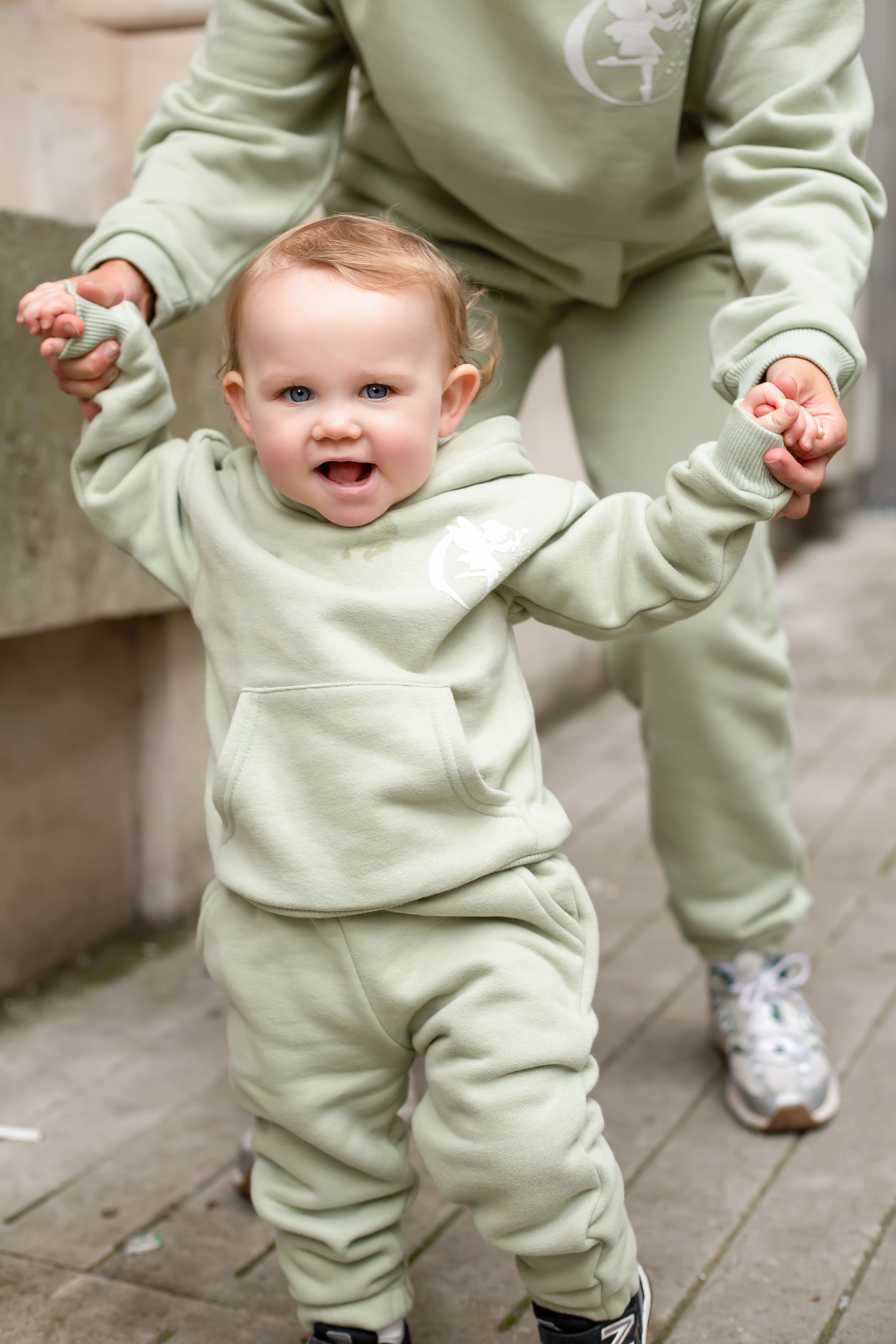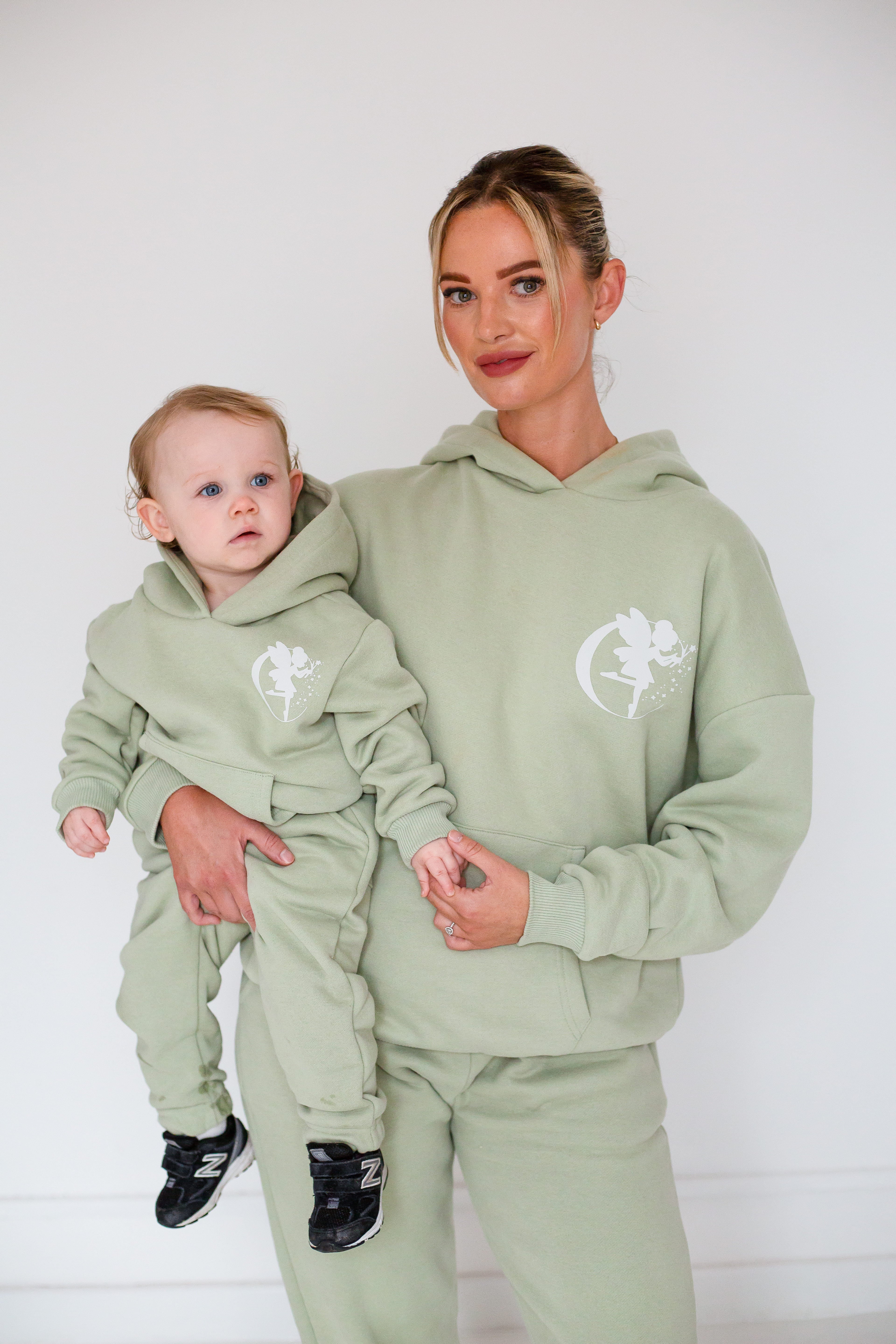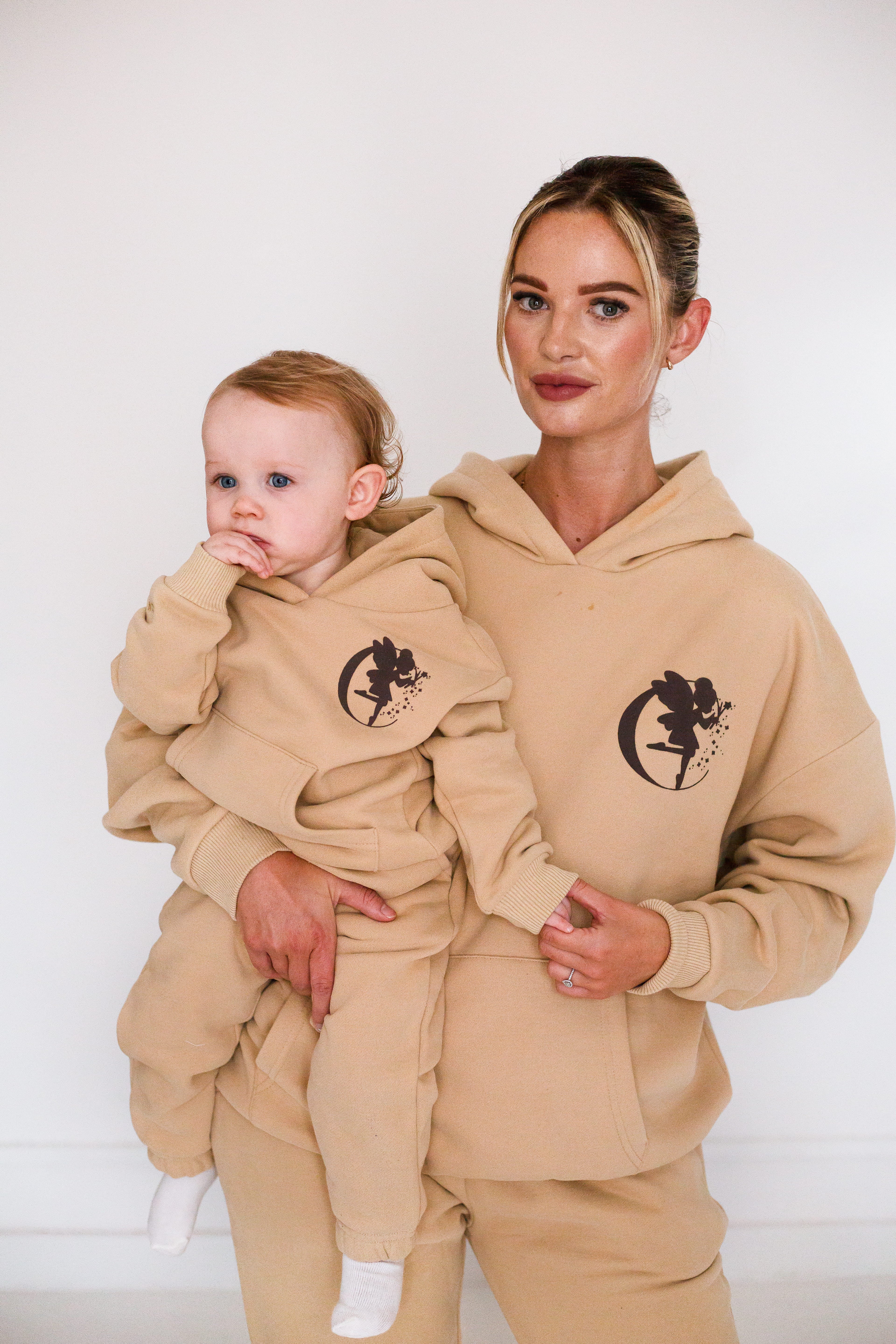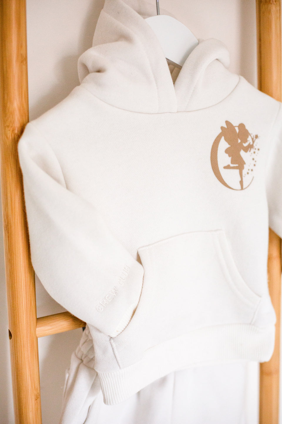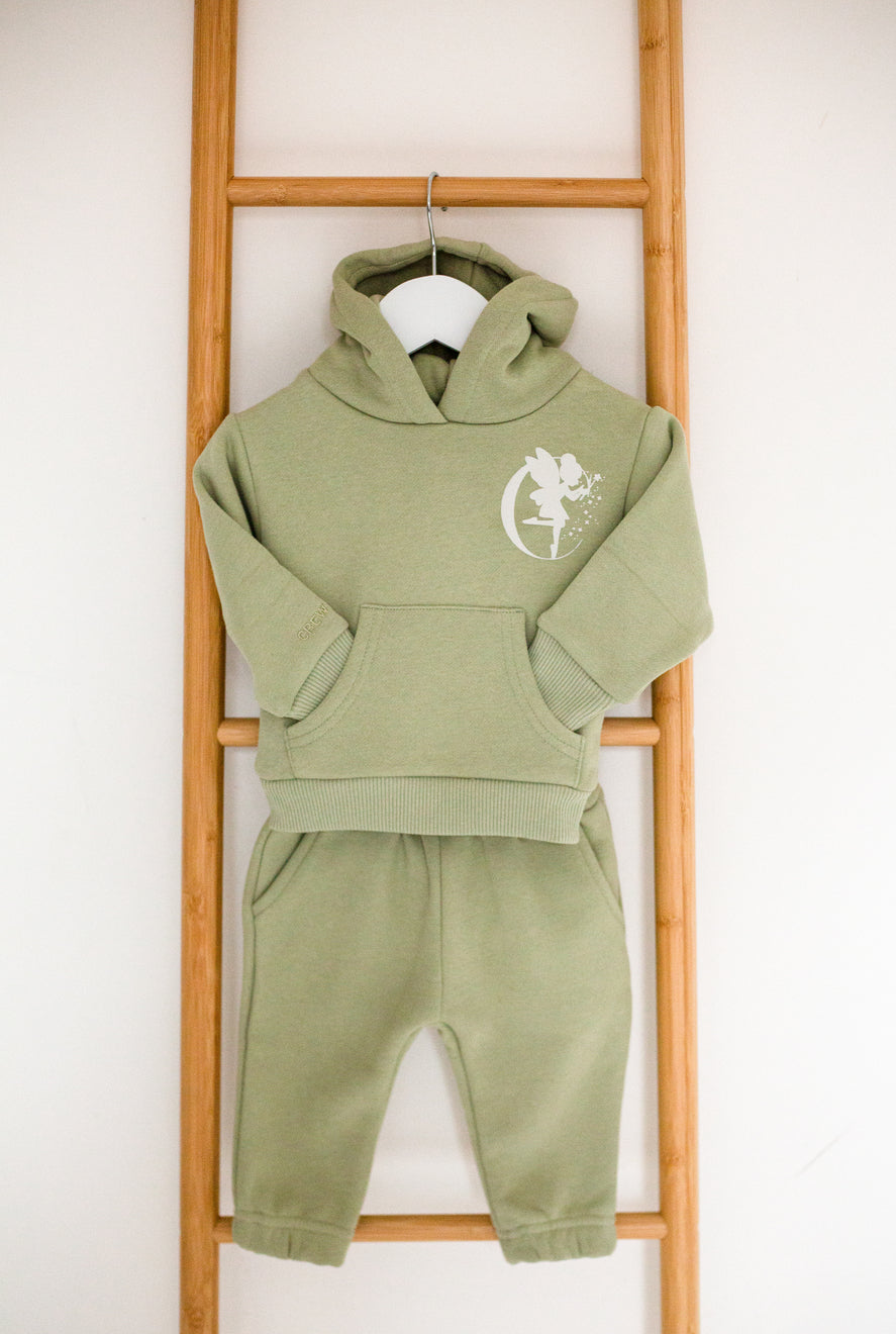 Wrap your little one in cozy magic with our Tinkerbell Tracksuit, available in Biscuit, Sage, and Off-White. This adorable set features a soft oversized hoodie with a playful Tinkerbell puff print on the chest, and the words "All you need is faith, trust, and a little pixie dust" in puff print on the back. Complete with matching sweatpants, this tracksuit is the perfect combination of comfort and style for your child.