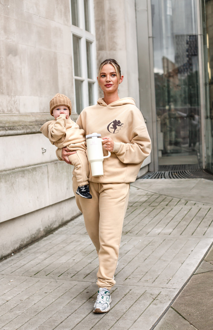 - Fit: Oversized hoodie with dropped shoulders and relaxed fit sweatpants