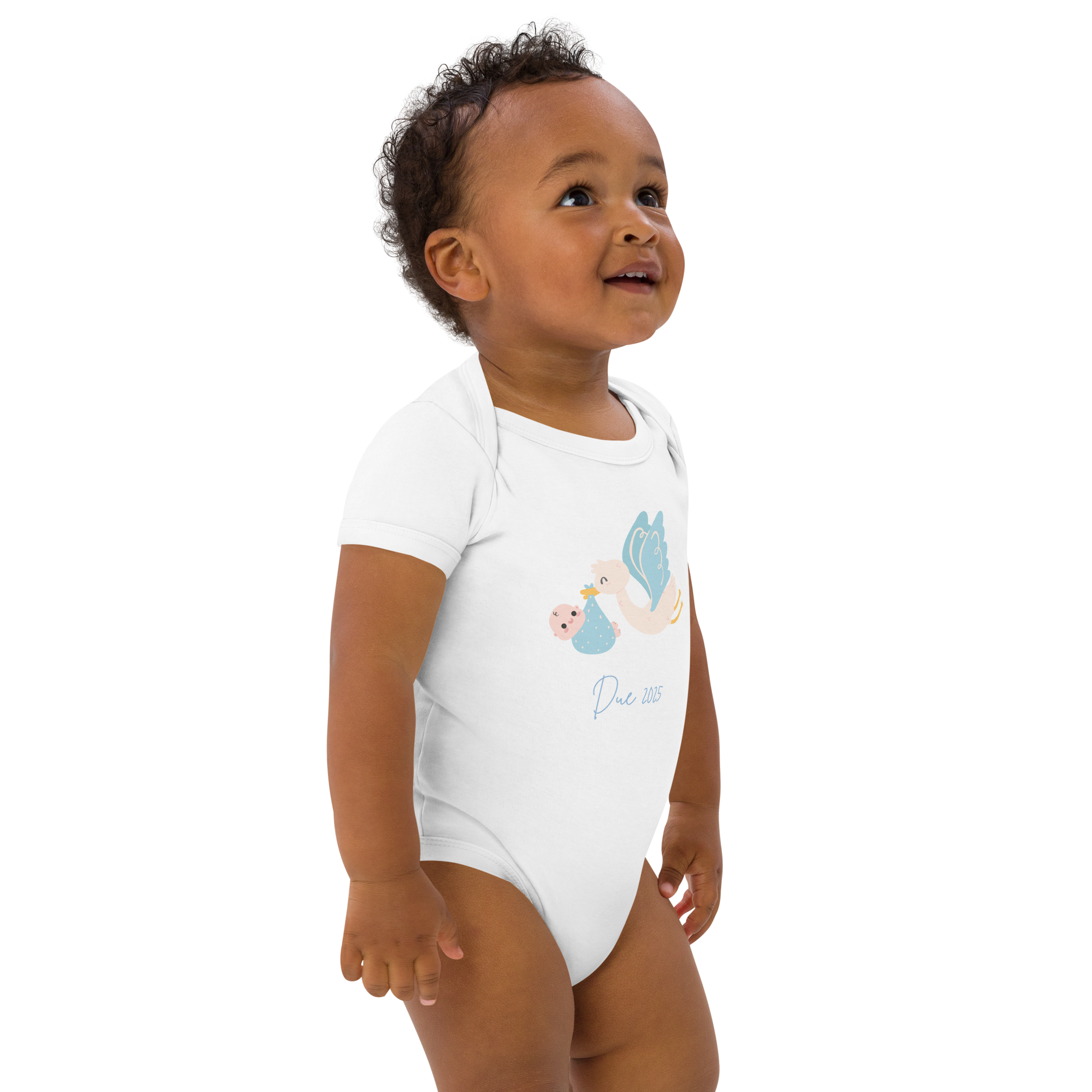 Wir präsentieren den exquisiten personalisierten Body „Stork Baby Boy Due“ des Cozy Crew Club, eine entzückende Ergänzung für die Garderobe jedes Babys und ein ideales Geschenk für stolze Eltern. Dieser bezaubernde weiße Babystrampler wurde mit Liebe und Sorgfalt gefertigt und verfügt über ein kostbares Storchendesign, das Wärme und Staunen hervorruft.