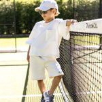Like a cozy hug for little legs, our Resort Club Shorts are made for movement, mischief, and maximum chill. Crafted in a dreamy-soft cotton-poly blend, they’re lightweight, breathable, and perfect for sunny park runs or sofa snuggles.