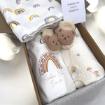 Wrap your little miracle in the warmest of welcomes with our Rainbow Personalised Gift Box — a heartfelt tribute to rainbow babies and the incredible journeys that bring them into the world.
