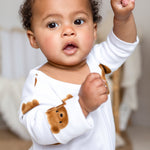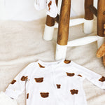 Unser Dreamy Bear Print-Strampler zeichnet sich durch Funktionalität und Stil aus und ist perfekt für jeden Anlass, egal ob zu Hause oder unterwegs. Diese entzückenden Schlafanzüge werden garantiert überall für Aufsehen sorgen!