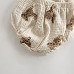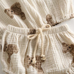 Kleiden Sie Ihr Kind in das Outfit mit Bären-T-Shirt, Shorts und Stirnband und sehen Sie, wie es vor Selbstvertrauen und Bequemlichkeit strahlt. Bestellen Sie jetzt und sorgen Sie dafür, dass die Sommertage voller Freude, Stil und endloser Erinnerungen sind.