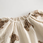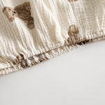 Das Bären-T-Shirt ist aus unserem weichsten Stoff gefertigt und fühlt sich sanft auf der zarten Haut Ihres Kindes an. Die gerippte Textur verleiht einen Hauch von Eleganz, während die kurzen Ärmel Bewegungsfreiheit und Atmungsaktivität bieten. Das bezaubernde Bärendesign auf der Vorderseite verleiht dem Ensemble einen verspielten Charme, der Kinder und Eltern gleichermaßen begeistert.