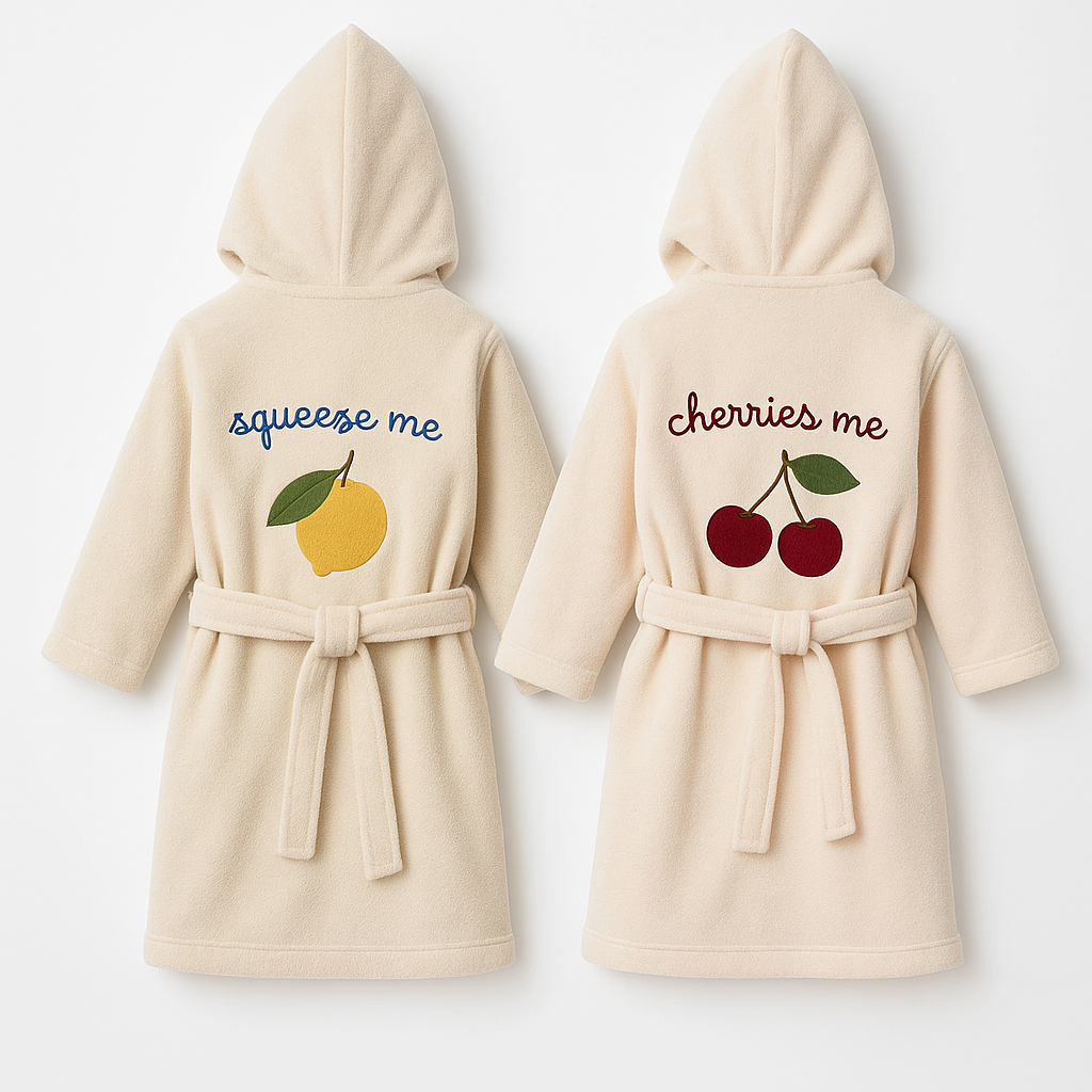 COZY Luxus-Bademantel mit Kapuze, Badetuch, Zitrone und Kirsche