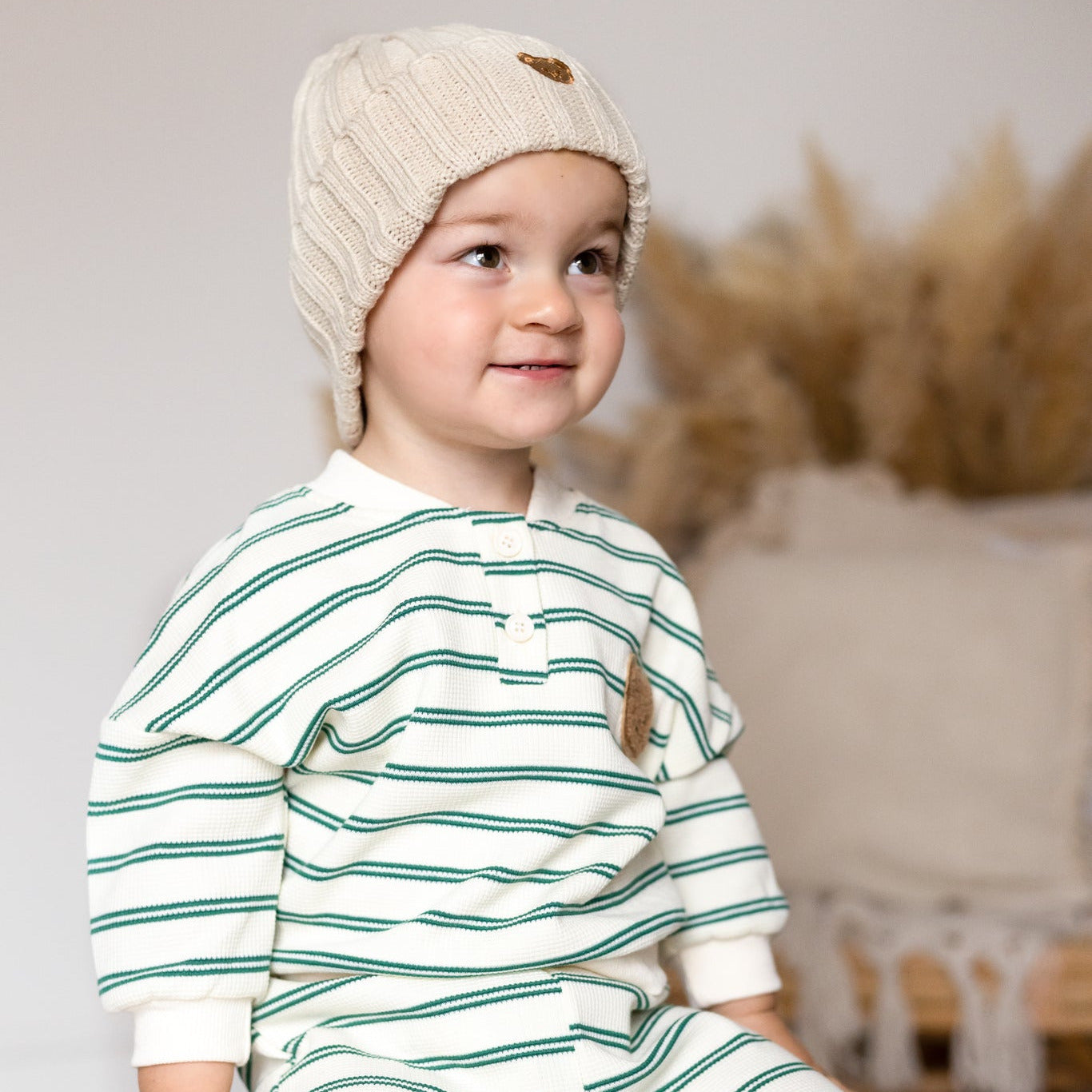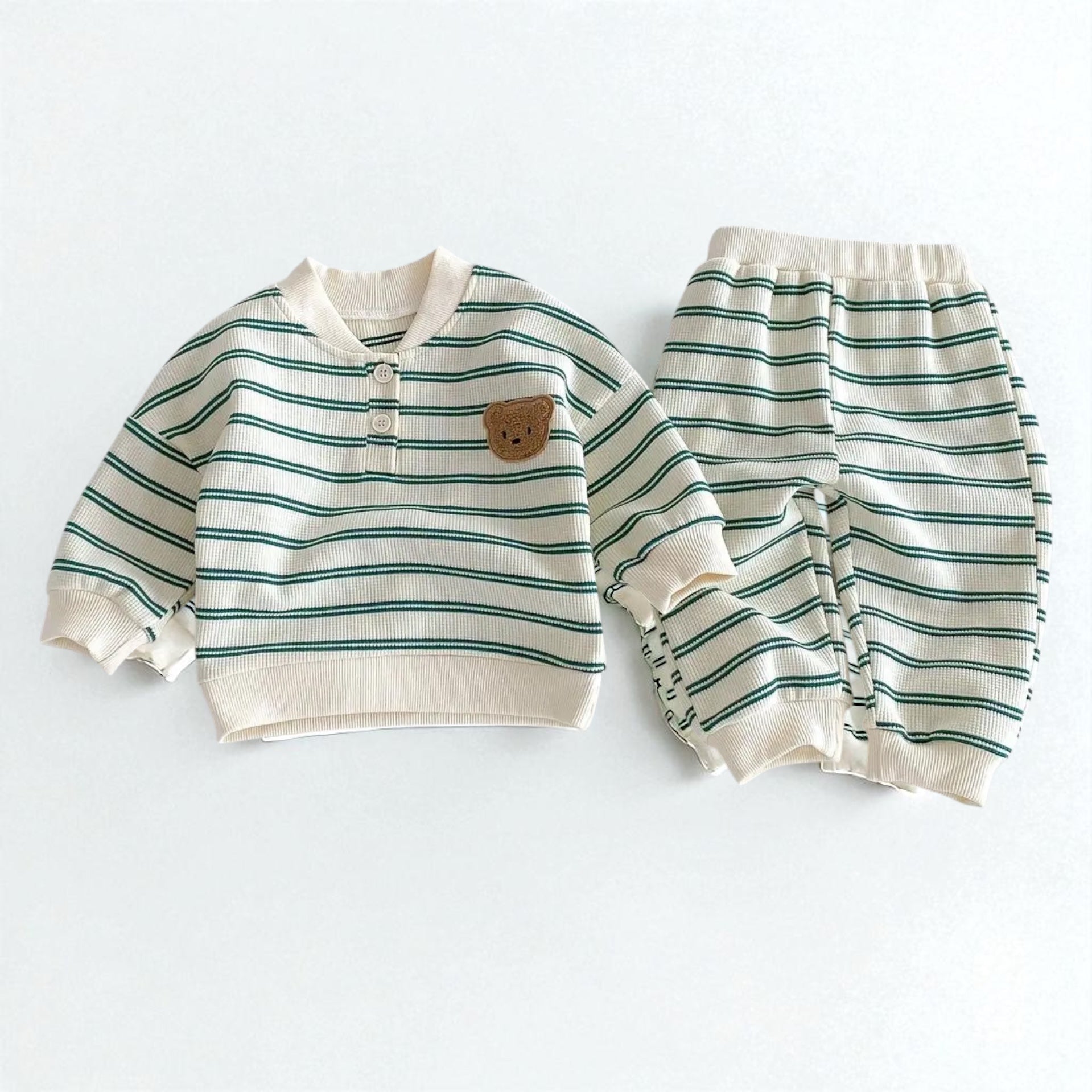 Say hello to your baby’s new go-to outfit: the Striped Polo Bear Tracksuit – a two-piece set that blends effortless style with all-day coziness. Featuring a textured stripe knit and a sweet teddy bear patch, it’s the perfect combo of classic polo vibes and playful Cozy Crew personality.