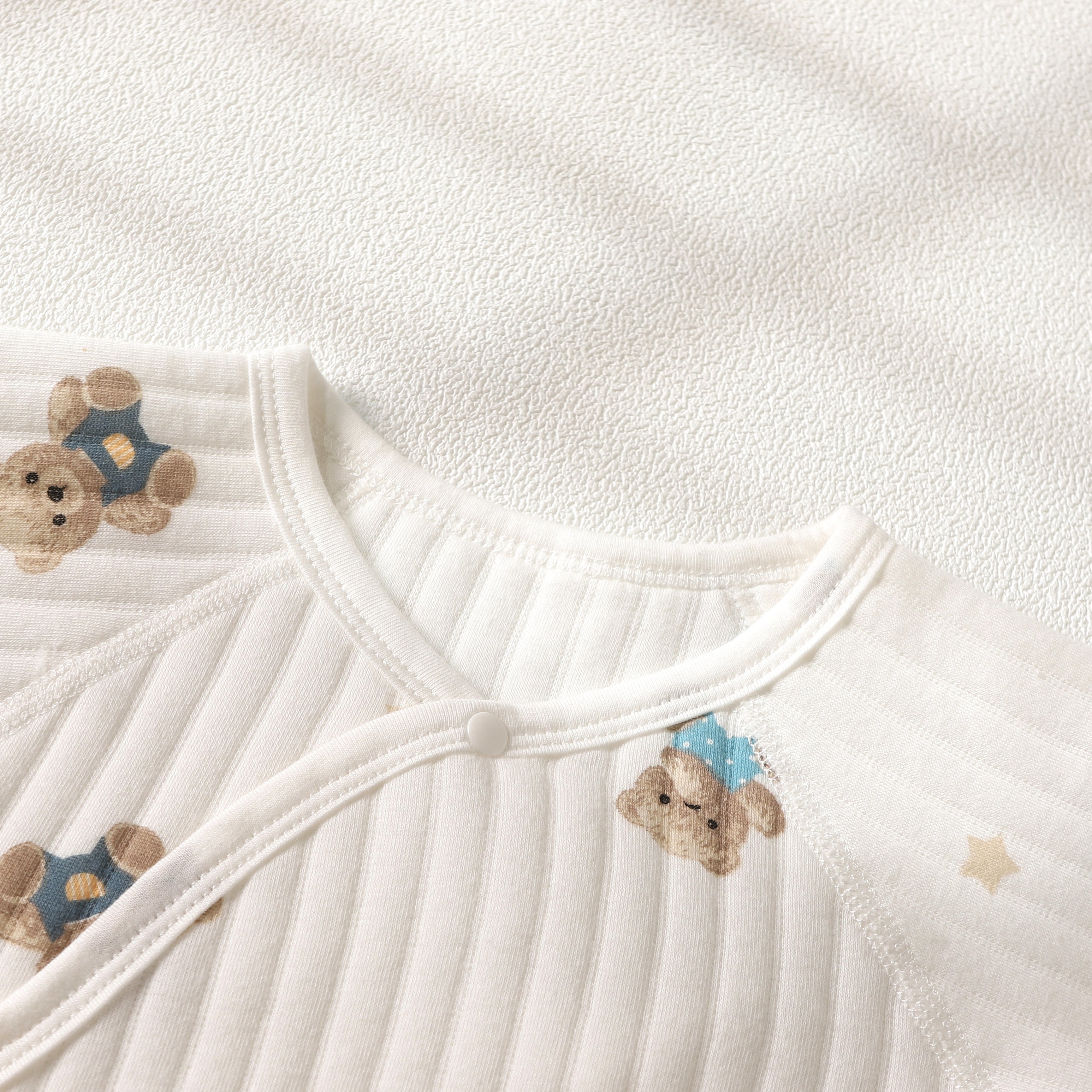 Der Charming Bear Boucle Wrap Baby Strampler ist in verschiedenen Größen für Babys vom Neugeborenen bis zum heranwachsenden Säugling erhältlich und bietet eine bequeme, flexible Passform, die freie Bewegung ermöglicht. Der Wickelverschluss garantiert eine sichere und bequeme Passform und passt sich den wechselnden Bedürfnissen Ihres Babys an.