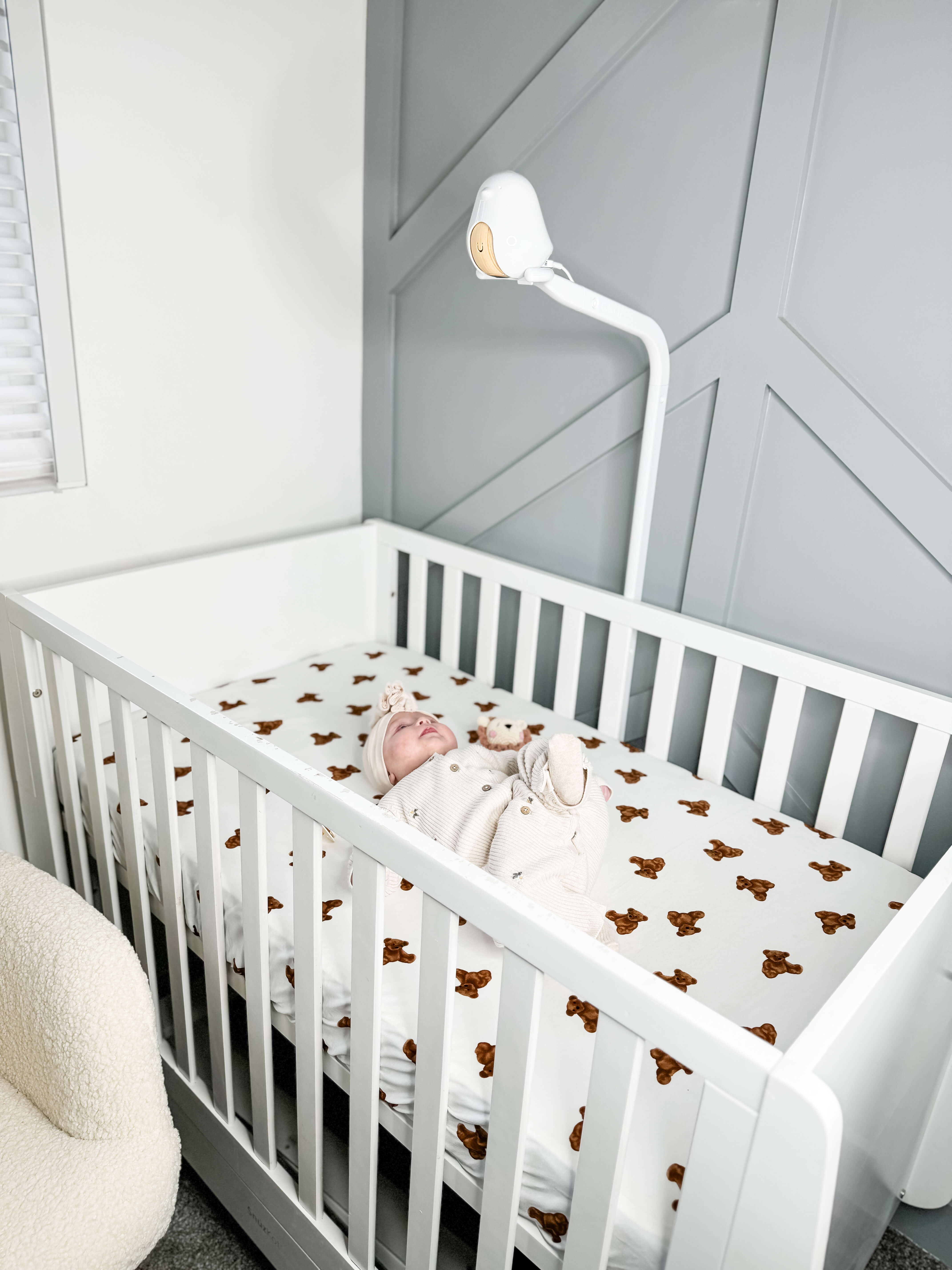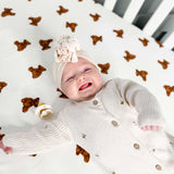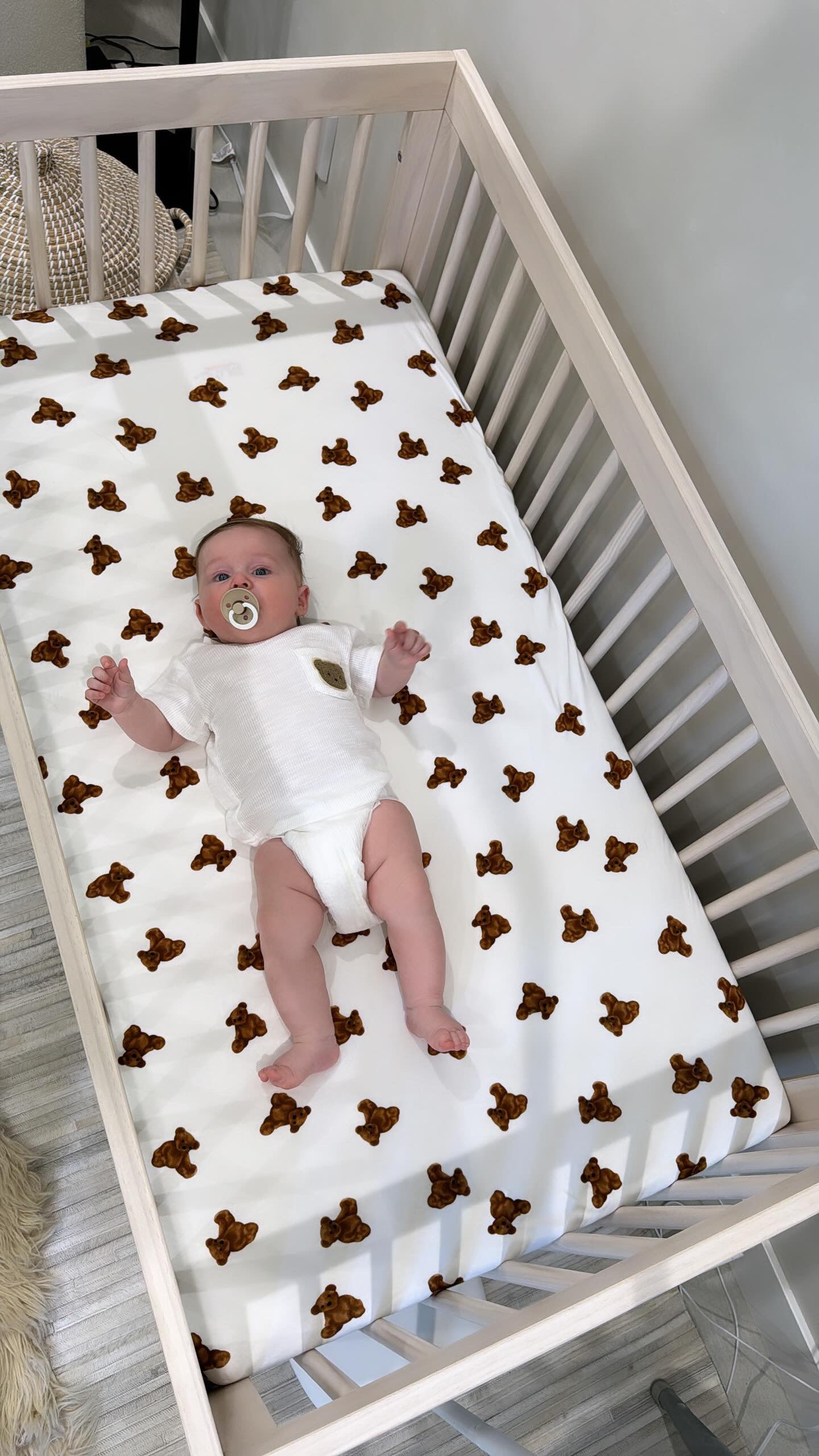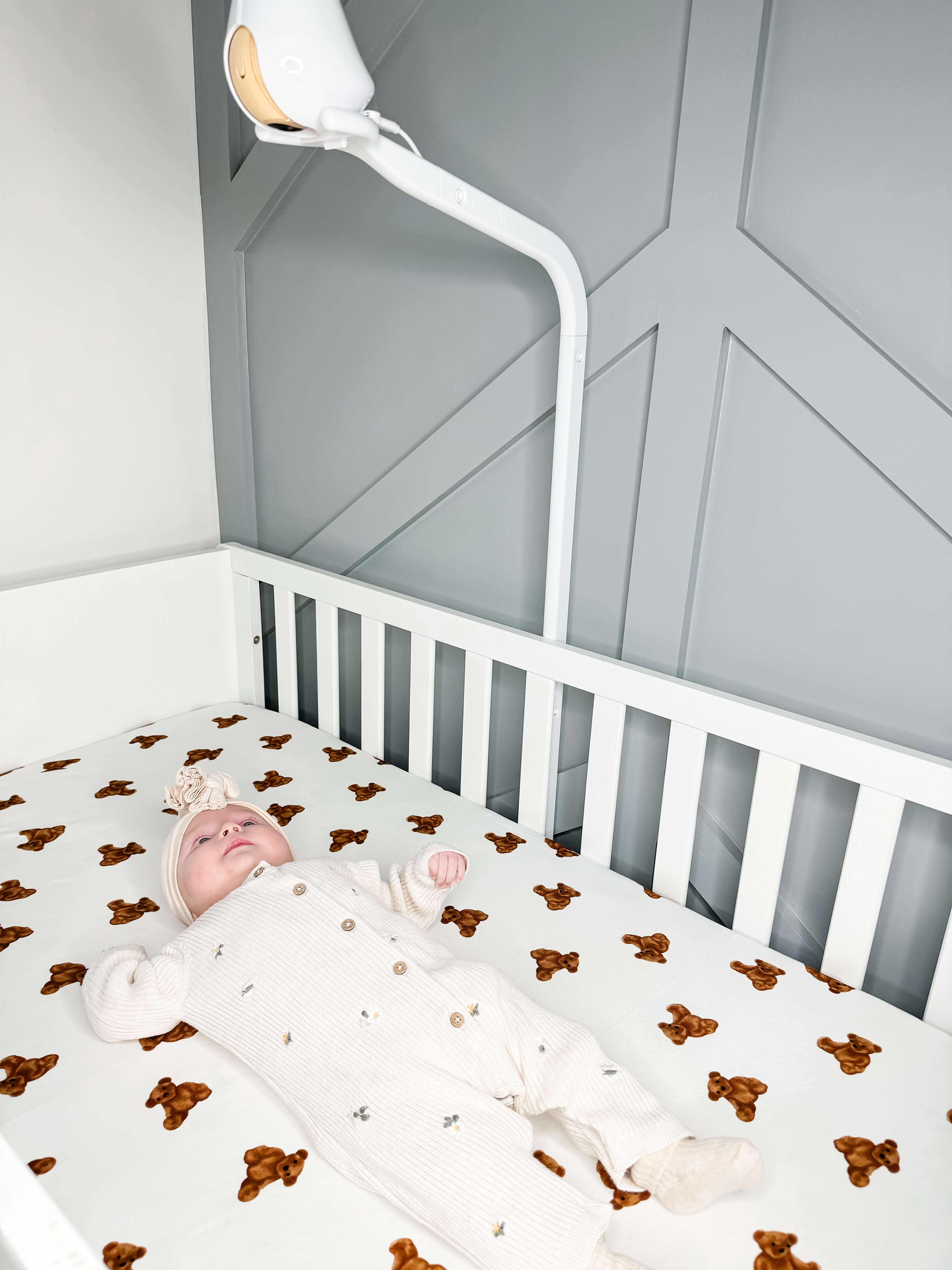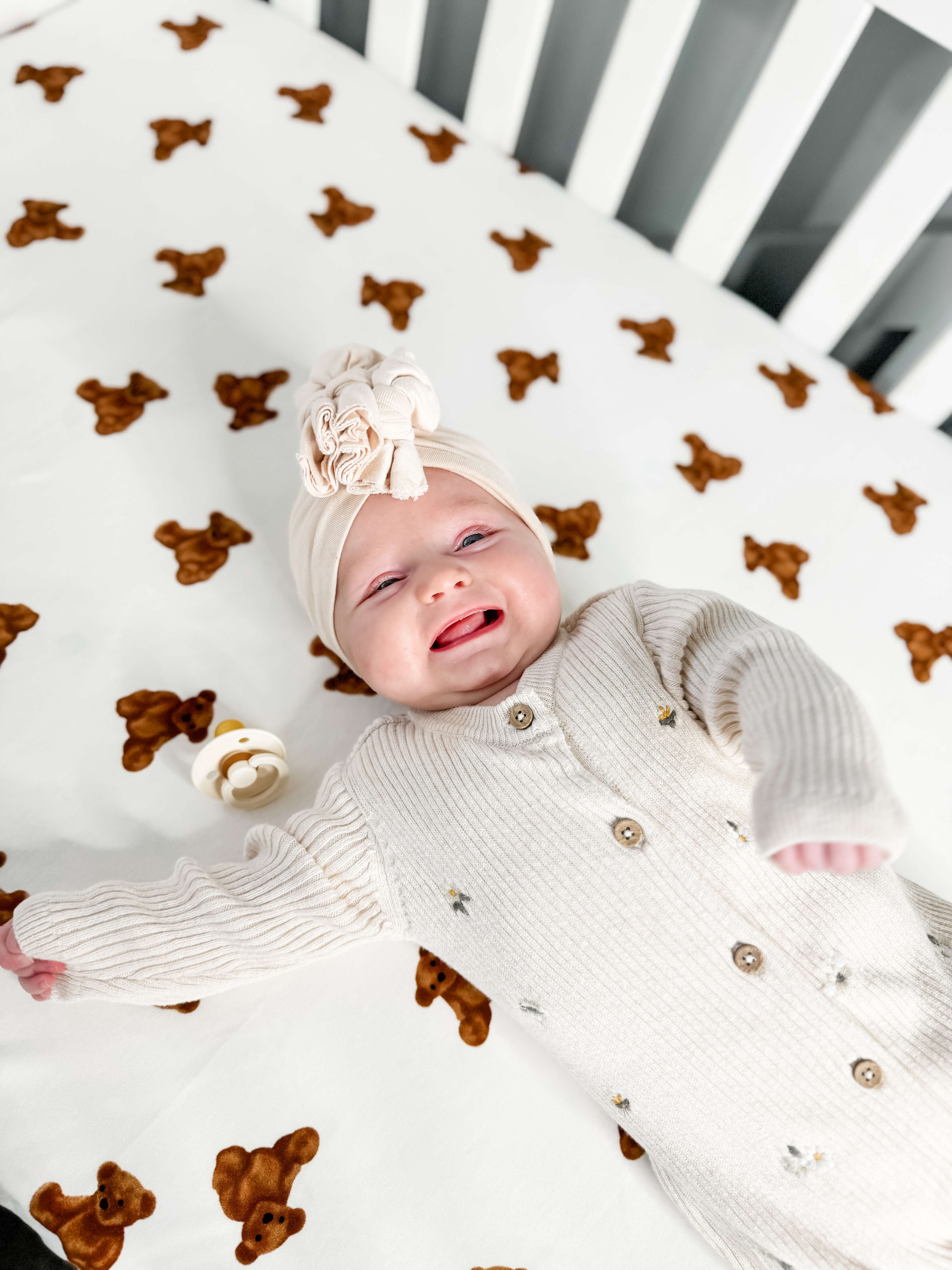 Wir präsentieren Ihnen die neuste Ergänzung vom Cozy Crew Club für das Kinderzimmer Ihres Babys: unsere entzückenden Bettlaken mit Bärenmuster.