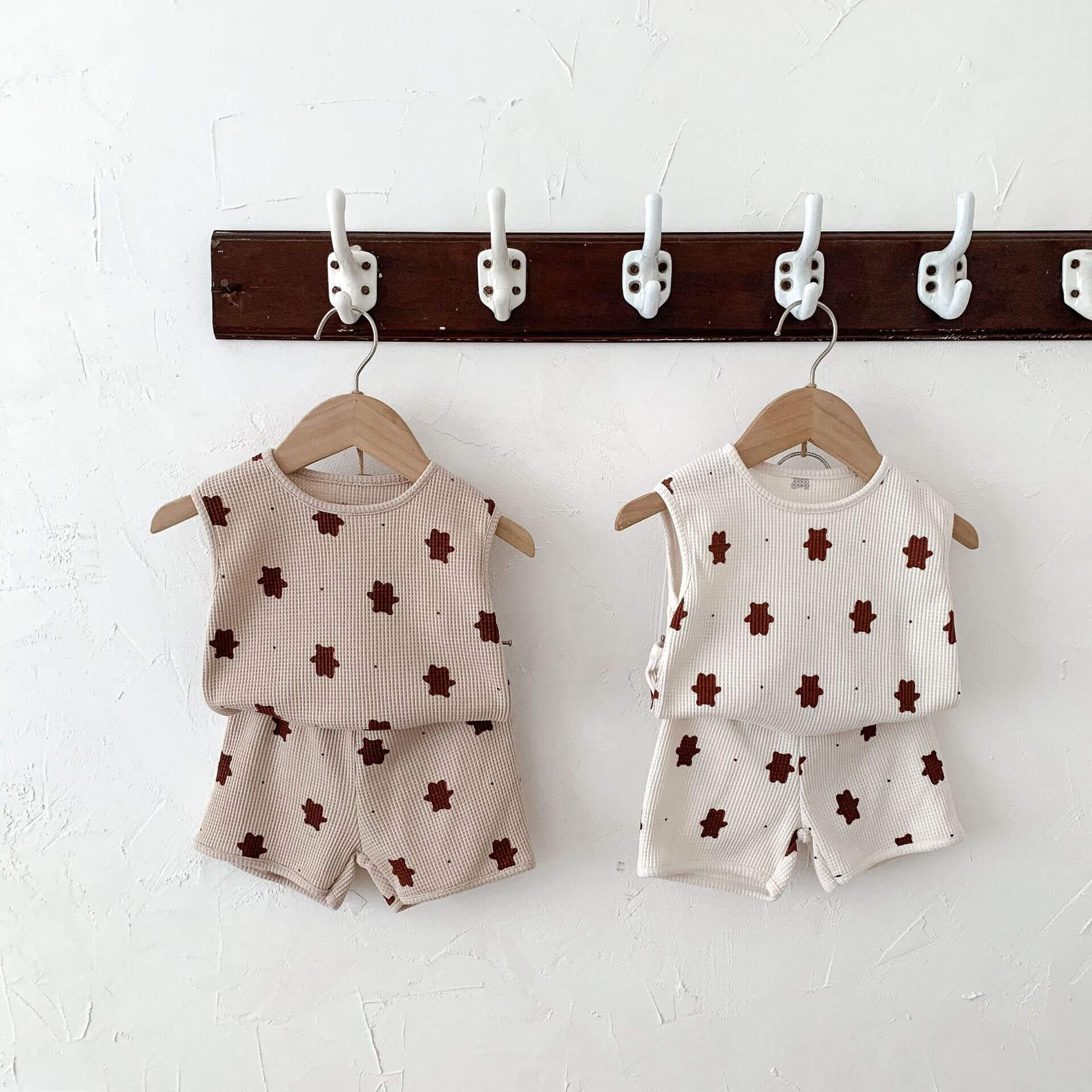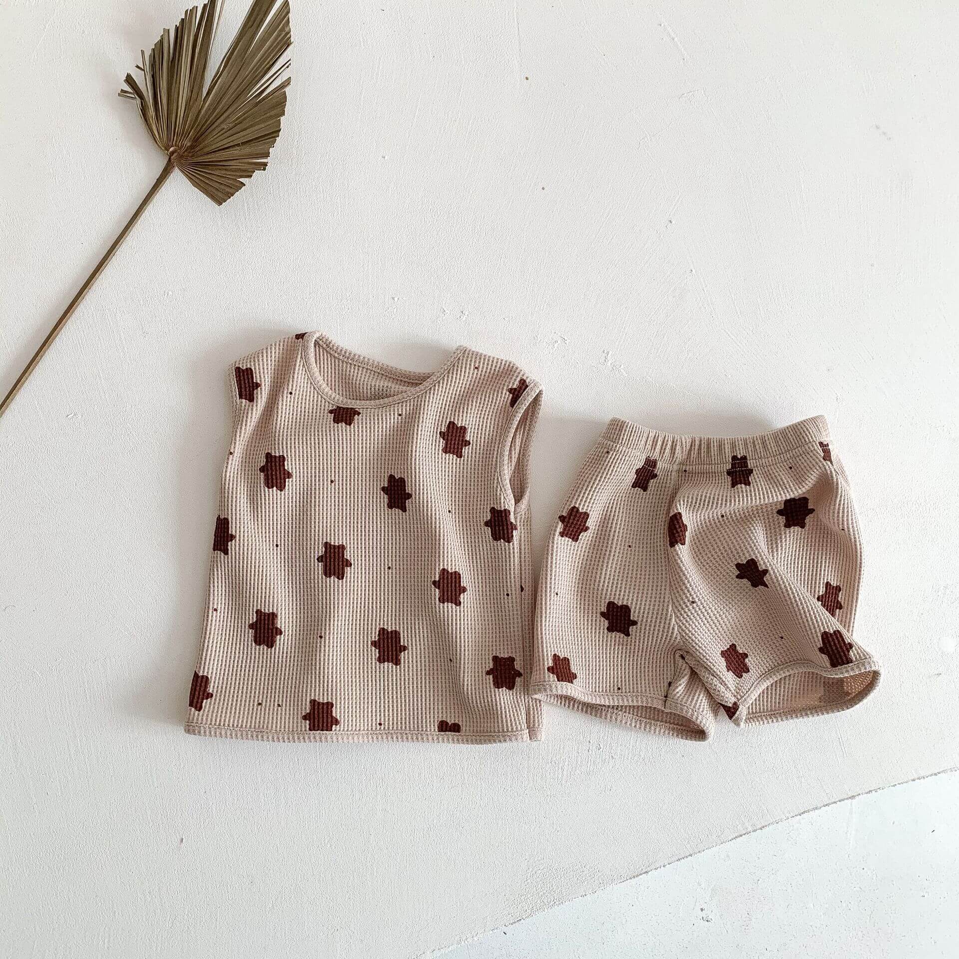 Das süße Bären-T-Shirt- und Shorts-Outfit ist ein perfektes Sommer-Tages-Ensemble für die Kleinen. Das Set besteht komplett aus unserem weichsten charakteristischen Stoff und umfasst ein T-Shirt und Shorts mit einem elastischen Bund für mehr Komfort.