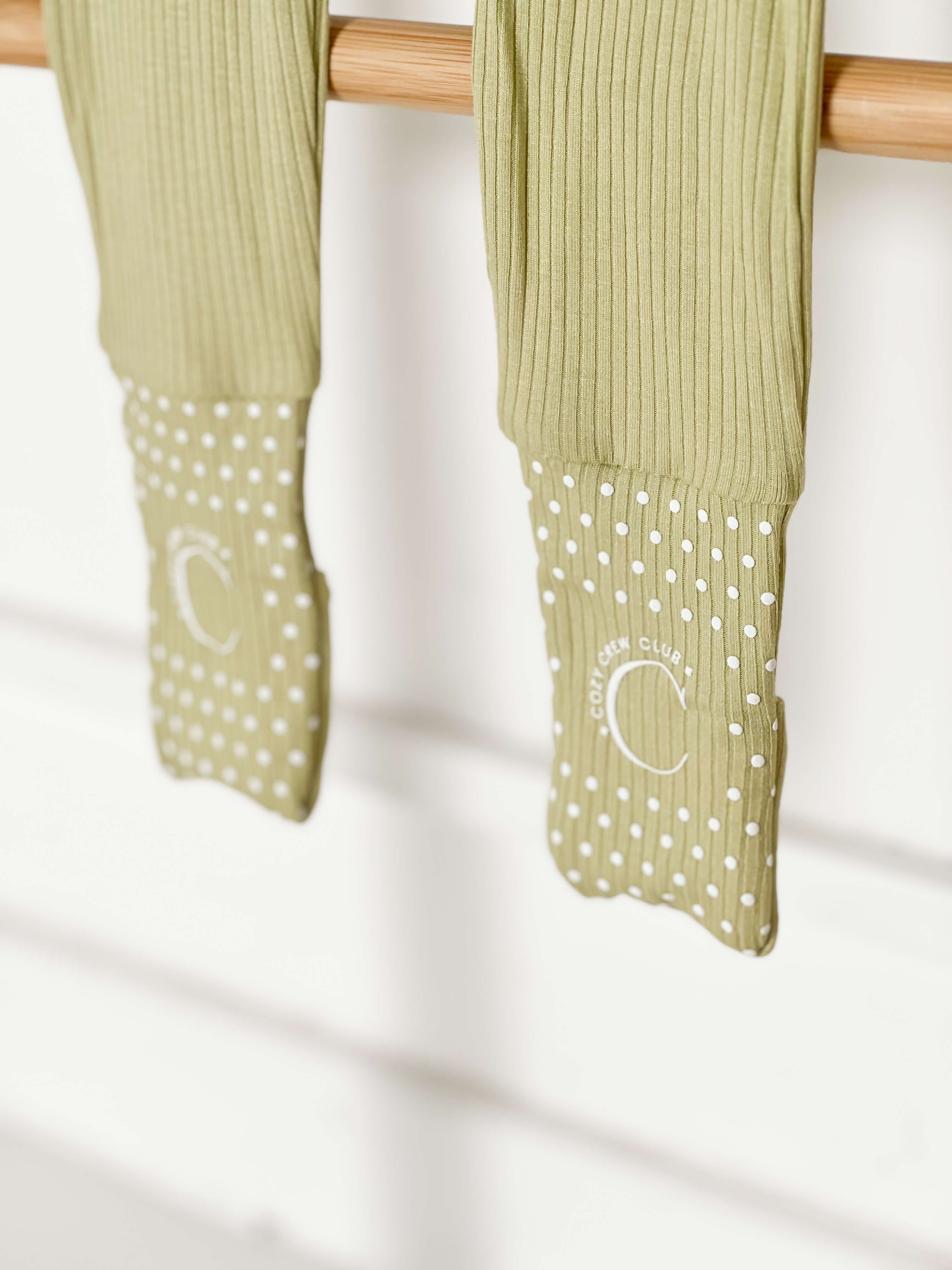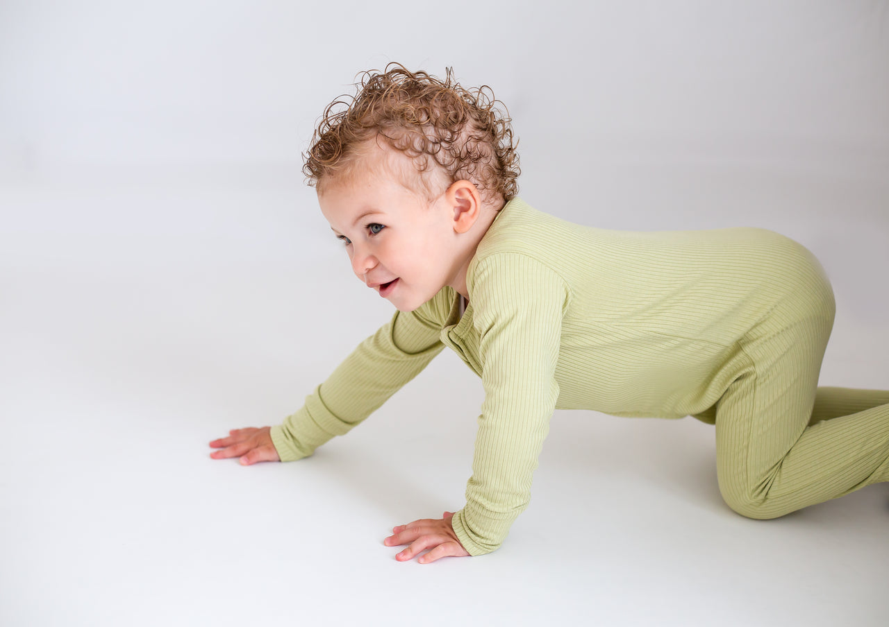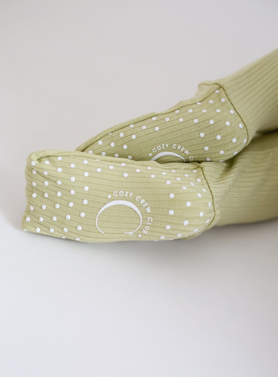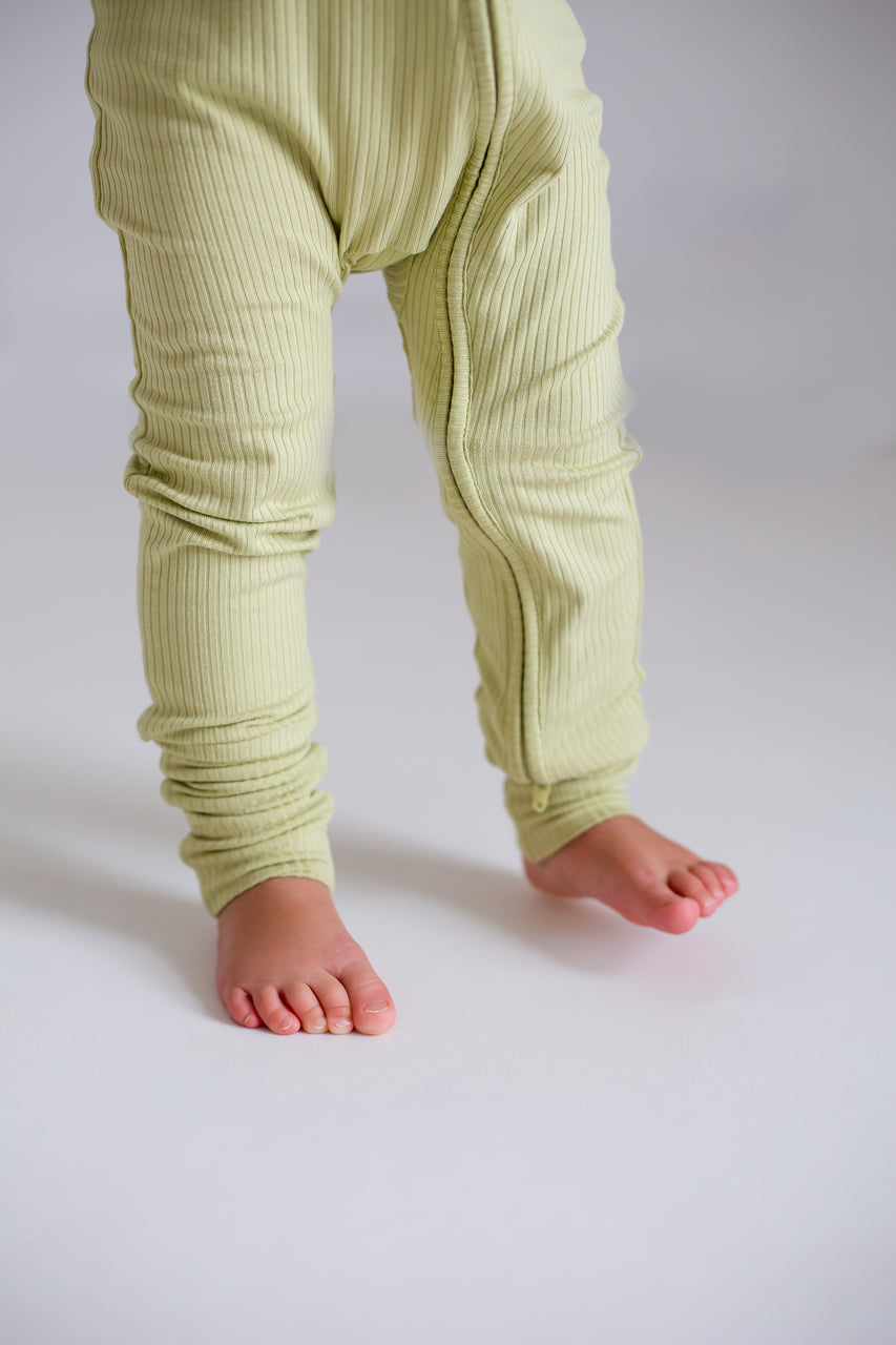 Grüner gerippter Schlafanzug aus Bambus mit Reißverschluss, einteilig