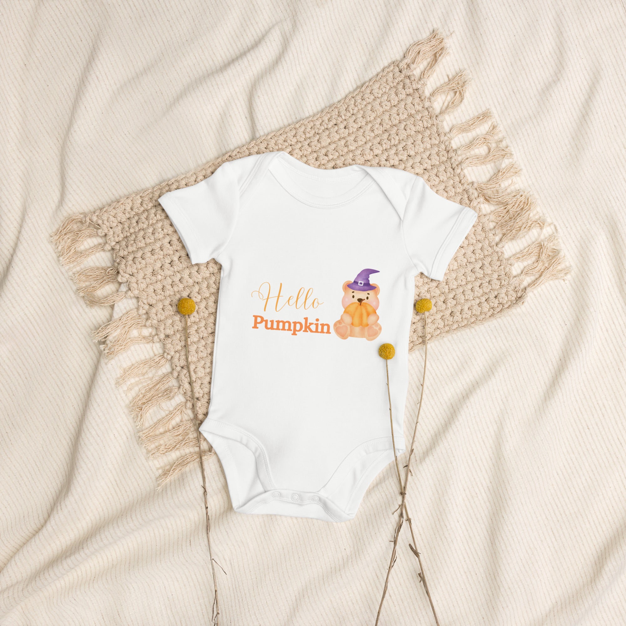 Celebrate your baby’s first Halloween with the Cozy Crew Club’s "Hello Pumpkin Bodysuit" – crafted with care to make this milestone as memorable as possible.