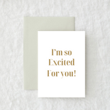 Unsere handgemachte Geschenkkarte „Ich freue mich so für dich“ wird exklusiv für den Cozy Crew Club in Großbritannien hergestellt. Diese Karte wird im Studio von Hand aus handgeschöpftem Papier foliert.
