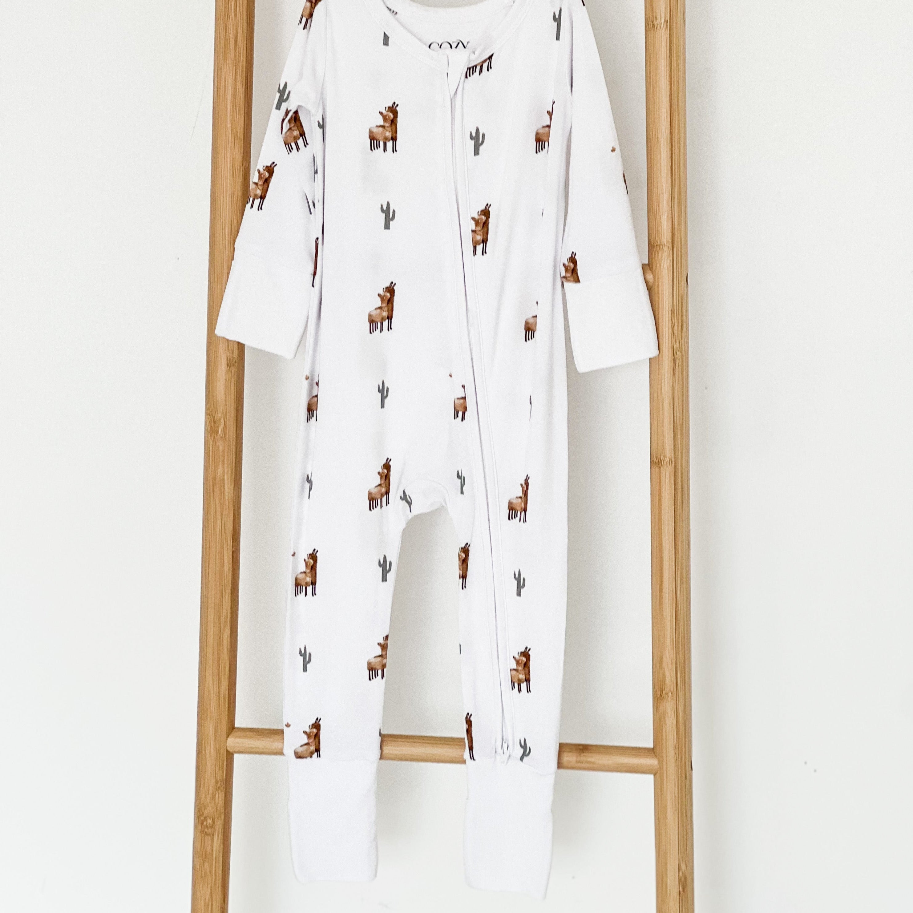 Lama Bambus Schlafanzug Einteiler mit Reißverschluss
