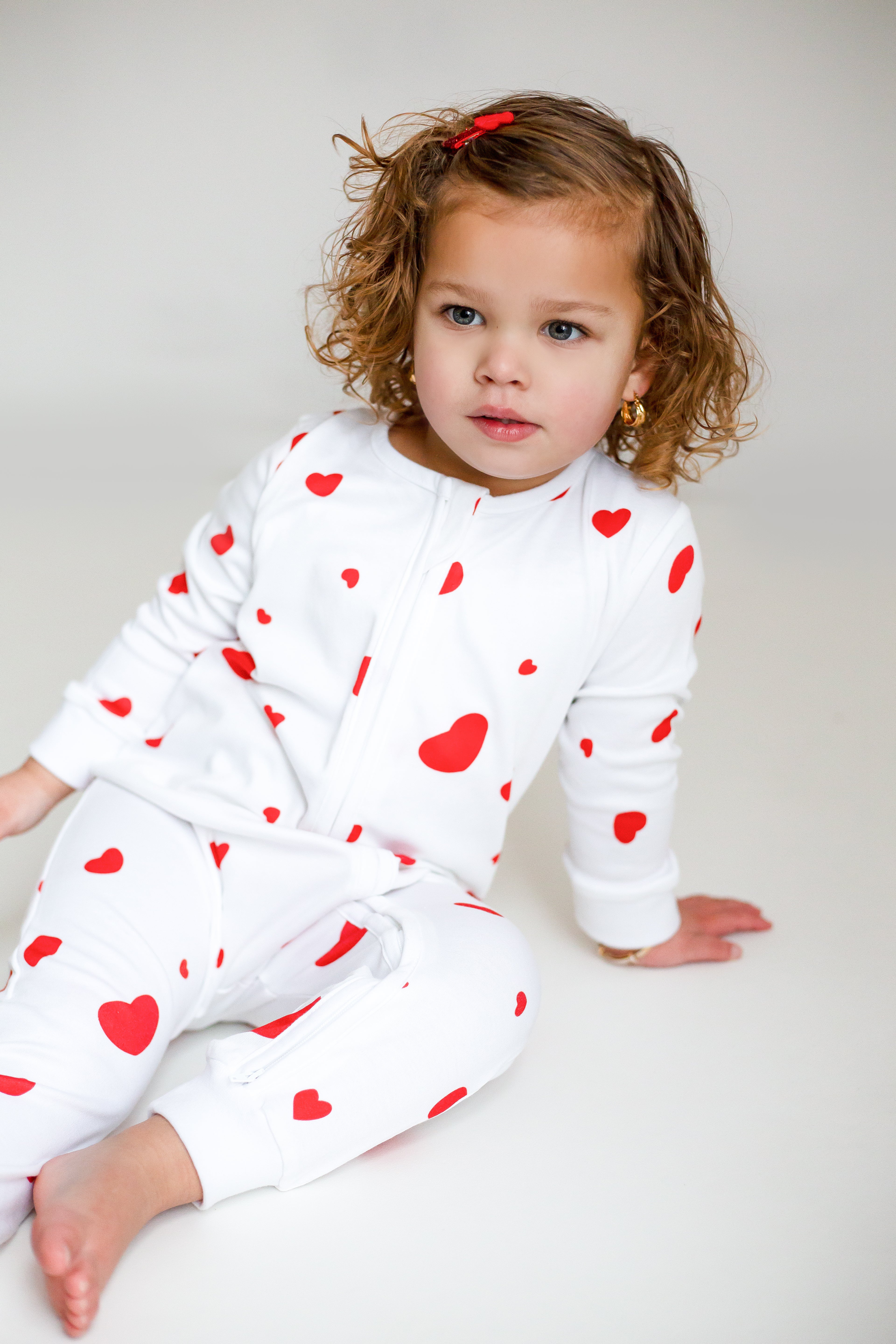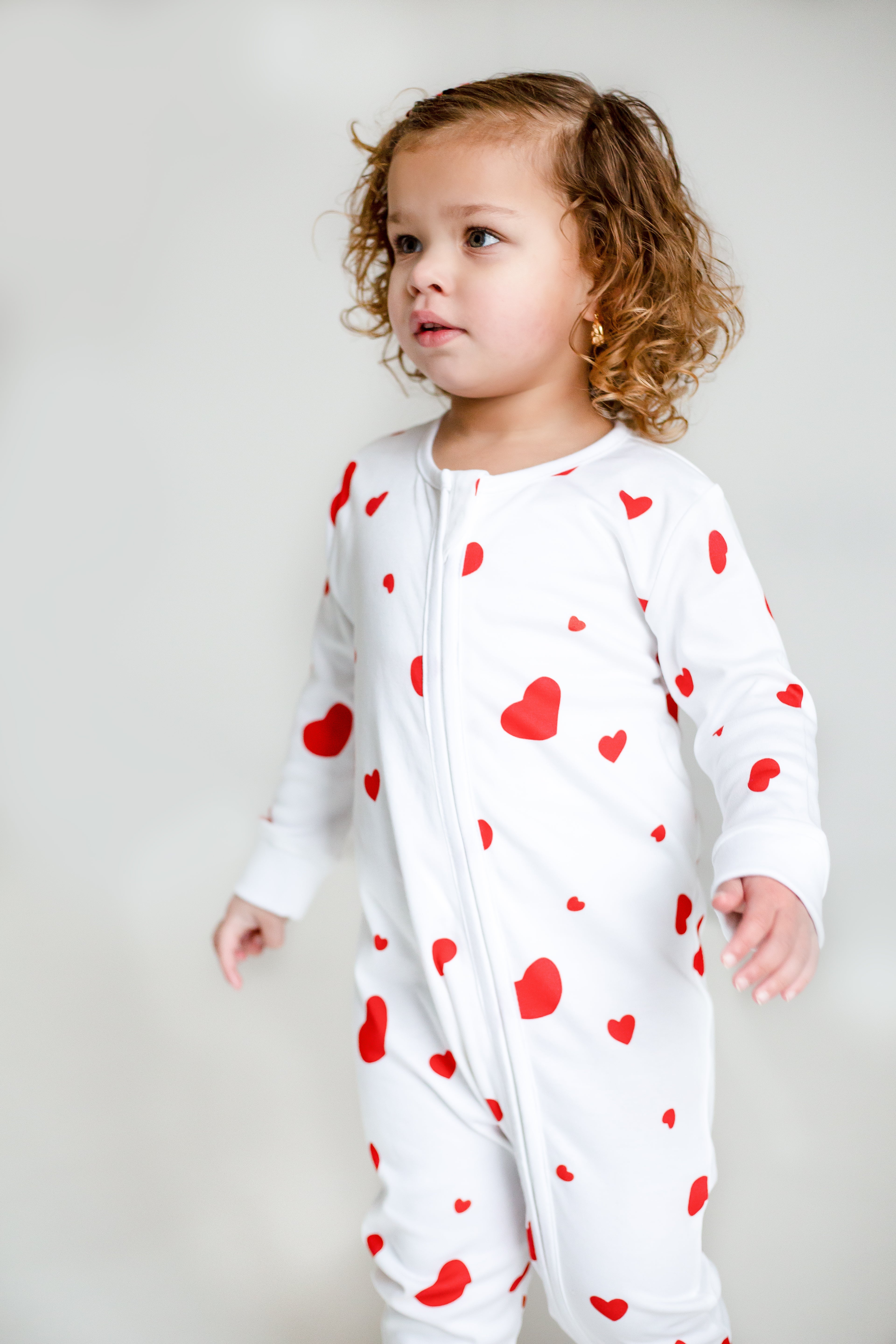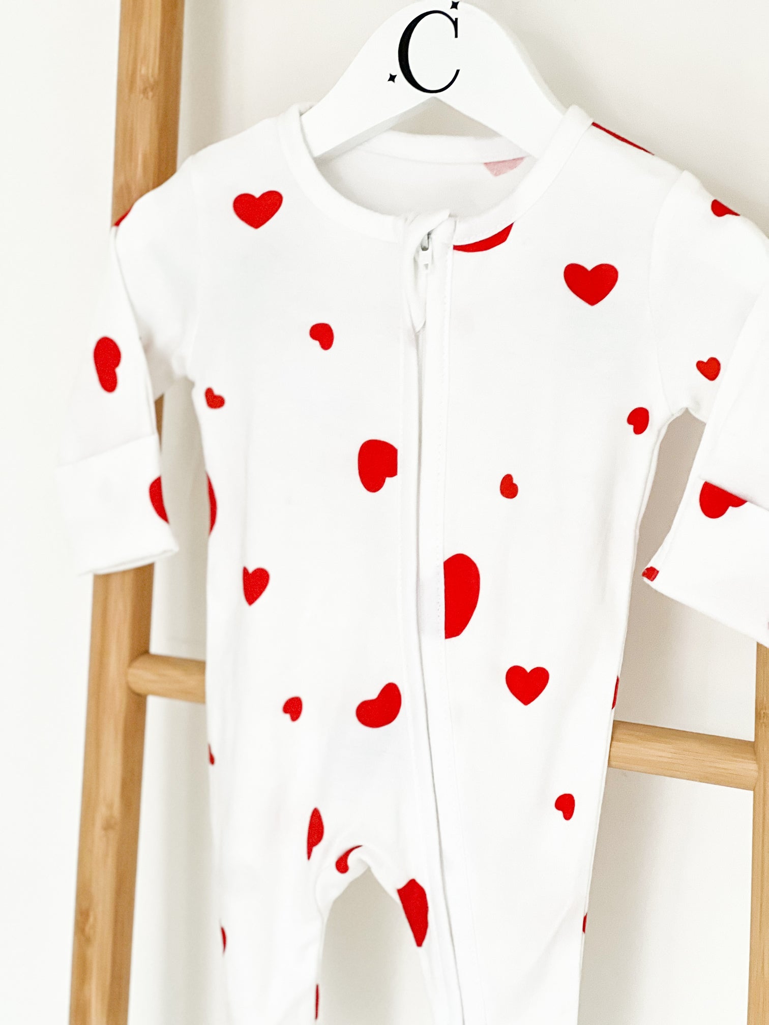 Schlafanzug mit Reißverschluss aus Bambus und Bio-Baumwolle mit Herzmotiv „Love Heart Valentines“, einteilig