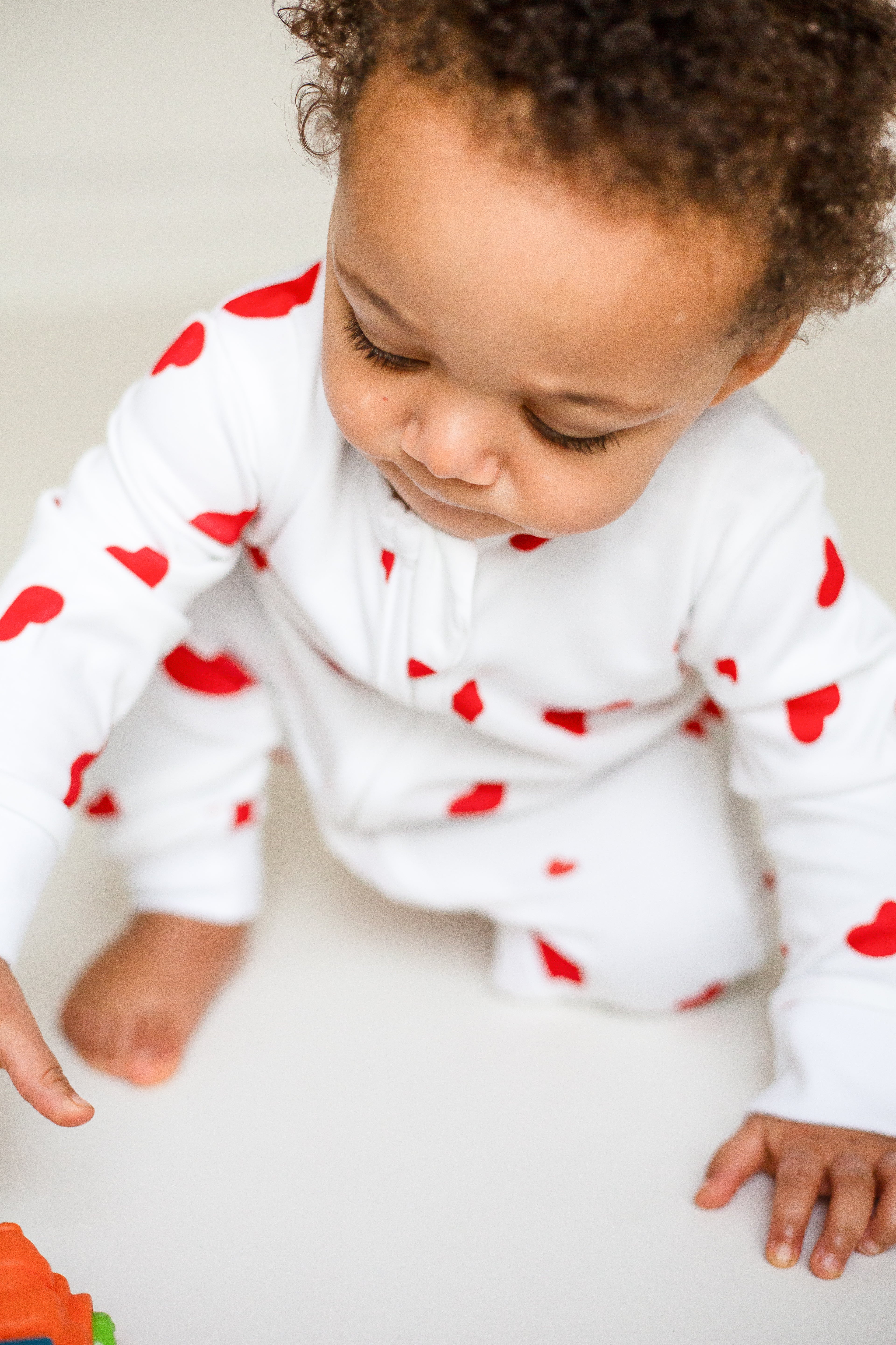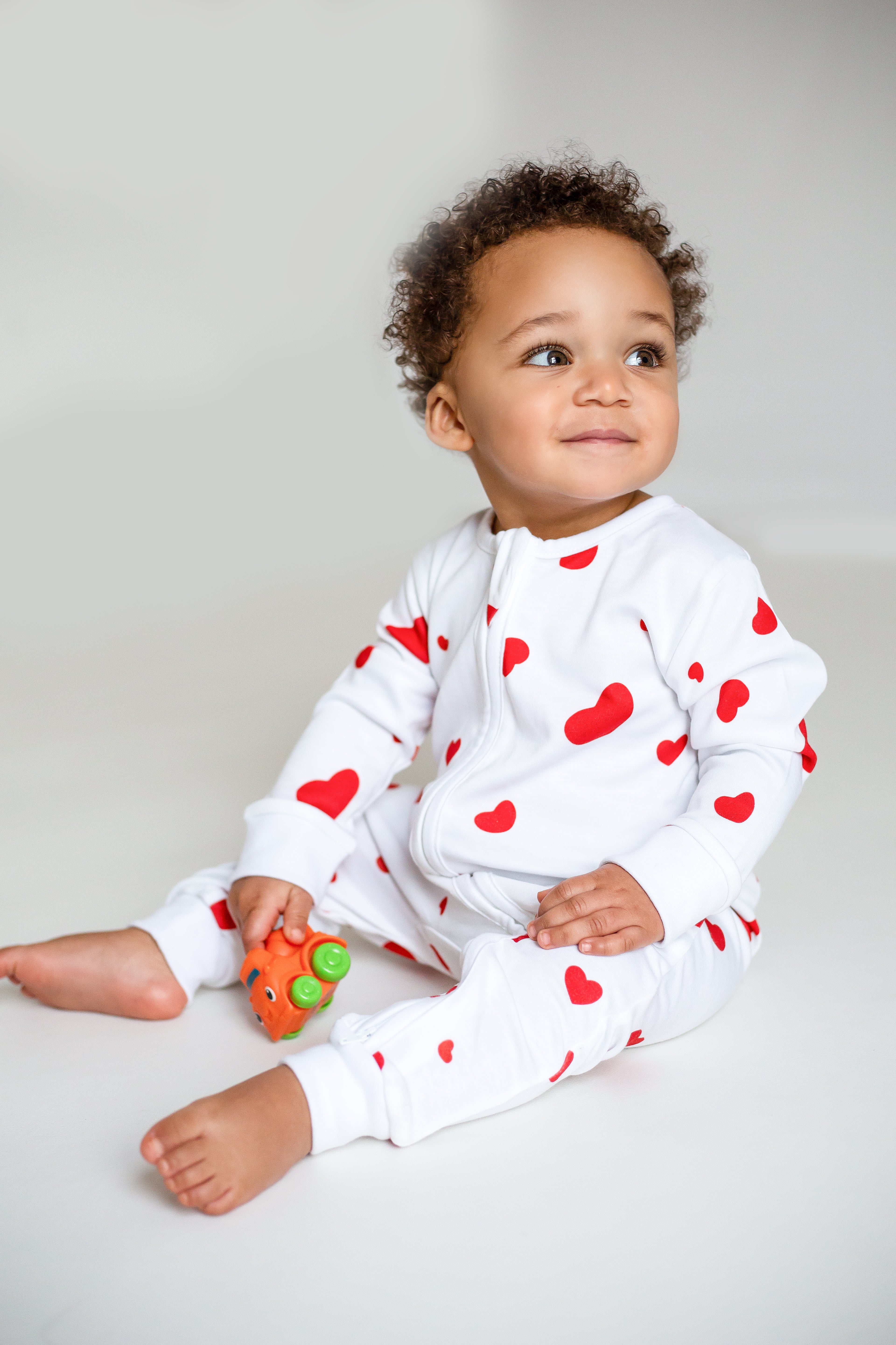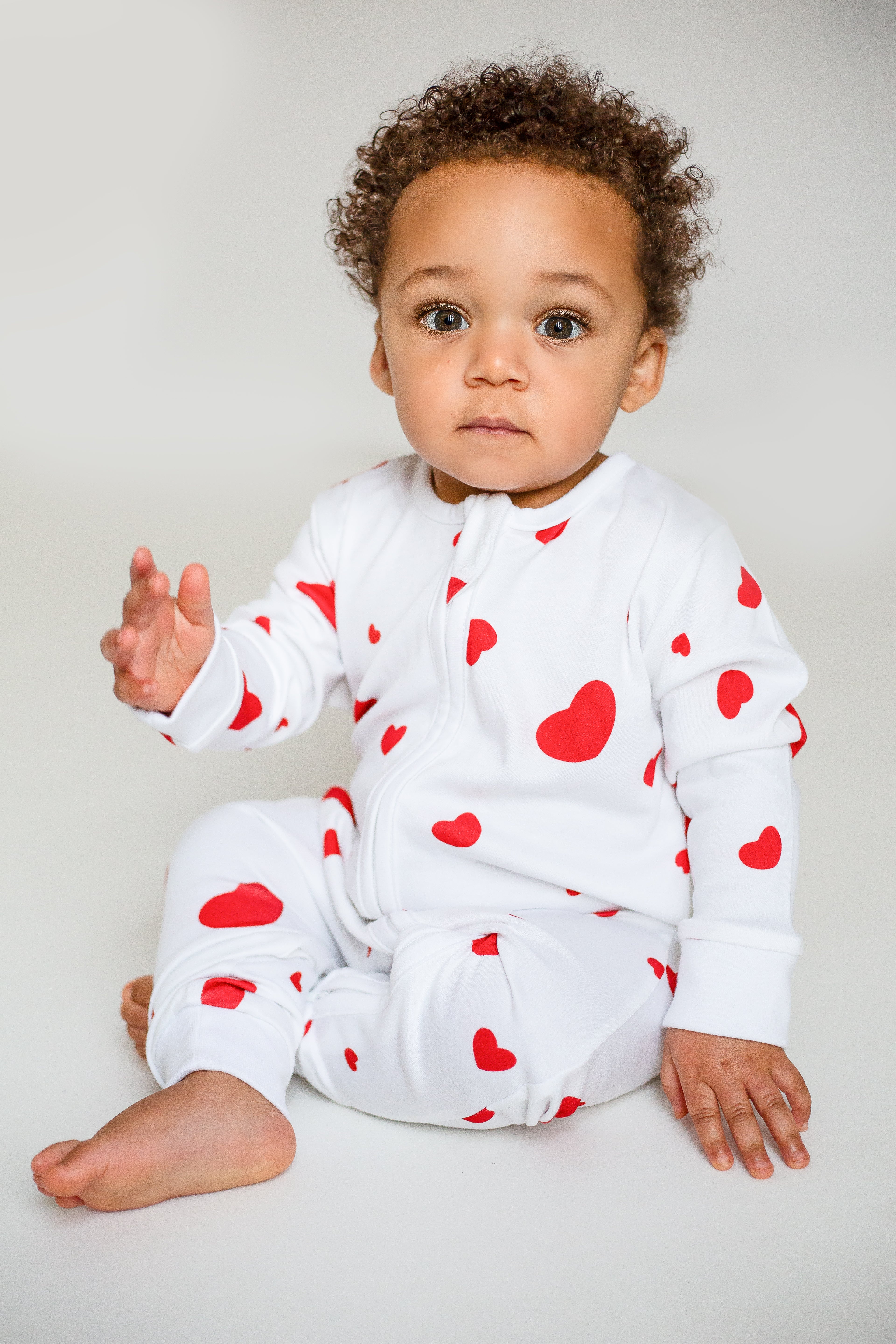 Schlafanzug mit Reißverschluss aus Bambus und Bio-Baumwolle mit Herzmotiv „Love Heart Valentines“, einteilig