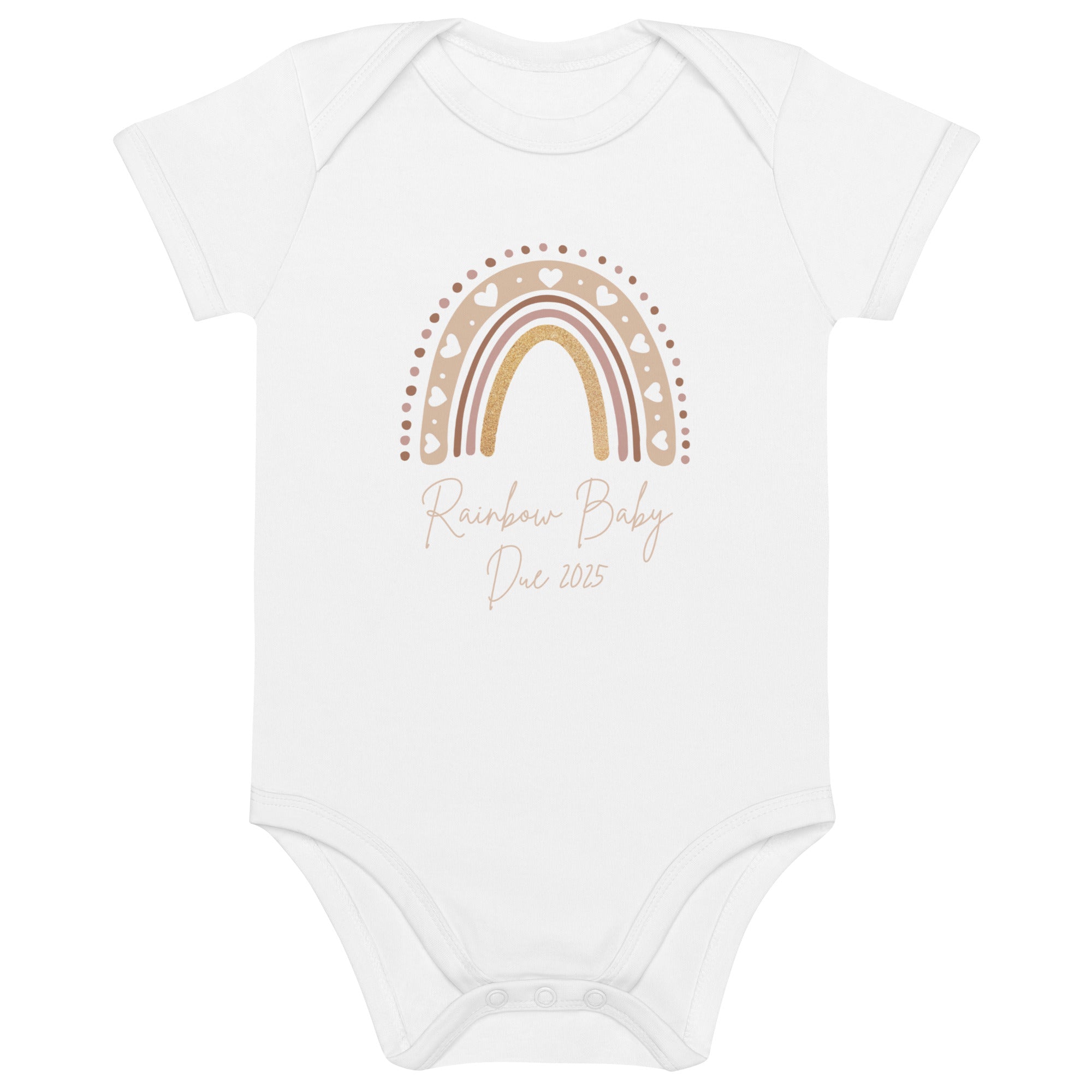 Introducing the Cozy Crew Club's exquisite "Neutral Rainbow Baby" personalized bodysuit, a delightful addition to any baby's wardrobe and an ideal gift for proud parents. Crafted with love and care, this charming white baby grow features a precious Crib design, evoking warmth and wonder.