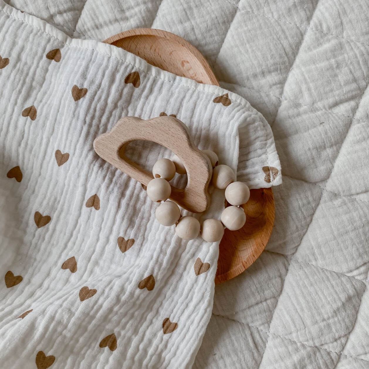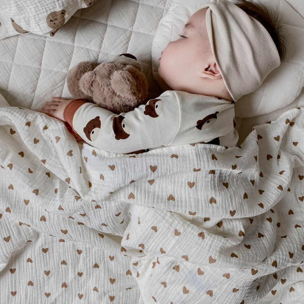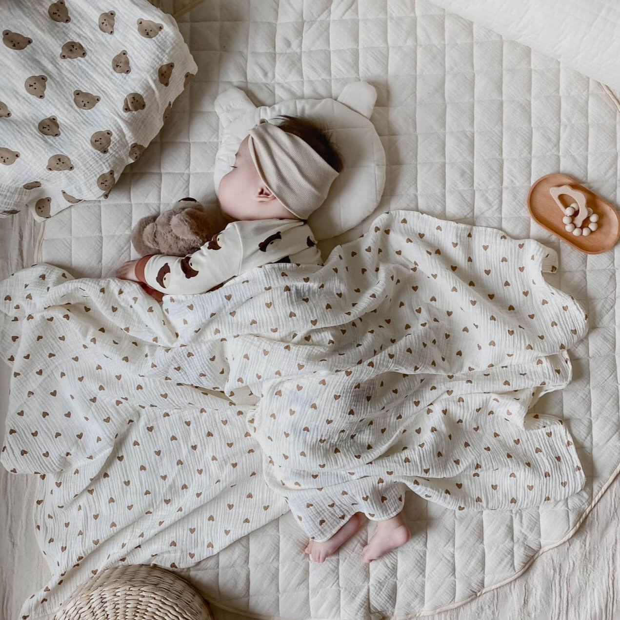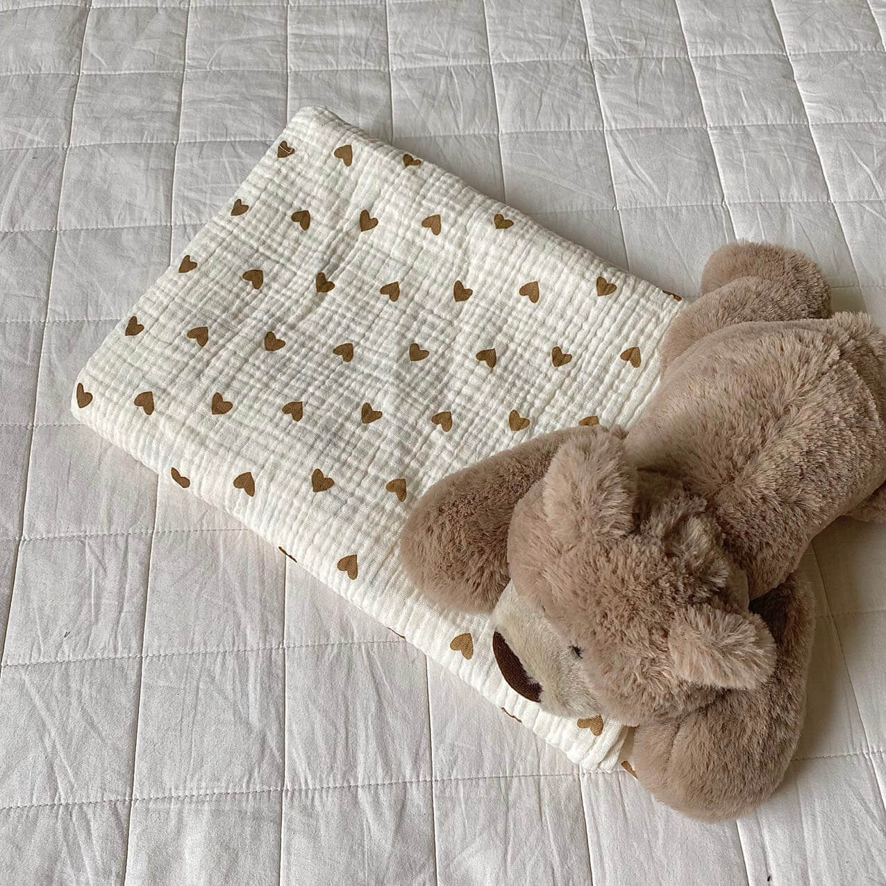 Die Love Heart-Decke ist so konzipiert, dass Sie und Ihr Baby jeden besonderen Moment des Familienlebens bequem genießen können. Sie besteht aus unserer 100 % Musselin-Baumwolle, fühlt sich also weich an, ist aber strapazierfähig und hält ewig. Die Decke ist doppellagig, was sie perfekt für die kälteren Monate macht, um sie als Decke für die Kleinen oder als Schal für die Eltern zu verwenden. Die großzügige Größe macht sie praktisch für unzählige Verwendungszwecke, vom diskreten Stillen bis hin zu einer Spielmatte für unterwegs, einer Sommerdecke oder als perfektes Geschenk. Sie sind hochwertig, atmungsaktiv, strapazierfähig und pflegeleicht.