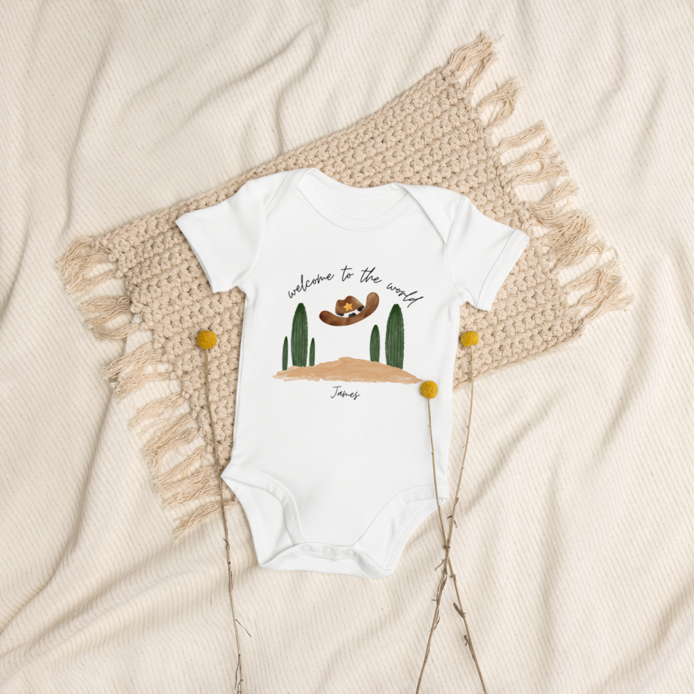 Wir präsentieren den exquisiten personalisierten Body „Willkommen auf der Welt“ des Cozy Crew Club, eine entzückende Ergänzung für die Garderobe jedes Babys und ein ideales Geschenk für stolze Eltern. Dieser bezaubernde weiße Babystrampler wurde mit Liebe und Sorgfalt gefertigt und verfügt über ein kostbares Country-Design, das Wärme und Wunder hervorruft.
