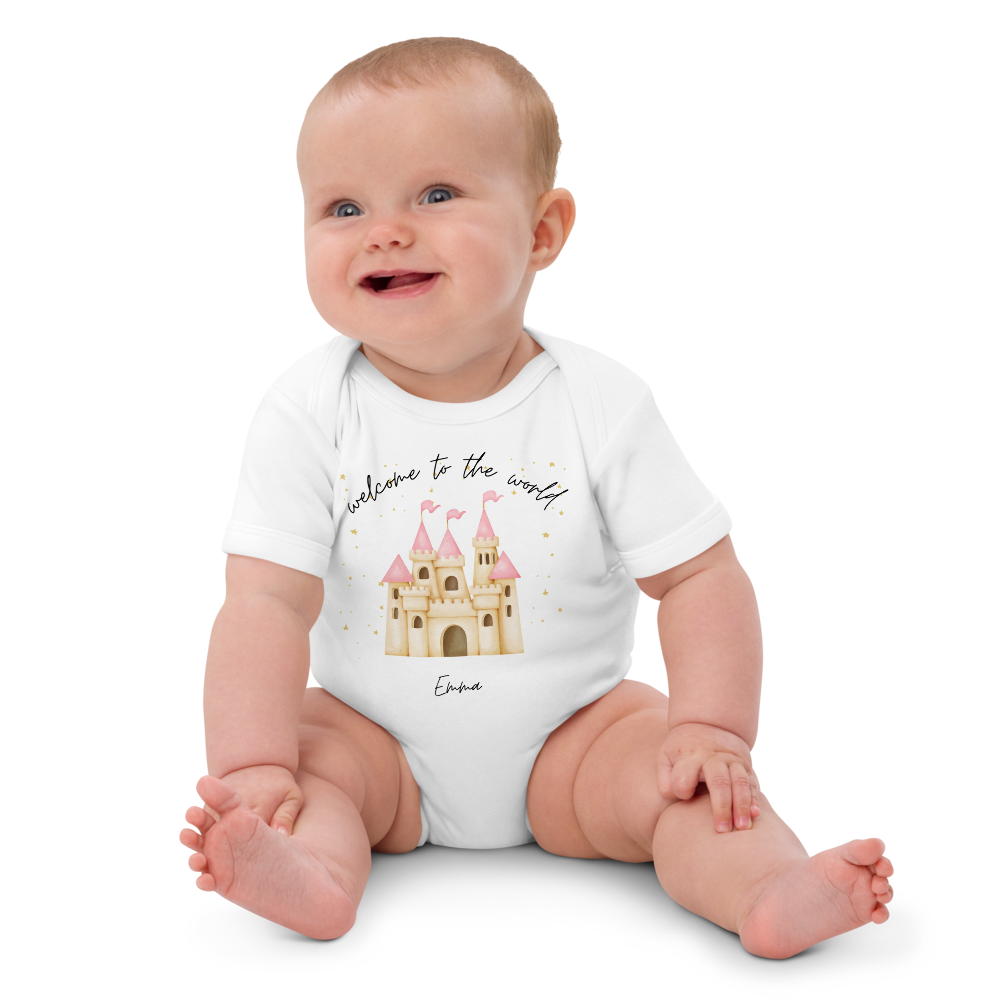 Wir präsentieren den exquisiten personalisierten Body „Willkommen auf der Welt“ des Cozy Crew Club, eine entzückende Ergänzung für die Garderobe jedes Babys und ein ideales Geschenk für stolze Eltern. Dieser bezaubernde weiße Babystrampler wurde mit Liebe und Sorgfalt gefertigt und verfügt über ein kostbares Prinzessinnenschloss-Design, das Wärme und Wunder hervorruft.