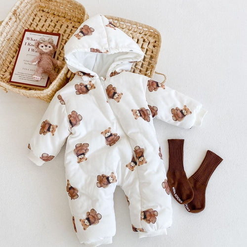 Der flauschige Mantel-Strampler mit Pelz-Bär-Futter