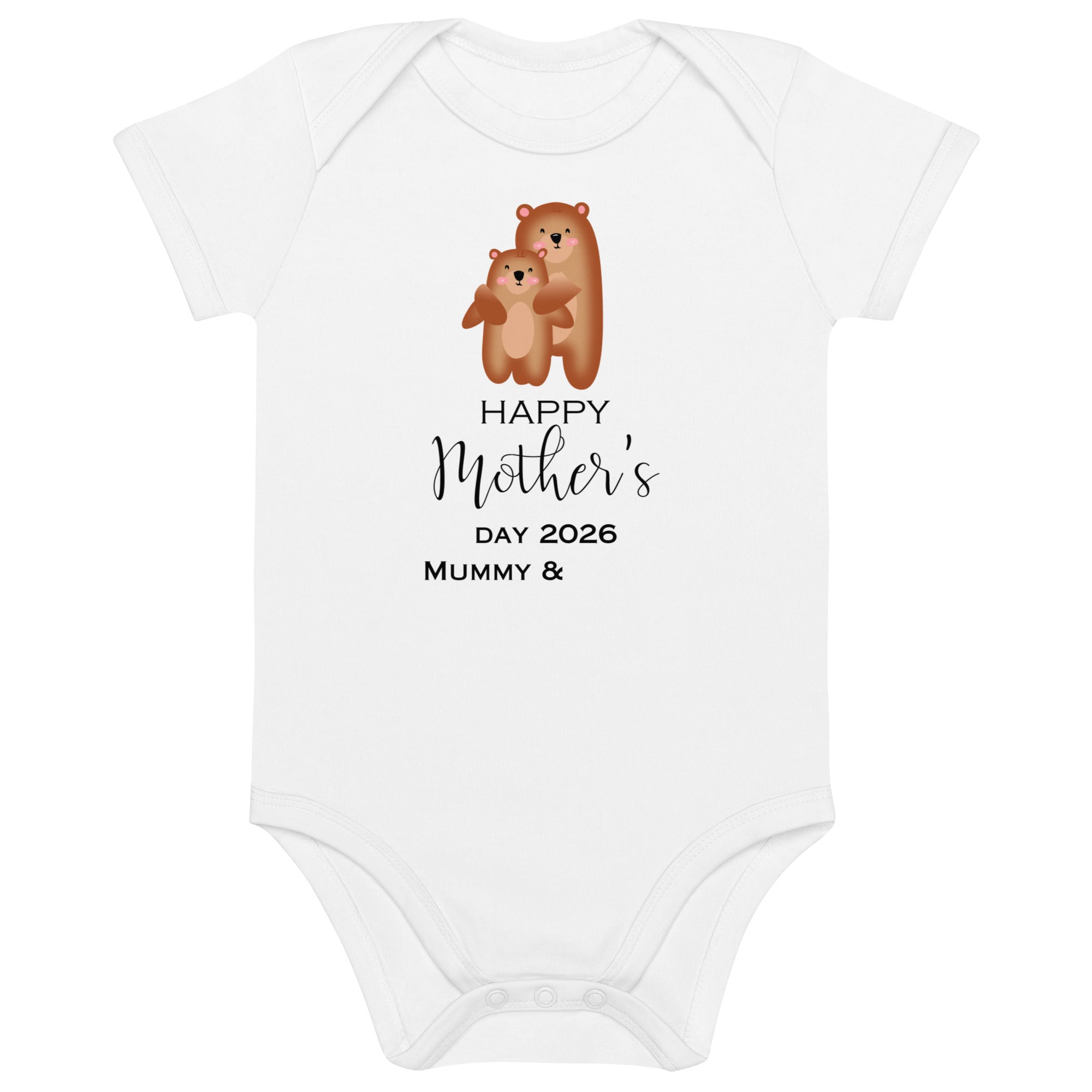 Wir präsentieren den bezaubernden personalisierten Body „Alles Gute zum Muttertag“ des Cozy Crew Clubs, eine bezaubernde Ergänzung zur Erinnerung an die besondere Bindung zwischen Mutter und Kind. Dieser süße weiße Strampler wurde mit Liebe und Sorgfalt gefertigt und zeigt ein bezauberndes handgezeichnetes Design eines kuscheligen Bärenbabys, das sich an seine liebevolle Bärenmama schmiegt und Wärme und Freude ausstrahlt.