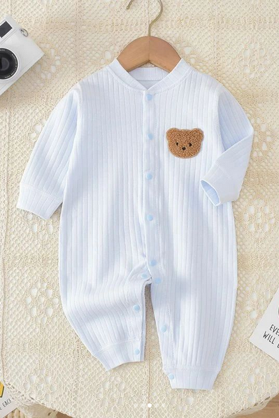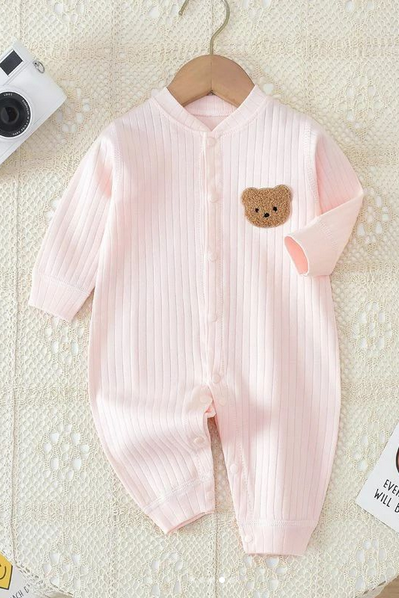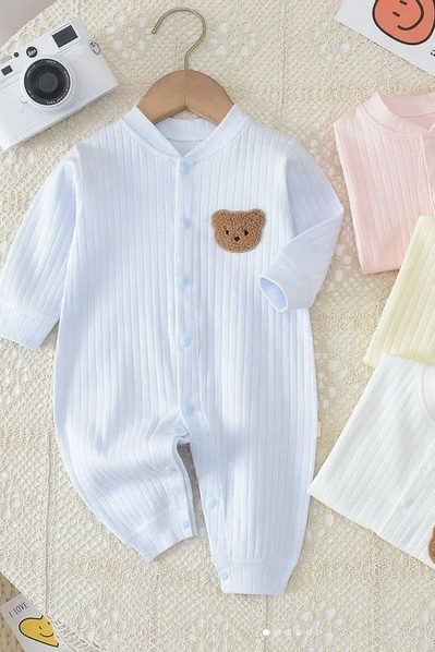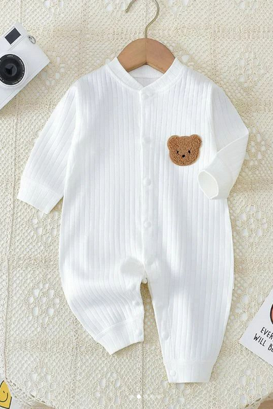 Gerippter Strampler mit Bärenmotiv