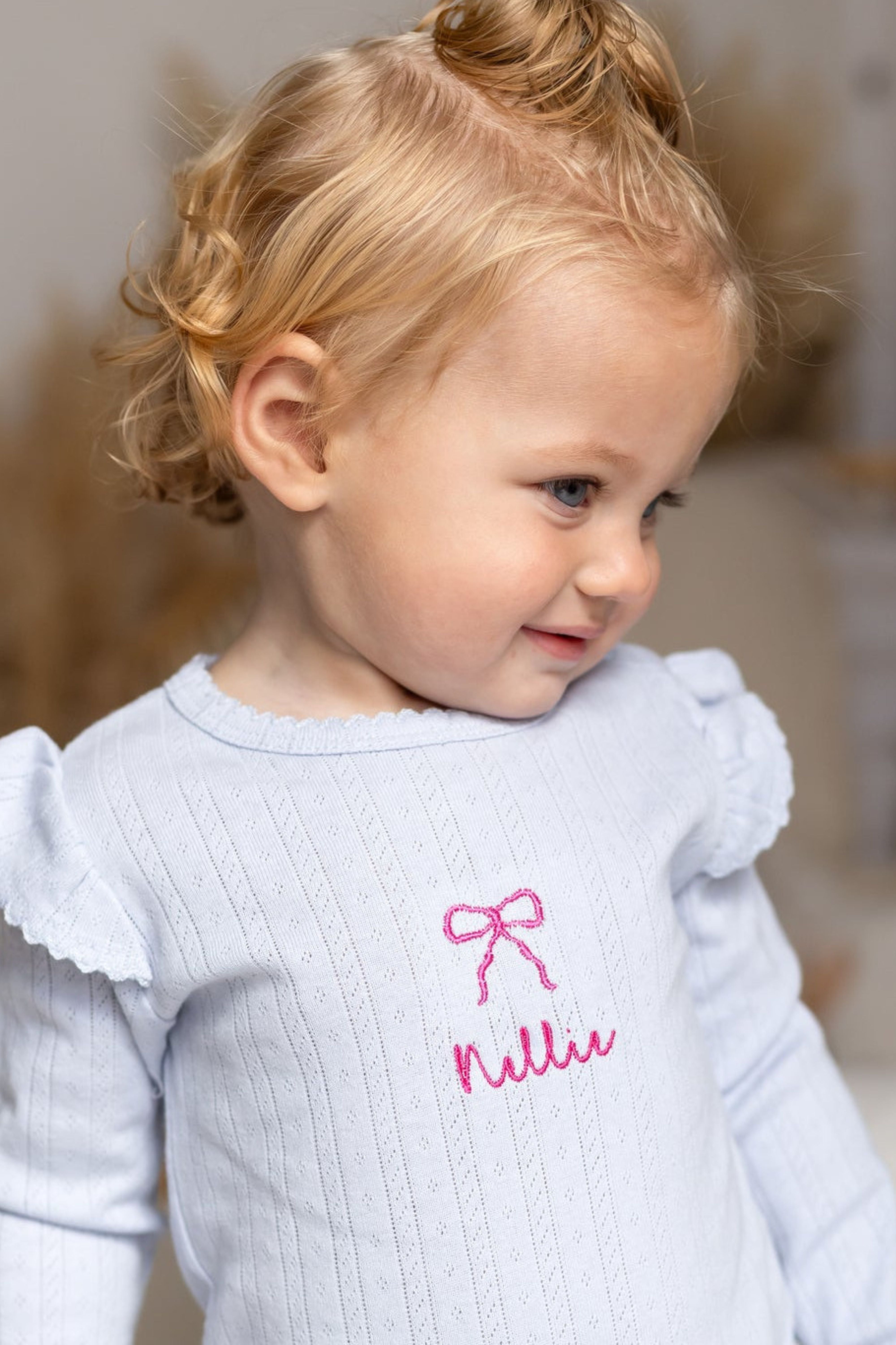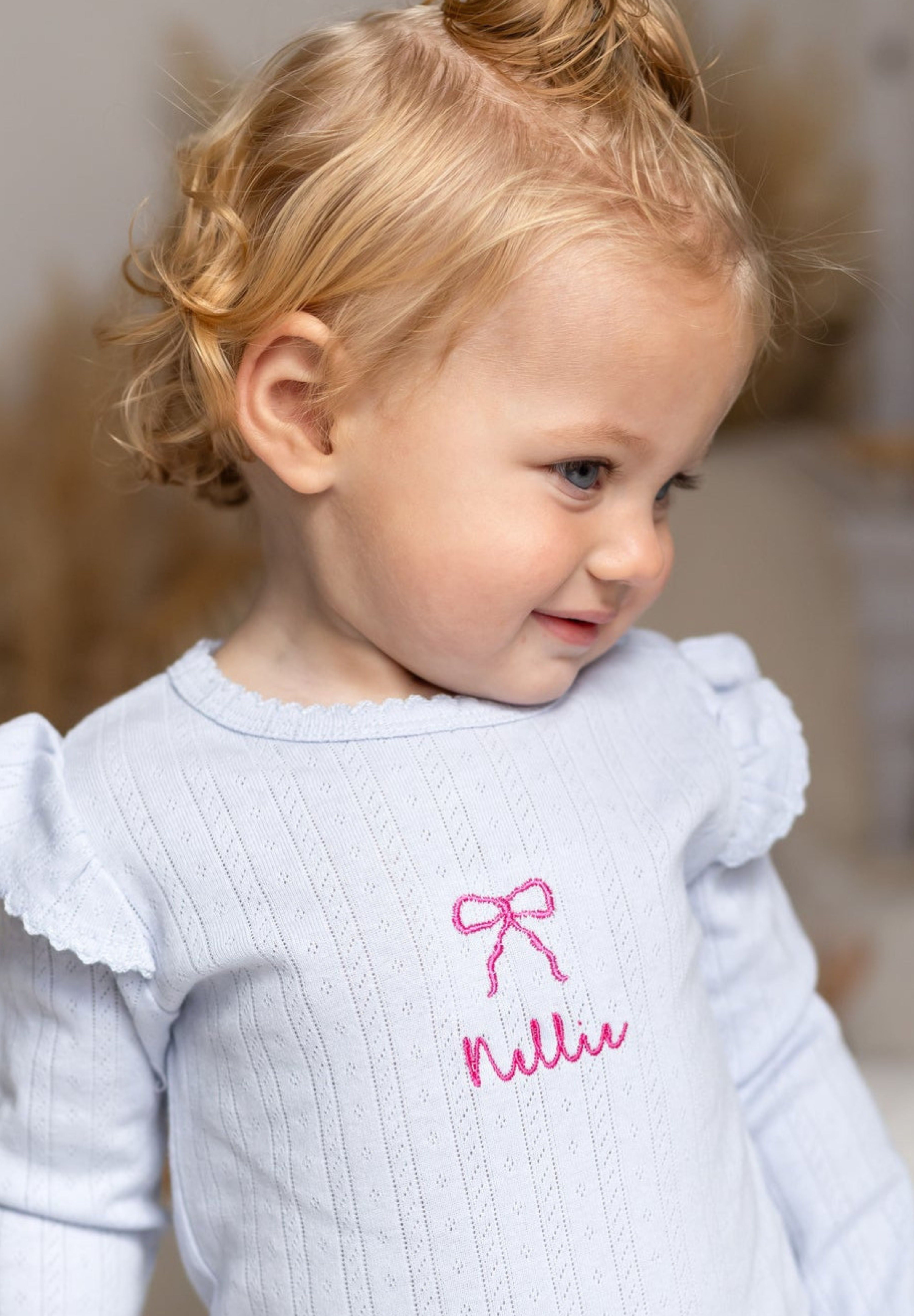 🎀 Sweet Bow Detail A tiny pink embroidered bow at the chest adds just the right touch of girly charm, without going over the top.