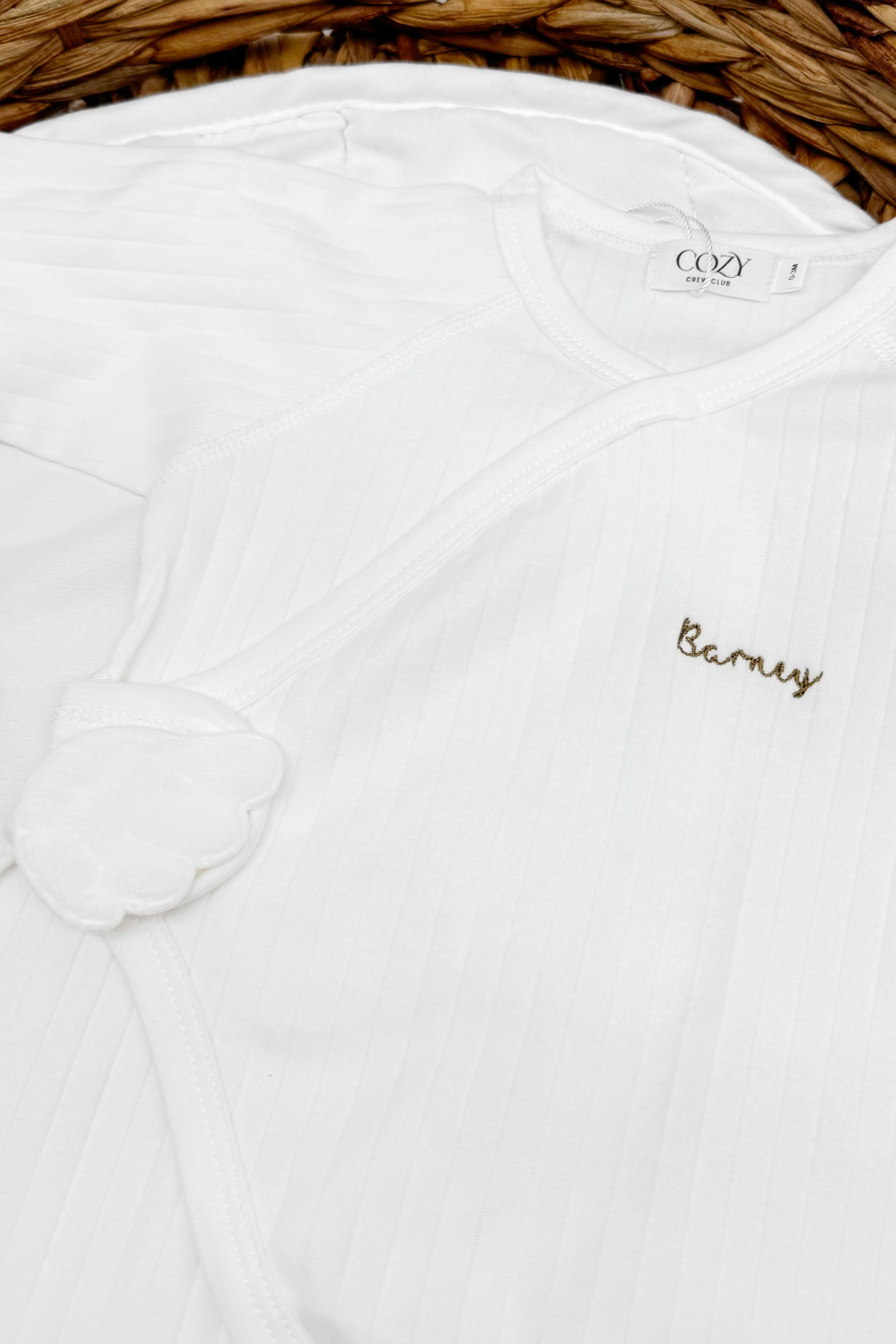 Dieser Strampler ist der Stilwächter Ihres Babys und kombiniert Funktionalität mit engelhaftem Charme. Die neutrale Farbpalette ergänzt jedes Outfit, während die subtilen Details dem Ensemble Ihres Babys einen Hauch von Süße verleihen.