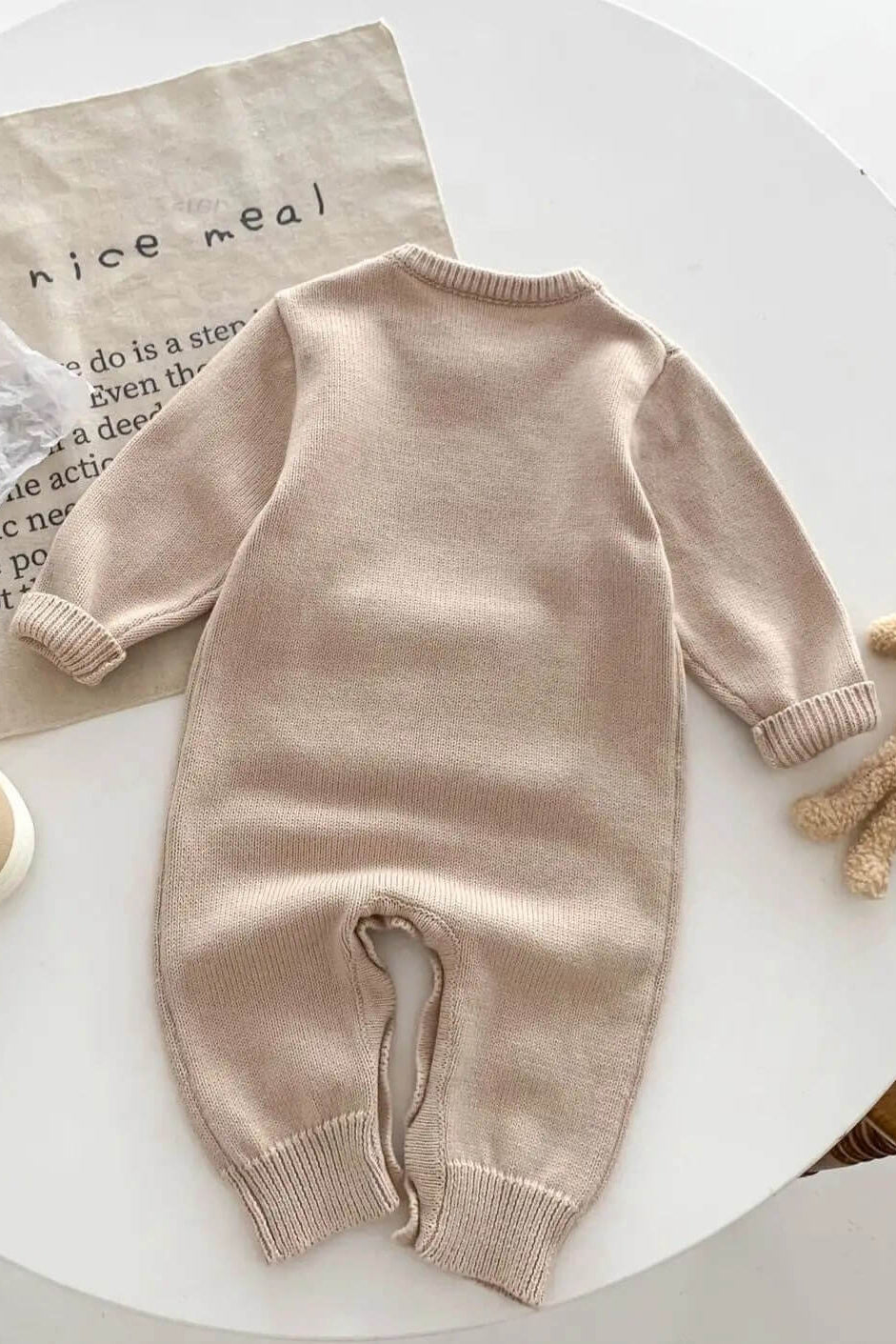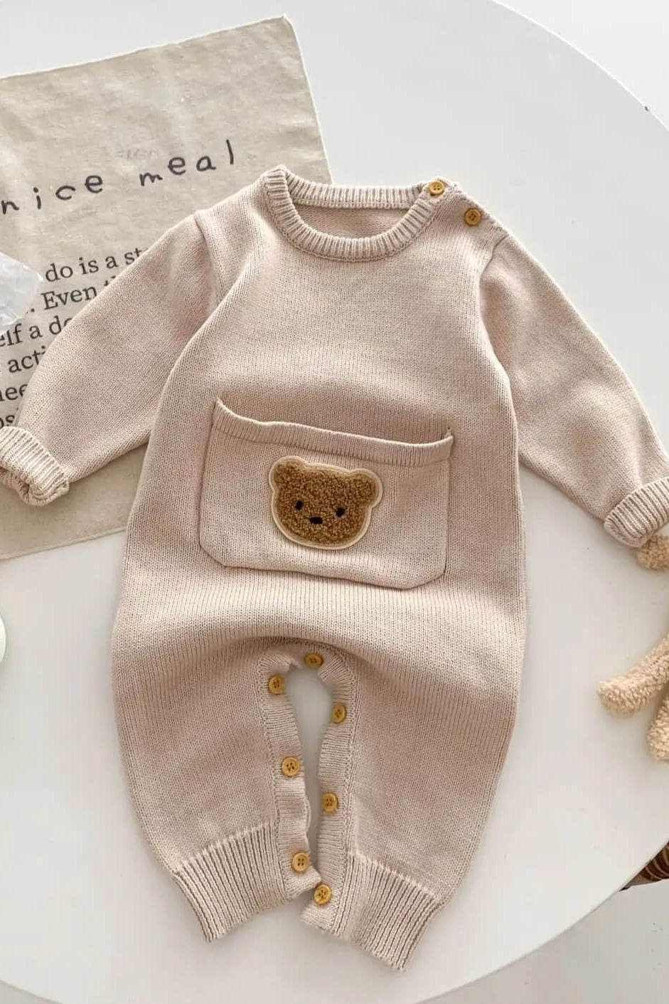 🧸 Luxuriös weich: Wir wissen, wie wichtig sanfte Stoffe für empfindliche Haut sind. Unser gestrickter Bärenoverall ist aus den weichsten, hochwertigsten Materialien gefertigt, um sicherzustellen, dass Ihr Baby den ganzen Tag über gemütlich, warm und bequem bleibt.