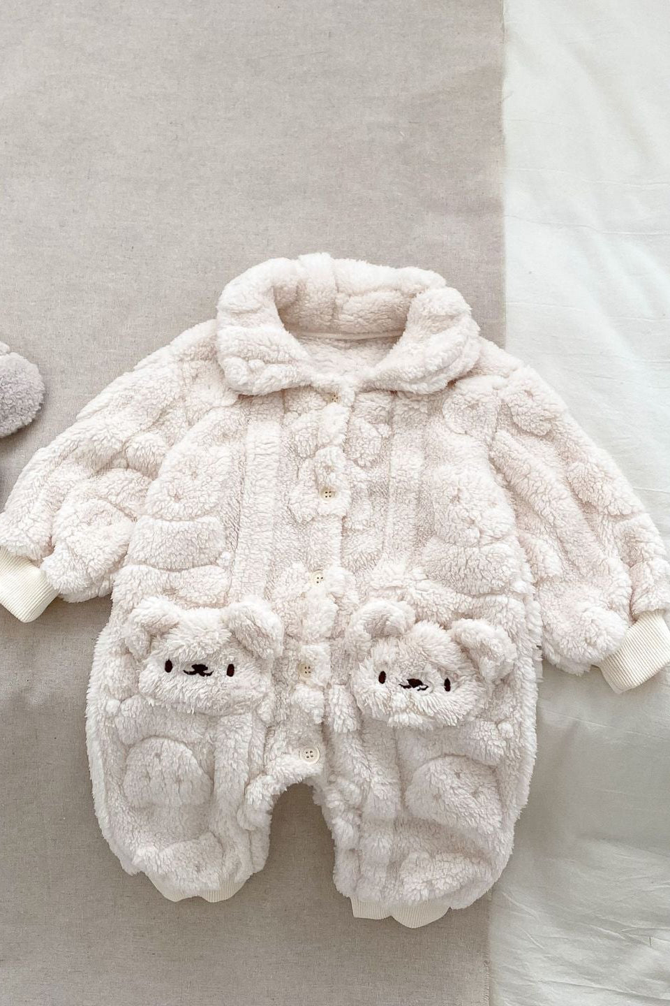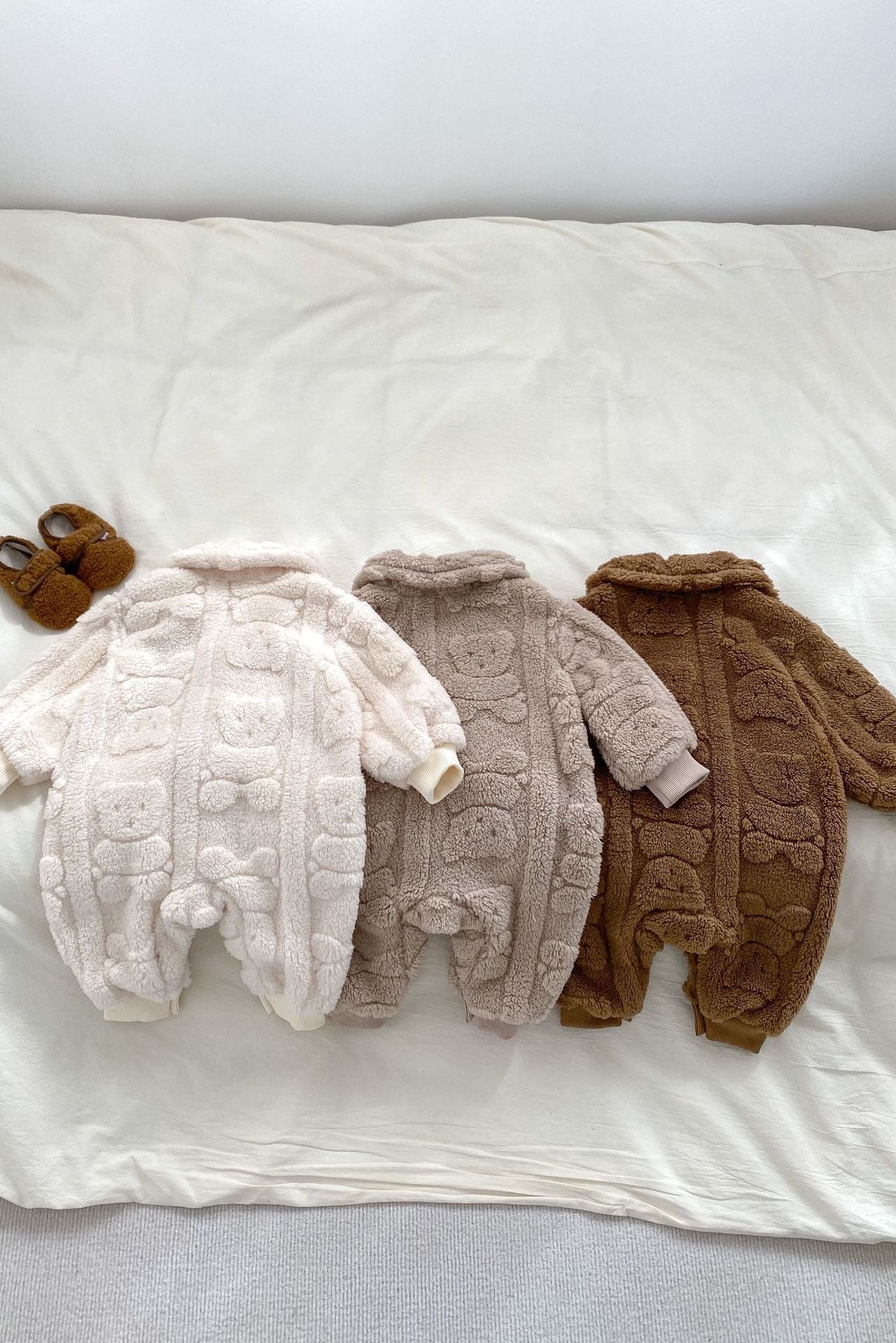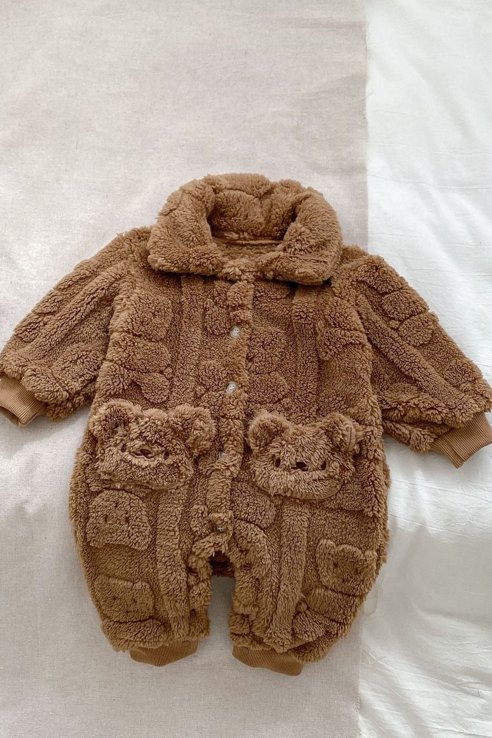 Verwandeln Sie Ihr Baby in ein süßes, wärmendes Bündel mit unserem flauschigen Strampler mit Pelzfutter aus Bärenfell – das ultimative, kuschelige Must-have für frostige Tage.