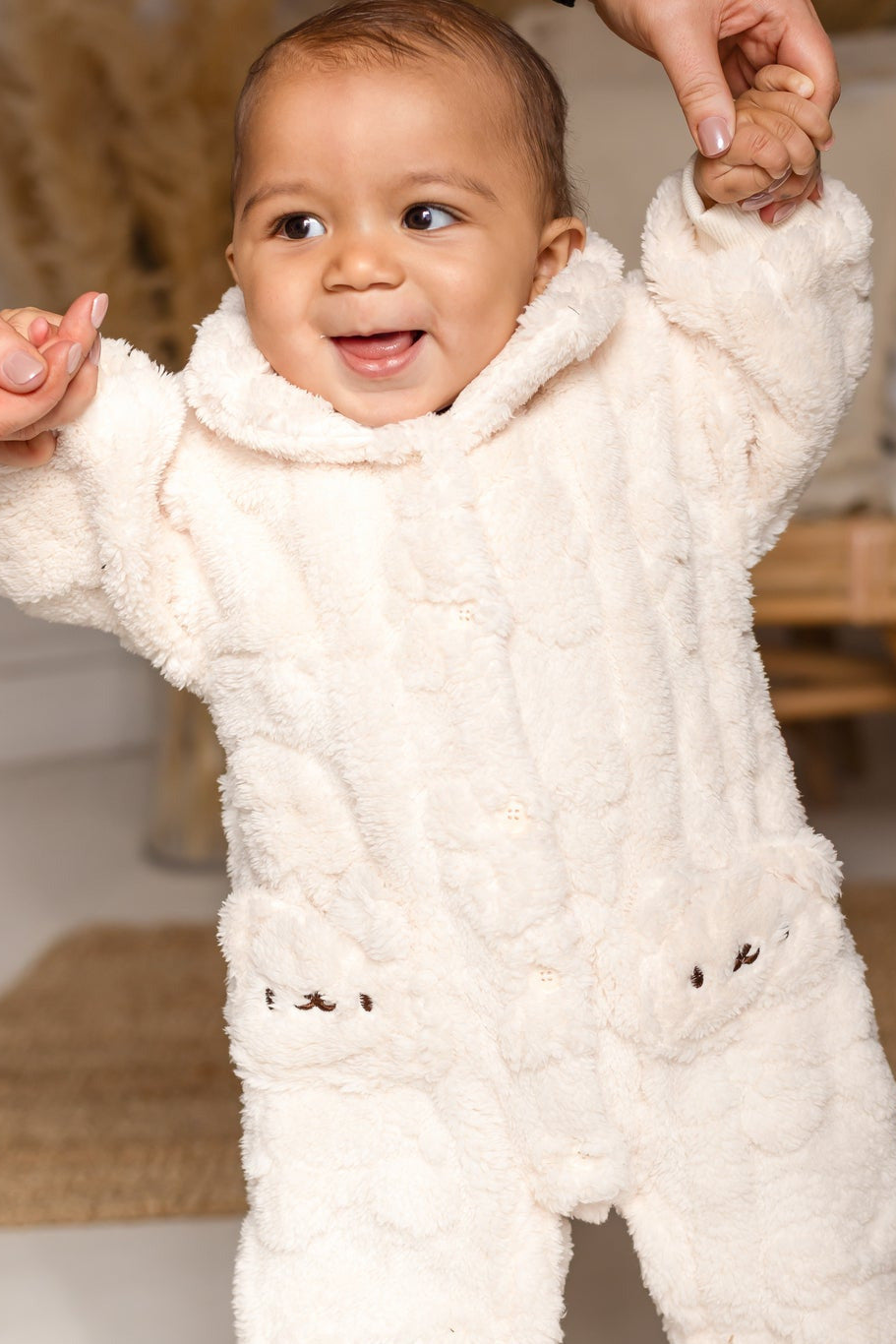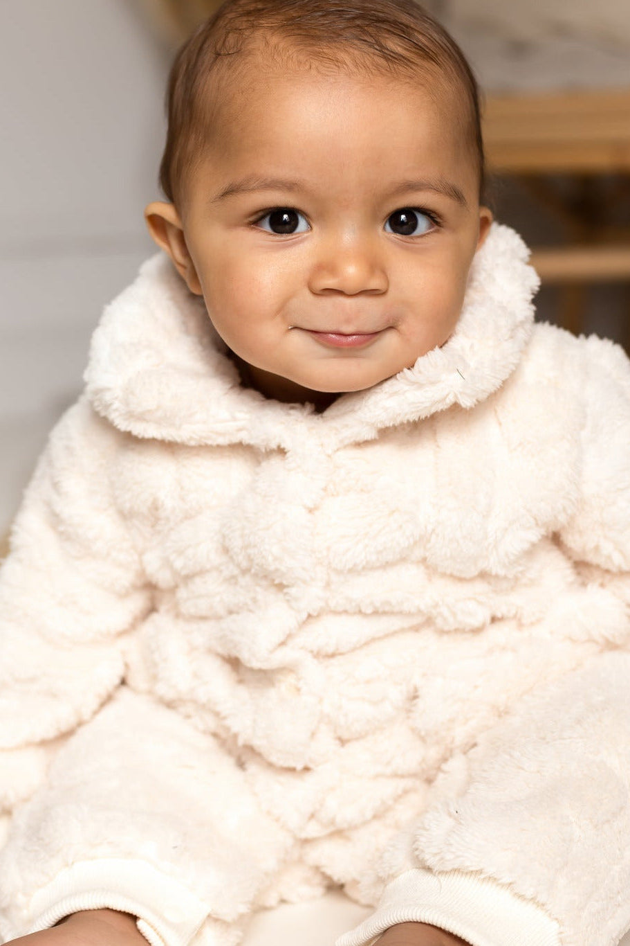 • Weich wie ein Teddy : Dieser Strampler aus plüschigem, ultraweichem Kunstfellstoff fühlt sich wie eine warme Umarmung an und hält Ihr Baby den ganzen Tag lang geborgen und glücklich.