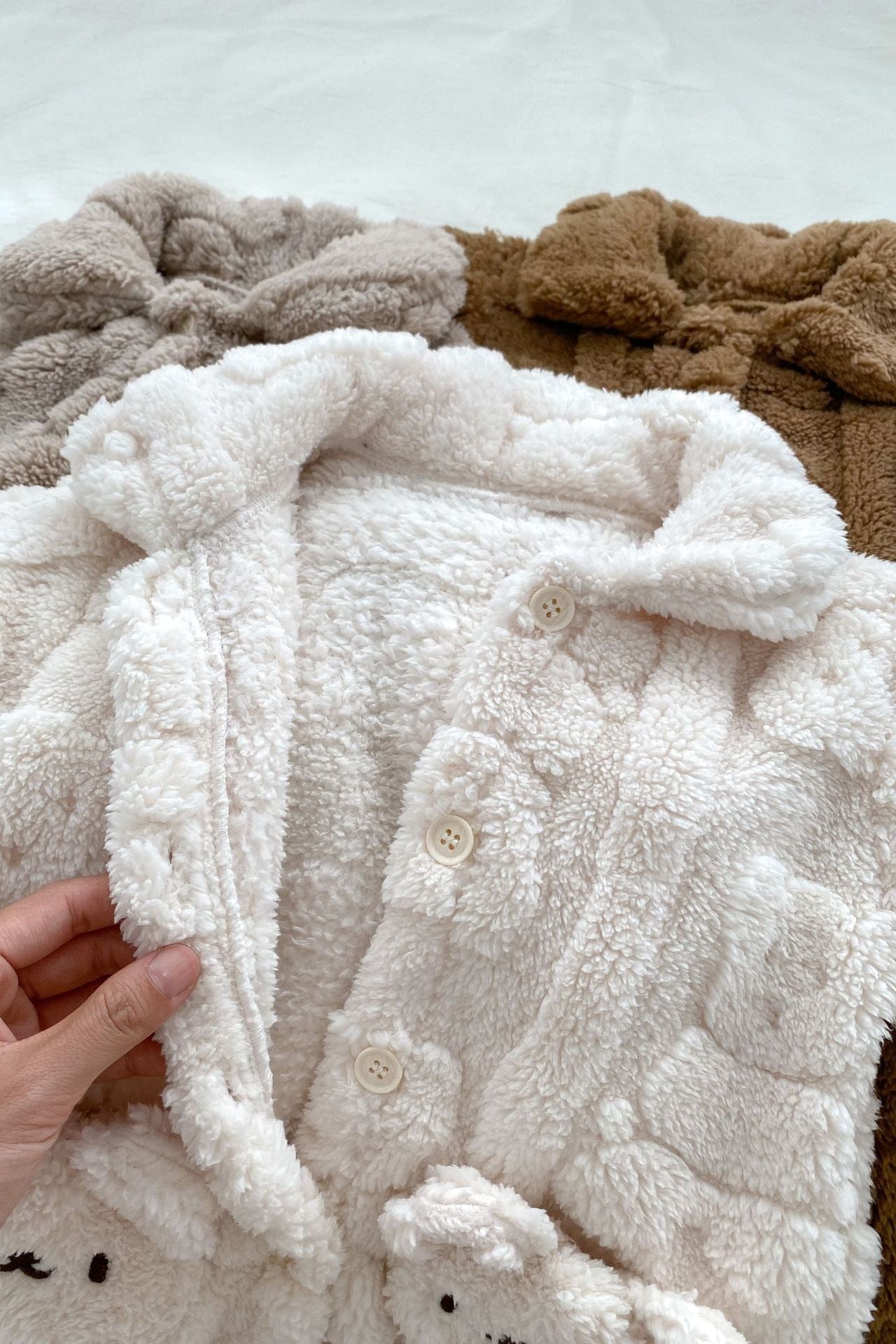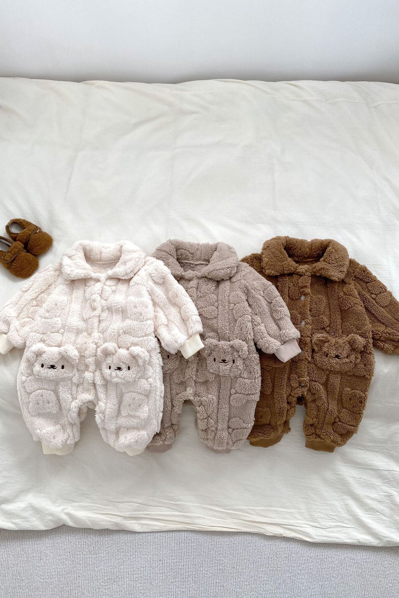 • Bezaubernde Details : Mit einem bezaubernden Bärentaschen-Design und 3 entzückenden Farbtönen (Creme, Taupe und Schokoladenbraun) sieht Ihr Kleines unwiderstehlich kuschelig aus.