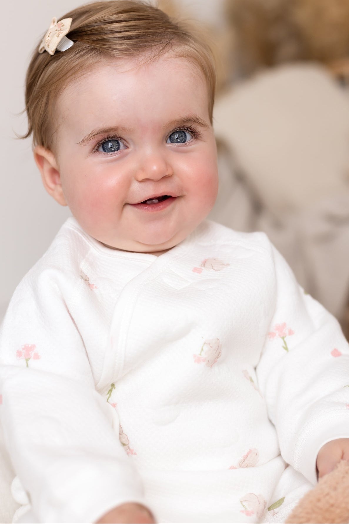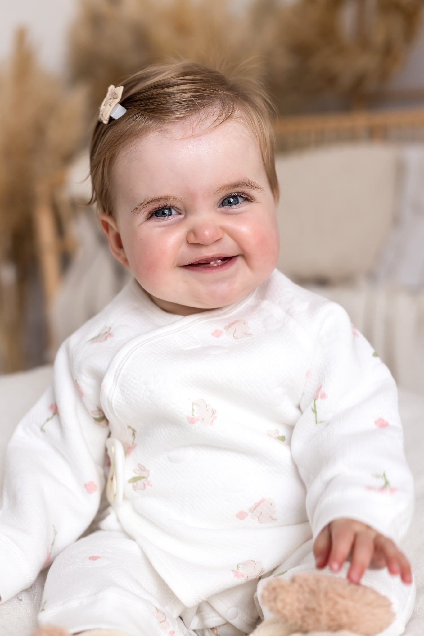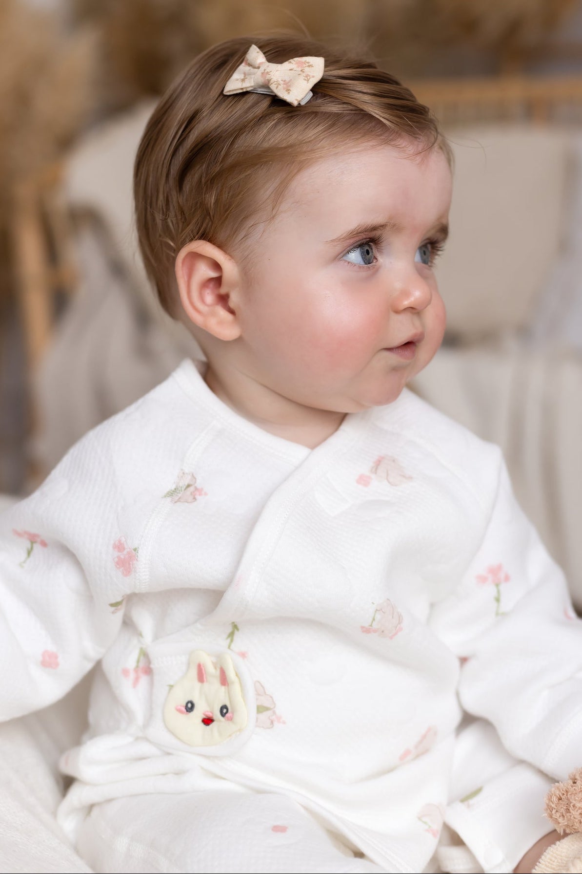 Hop into cozy with The Snuggle Bun Boucle Wrap Baby Grow Romper – the sweetest wrap-style romper designed to make your baby look (and feel) like the snuggliest little bun in the patch. With its delicate floral print and signature bunny clasp, it’s a heart-melter for naptime, playtime, and everything in between. 🐰🌸