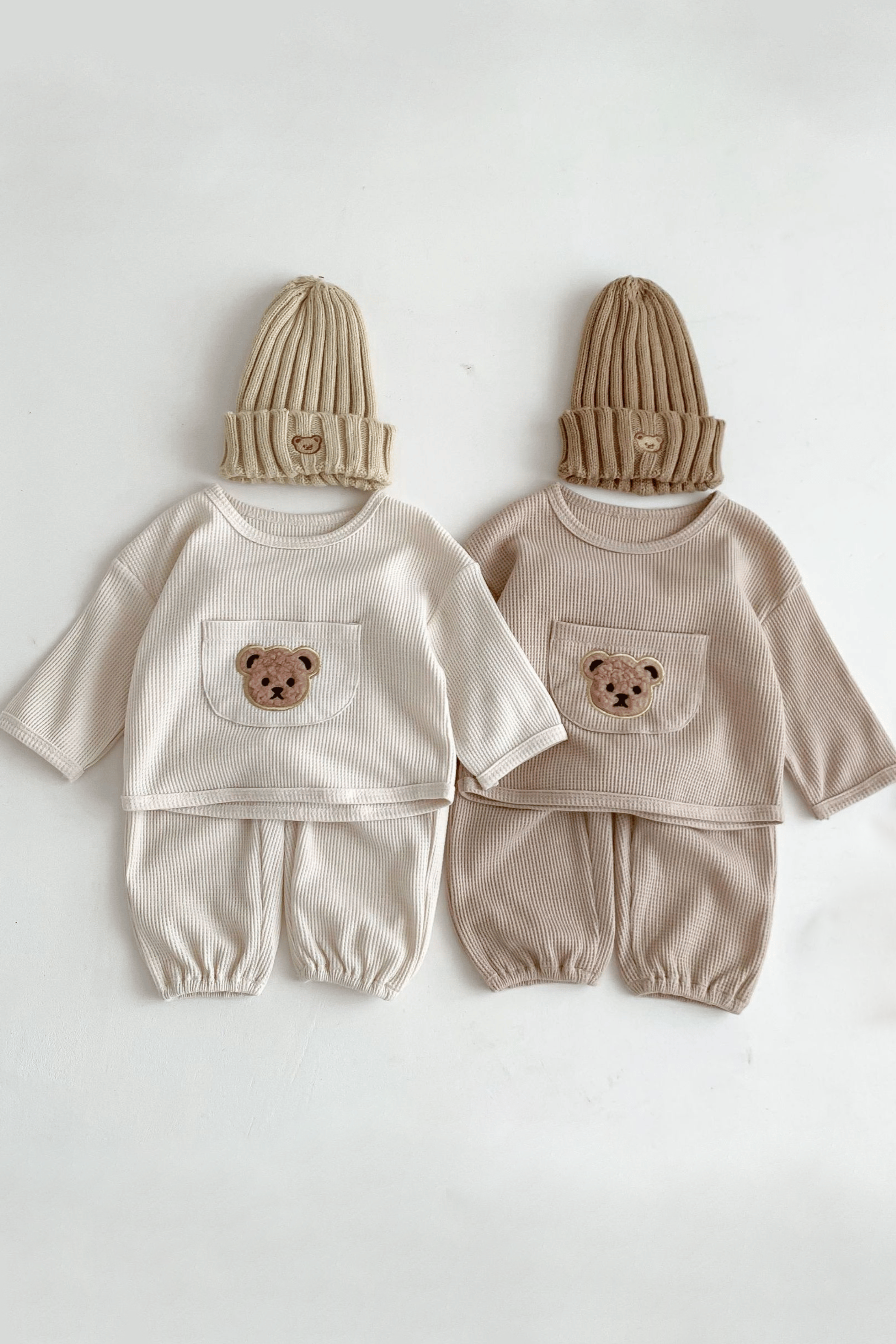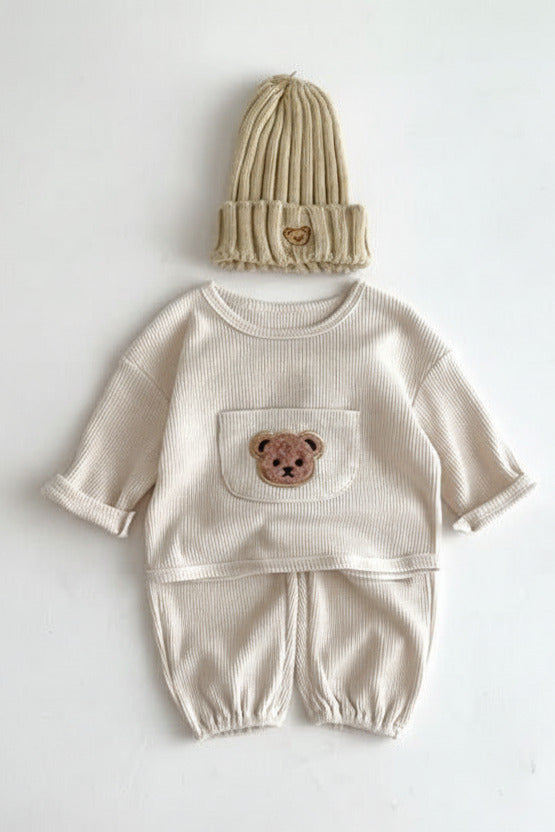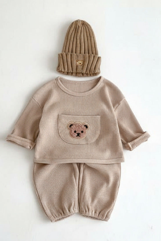 Wir präsentieren den Waffle Bear-Trainingsanzug von Cozy Crew Club, den Inbegriff von Luxus und Komfort für Ihren Liebling. Dieses Set wurde aus den besten Materialien gefertigt, damit Ihr Baby sich rundum wohlfühlt und gut aussieht.