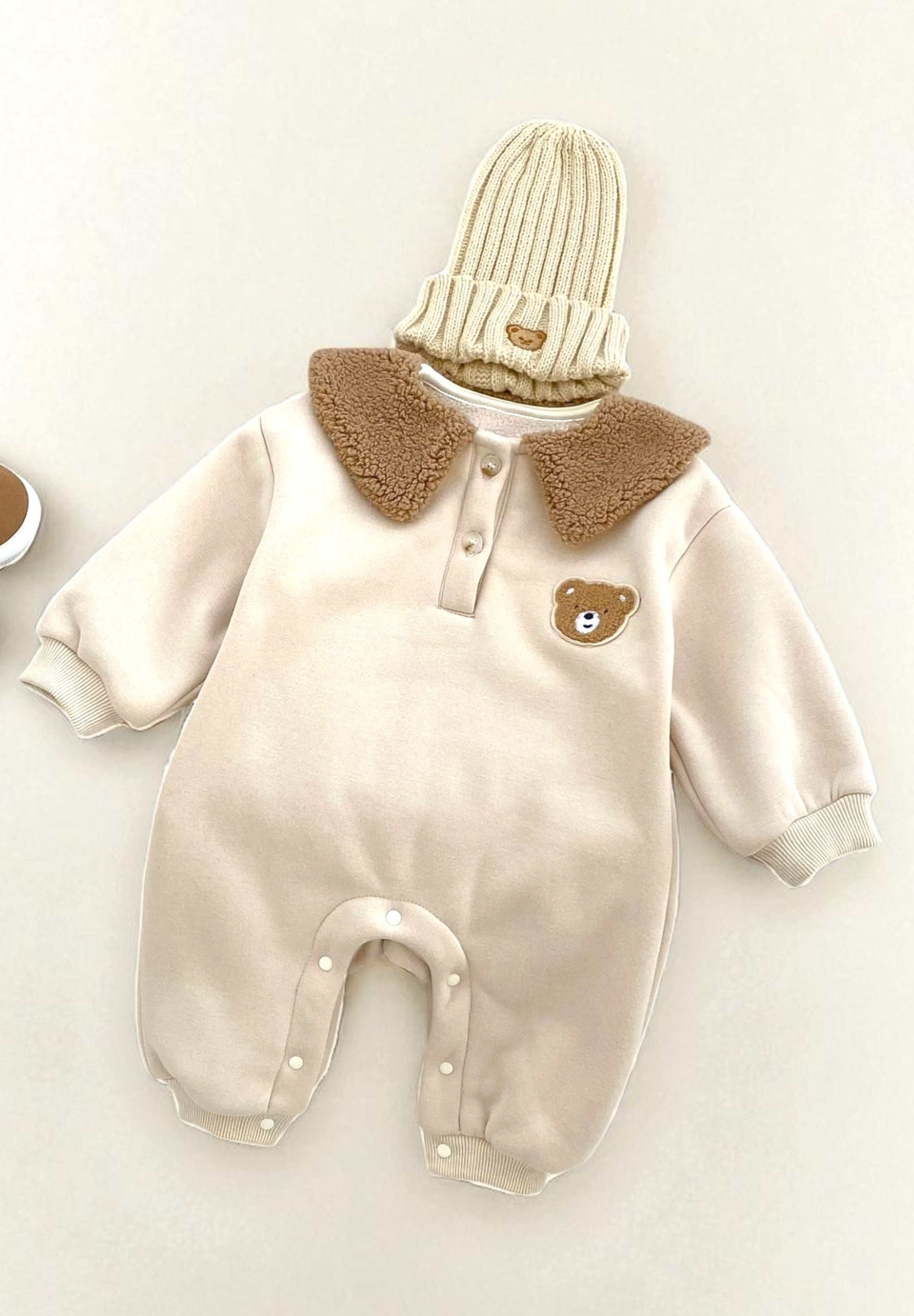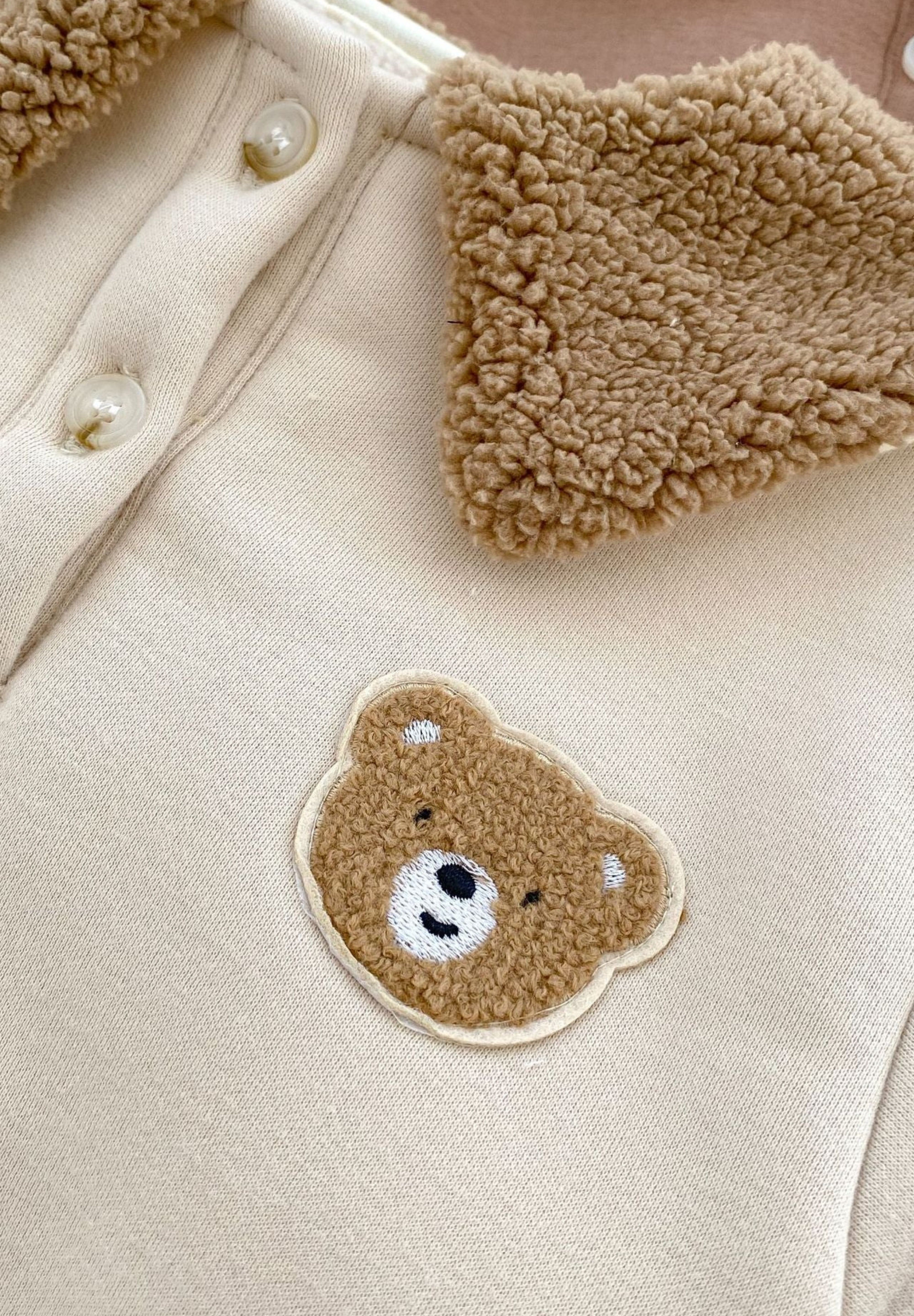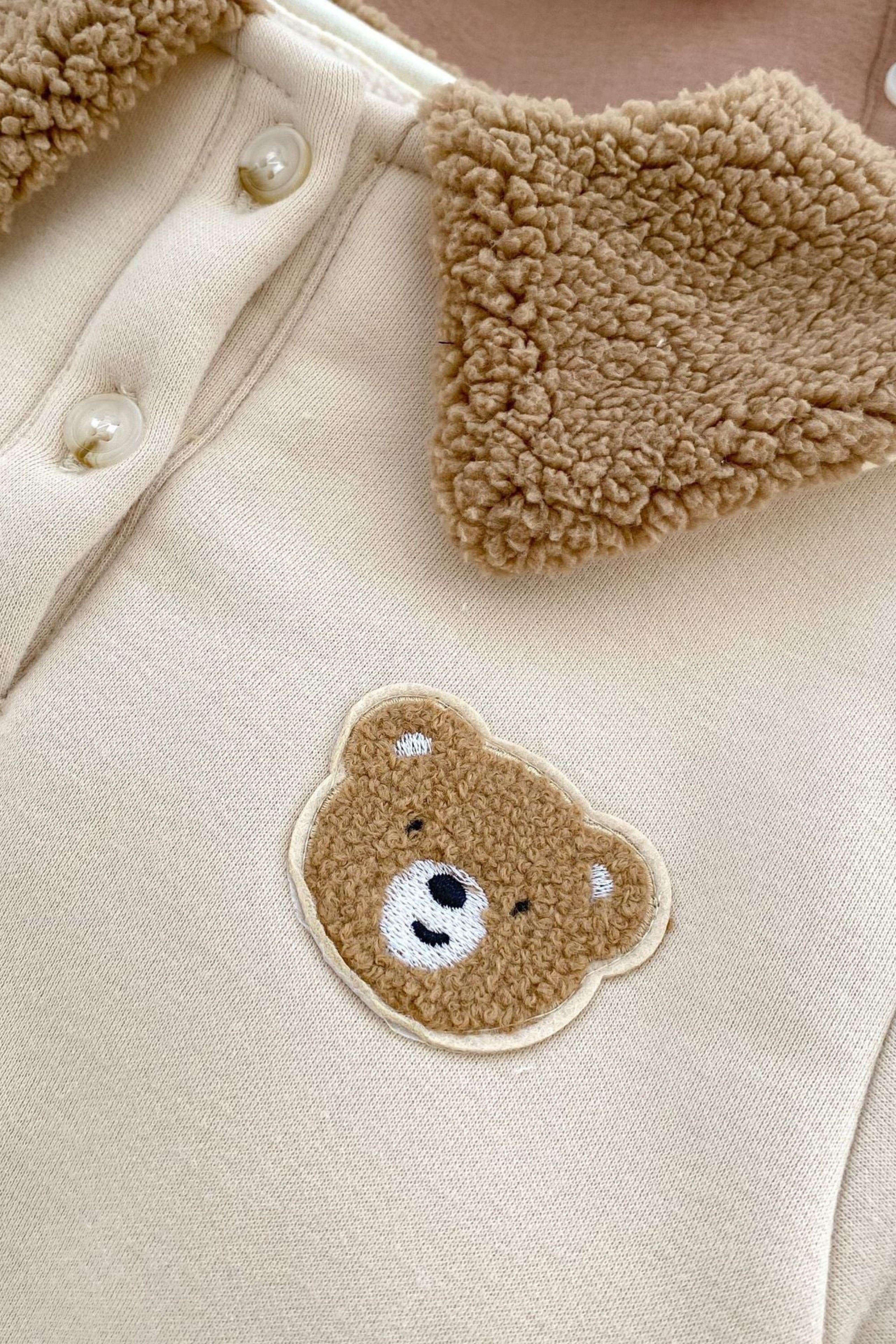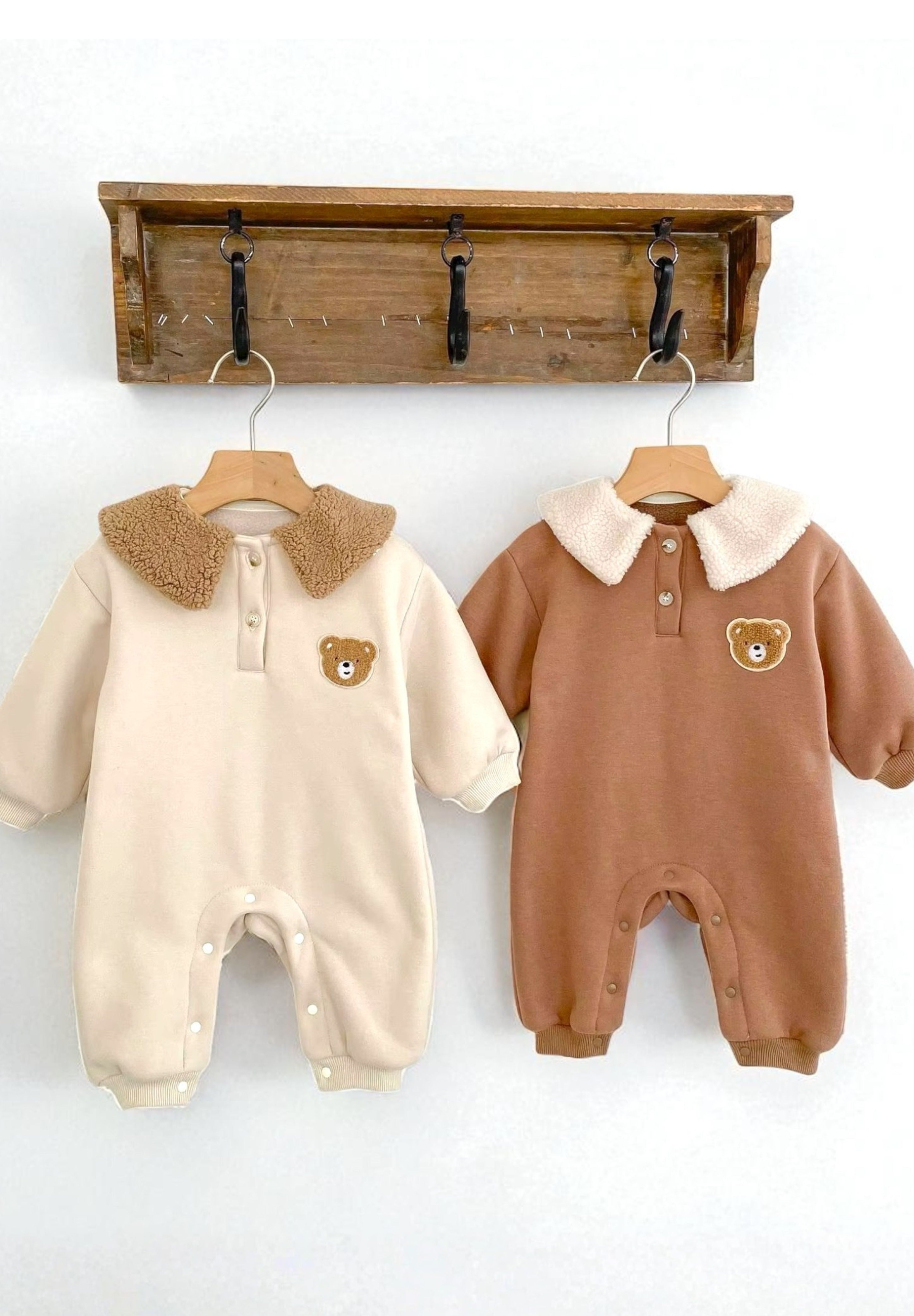 🧸 Cozy Meets Cute Crafted with 95% cotton and 5% polyester, this romper is luxuriously soft on delicate skin while keeping baby warm on chilly days. The plush teddy collar adds a playful twist that’ll have everyone saying “aww!”
